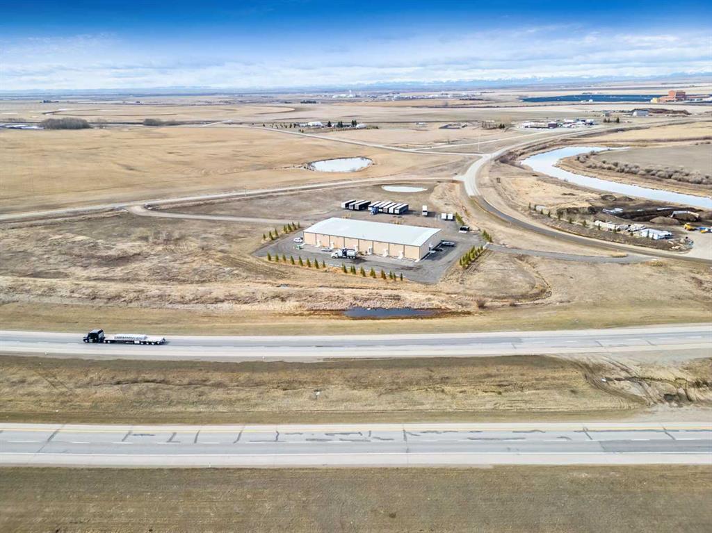 FOR SALE: 13.43 ACRE COMMERCIAL property with a 20,000 sq. ft. Industrial Building fully leased 20 minutes south of Calgary on #2 Highway. Potential to further develop and build on subject to Foothills County approvals. The zoning allows for many discretionary usages including general contractor, light industry, light manufacturing, warehouse sales and more. EXCELLENT Highway VISIBILITY with 350 metres of Hwy. frontage. Great Opportunity to further develop this property with current cash flow.