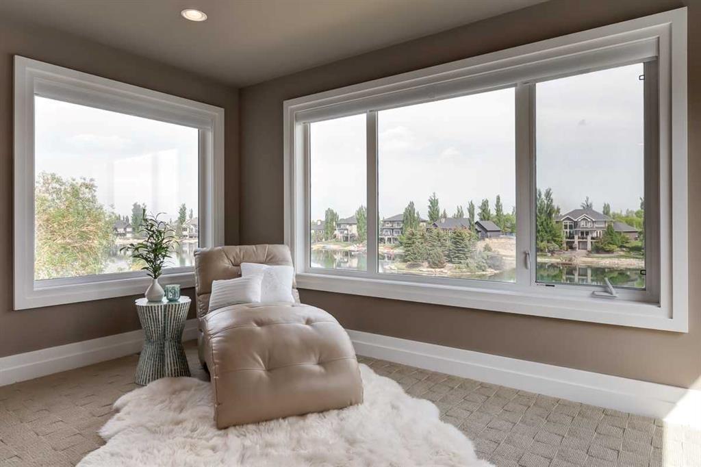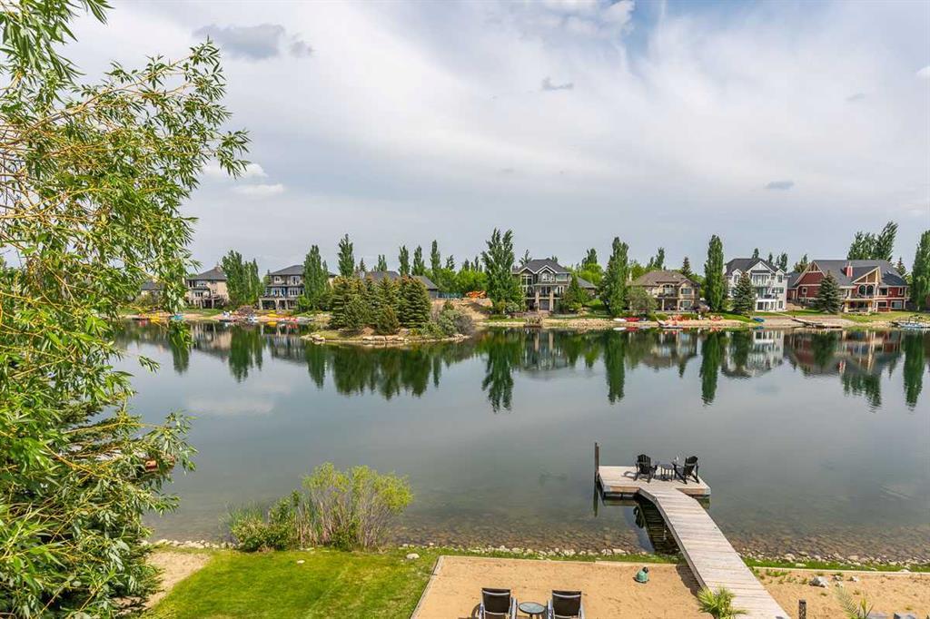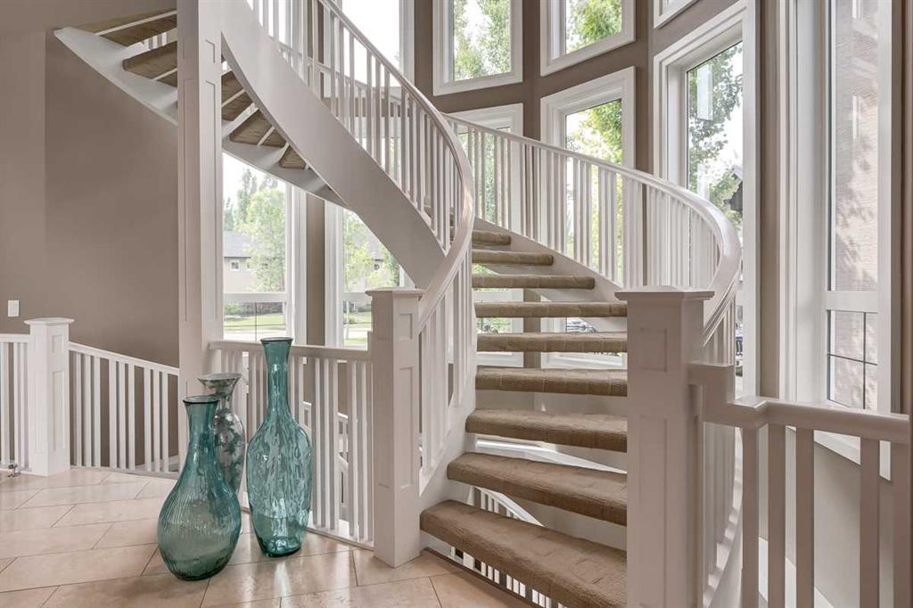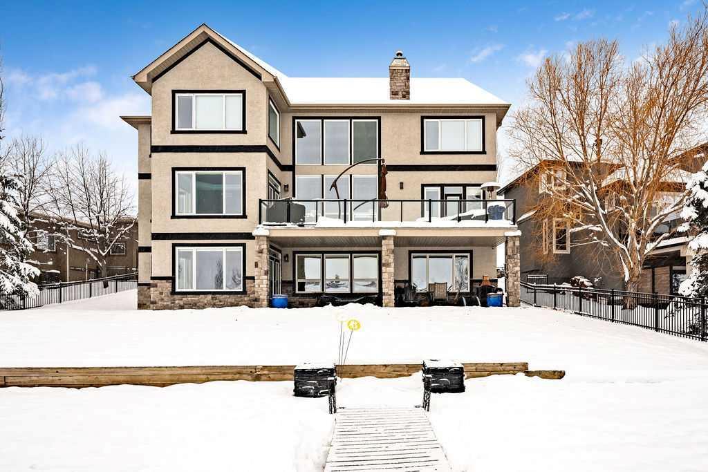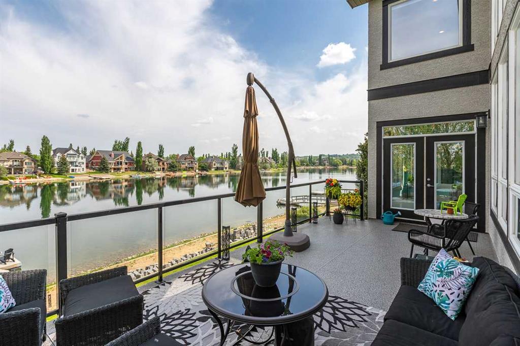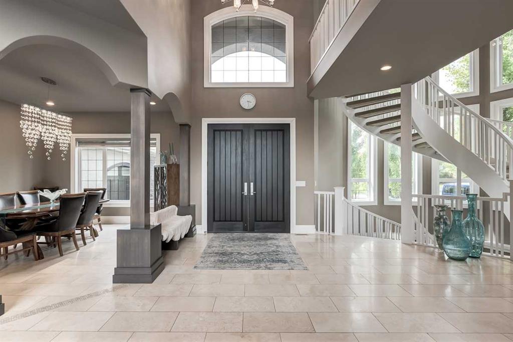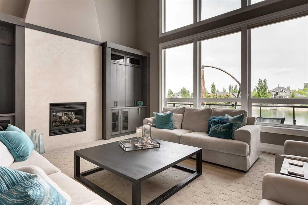 * Sellers may consider trade * LAKEFRONT LUXURY! Welcome to "HERITAGE LAKE SHORES," one of the most coveted locations on this gorgeous lake. Nestled on a QUIET CUL-DE-SAC, this European-inspired residence is one of only 66 exclusive lakefront properties in Heritage Pointe, offering a PERFECT BLEND of luxury and tranquility. Spanning 6,383 sq. ft. of refined living space, the home features 5 bdrms, 5 baths & nearly 100 feet of PRISTINE LAKE FRONTAGE with a PRIVATE DOCK, all showcasing exceptional architectural elegance. The GRAND two-story turret, paired with an arched stone entry & stands as a hallmark of European design, offering a warm and inviting welcome. The exterior, finished in stone and stucco, blends seamlessly with its natural surroundings. A TRIPLE CAR attached garage with epoxy flooring & a rubber driveway adds both functionality & a polished finish. Upon entering, you are greeted by an elegant SPIRAL STAIRCASE, complemented by timeless TRAVERTINE flooring, a stunning CHANDELIER, and UNOBSTRUCTED LAKE VIEWS. The expansive GREAT ROOM, with its SOARING 20-foot TRAY CEILING & dual-sided fireplace, creates a cozy chalet-style living area that offers STUNNING lake views. The GOURMET KITCHEN is a chef's dream, featuring a wrap-around design with GRANITE countertops, floor-to-ceiling cabinets, and a spacious breakfast nook with PANORAMIC LAKE VIEWS. Top-of-the-line appliances, including a Sub-Zero fridge, NEW (2025) WOLF gas range top, dual dishwashers, a wine and beverage area, make this space ideal for both casual dining & entertaining. The ELEGANT DINING area is a spacious, inviting setting to host those large family dinners or holiday gatherings. The main floor features a home office / den with lake views, fireplace, built in bookshelves – the perfect place to work from home or curl up with a good book! The main floor offers added convenience of a large main floor laundry (New Washer / Dryer 2025), half bath and mud room. This FIVE BEDROOM home has FOUR BEDROOMS located UPSTAIRS, connected by a walkway that overlooks the lake. The PRIMARY SUITE is grand in size, offering full LAKE VIEWS and a SPA-LIKE 5-piece ENSUITE with a soaker tub, double vanities, and a spacious walk-in closet with CUSTOM shelving. The second bedroom upstairs has a 3 pc ensuite bath, and the third and forth bedrooms upstairs share a 5pc main bathroom, making it ideal for family living. The WALK OUT BASEMENT is an entertainer’s dream, with a HOME THEATER room (update 2026) with an Epson projector, 120” (10’) screen, built in speakers and surround sound system, set up perfect for those home movie nights! The entertaining continues with a large family room, dry bar, and outdoor living space. The 5th bedroom is currently set up as a crafting room – with large windows, it makes a great guest room or craft room. The fully landscaped yard has mature trees, a private dock and sand beach, perfect for enjoying fun on the waterfront. The community offers year-round activities!