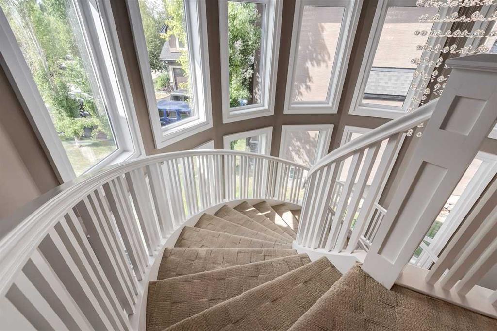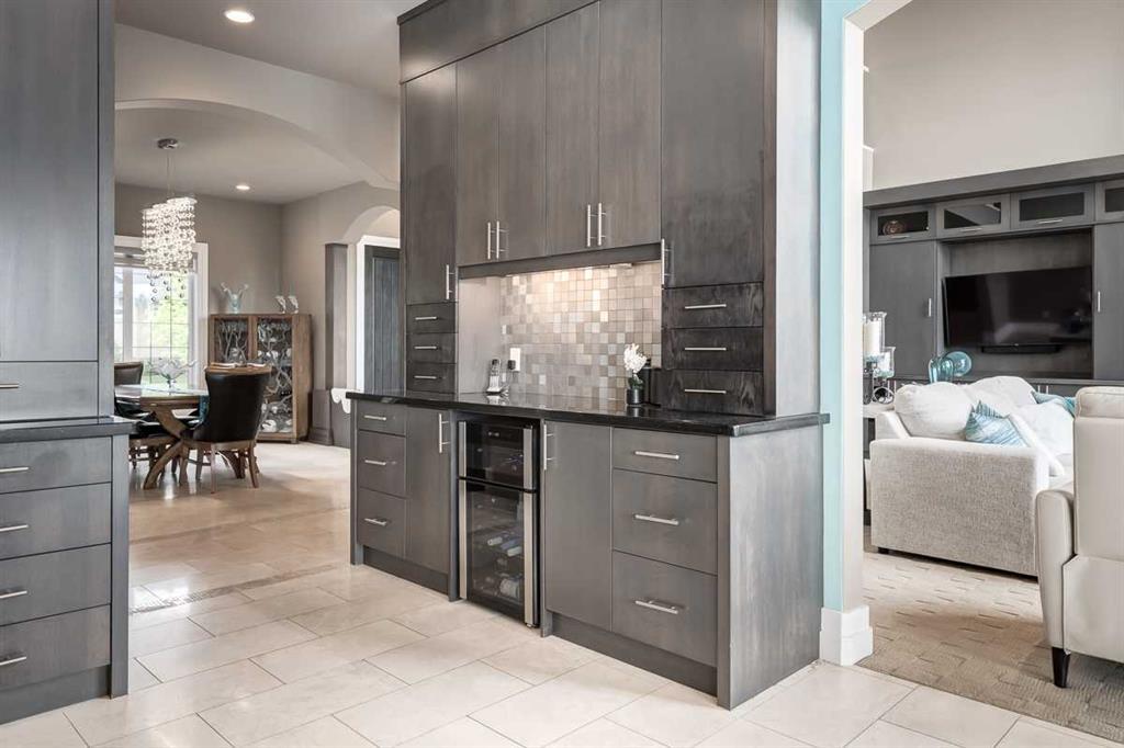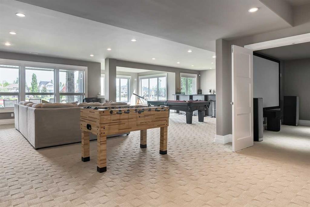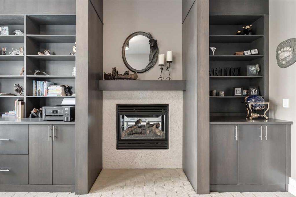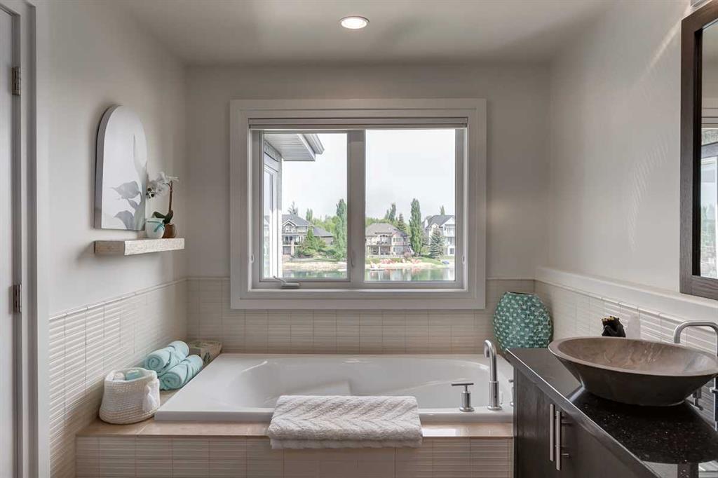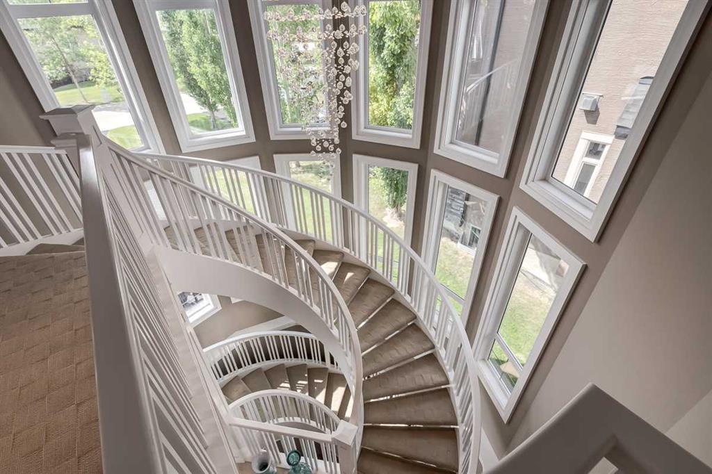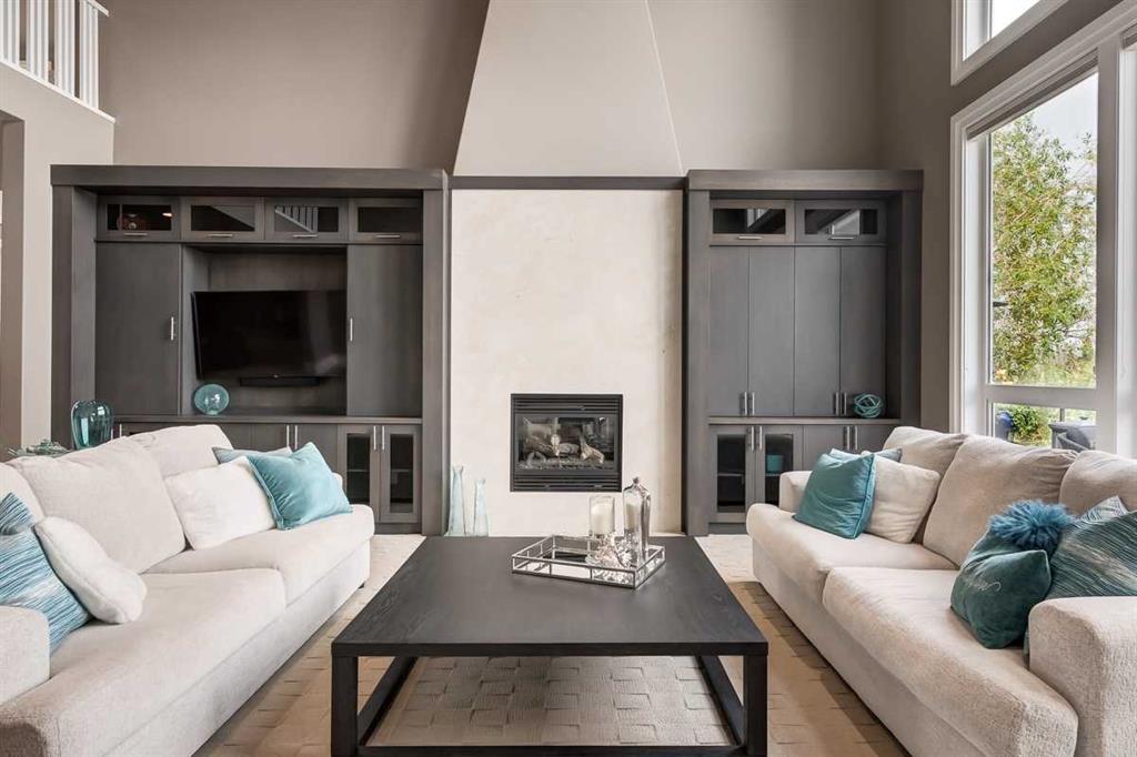 * Sellers may consider trade * LAKEFRONT LUXURY! Welcome to "HERITAGE LAKE SHORES," one of the most coveted locations on this gorgeous lake. Nestled on a QUIET CUL-DE-SAC, this European-inspired residence is one of only 66 exclusive lakefront properties in Heritage Pointe, offering a PERFECT BLEND of luxury and tranquility. Spanning 6,383 sq. ft. of refined living space, the home features 5 bdrms, 5 baths & nearly 100 feet of PRISTINE LAKE FRONTAGE with a PRIVATE DOCK, all showcasing exceptional architectural elegance. The GRAND two-story turret, paired with an arched stone entry & stands as a hallmark of European design, offering a warm and inviting welcome. The exterior, finished in stone and stucco, blends seamlessly with its natural surroundings. A TRIPLE CAR attached garage with epoxy flooring & a rubber driveway adds both functionality & a polished finish. Upon entering, you are greeted by an elegant SPIRAL STAIRCASE, complemented by timeless TRAVERTINE flooring, a stunning CHANDELIER, and UNOBSTRUCTED LAKE VIEWS. The expansive GREAT ROOM, with its SOARING 20-foot TRAY CEILING & dual-sided fireplace, creates a cozy chalet-style living area that offers STUNNING lake views. The GOURMET KITCHEN is a chef's dream, featuring a wrap-around design with GRANITE countertops, floor-to-ceiling cabinets, and a spacious breakfast nook with PANORAMIC LAKE VIEWS. Top-of-the-line appliances, including a Sub-Zero fridge, NEW (2025) WOLF gas range top, dual dishwashers, a wine and beverage area, make this space ideal for both casual dining & entertaining. The ELEGANT DINING area is a spacious, inviting setting to host those large family dinners or holiday gatherings. The main floor features a home office / den with lake views, fireplace, built in bookshelves – the perfect place to work from home or curl up with a good book! The main floor offers added convenience of a large main floor laundry (New Washer / Dryer 2025), half bath and mud room. This FIVE BEDROOM home has FOUR BEDROOMS located UPSTAIRS, connected by a walkway that overlooks the lake. The PRIMARY SUITE is grand in size, offering full LAKE VIEWS and a SPA-LIKE 5-piece ENSUITE with a soaker tub, double vanities, and a spacious walk-in closet with CUSTOM shelving. The second bedroom upstairs has a 3 pc ensuite bath, and the third and forth bedrooms upstairs share a 5pc main bathroom, making it ideal for family living. The WALK OUT BASEMENT is an entertainer’s dream, with a HOME THEATER room (update 2026) with an Epson projector, 120” (10’) screen, built in speakers and surround sound system, set up perfect for those home movie nights! The entertaining continues with a large family room, dry bar, and outdoor living space. The 5th bedroom is currently set up as a crafting room – with large windows, it makes a great guest room or craft room. The fully landscaped yard has mature trees, a private dock and sand beach, perfect for enjoying fun on the waterfront. The community offers year-round activities!
