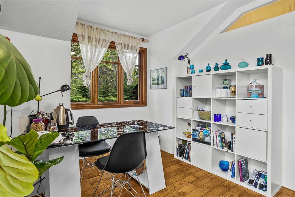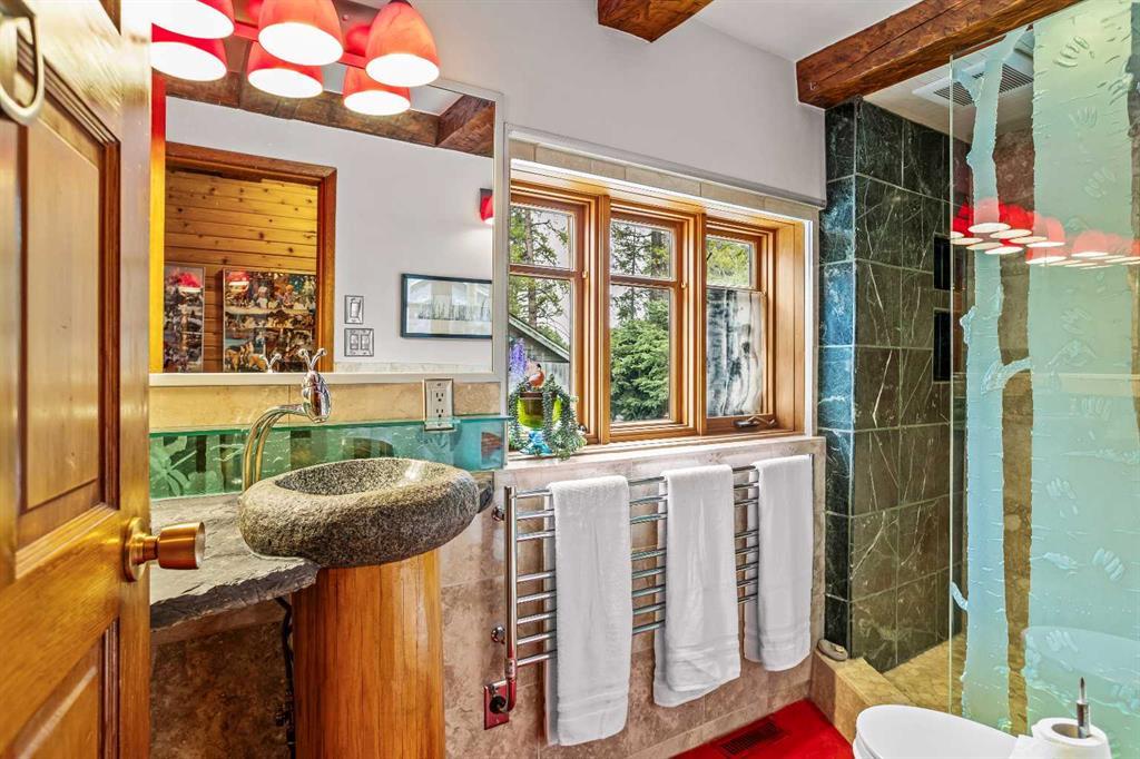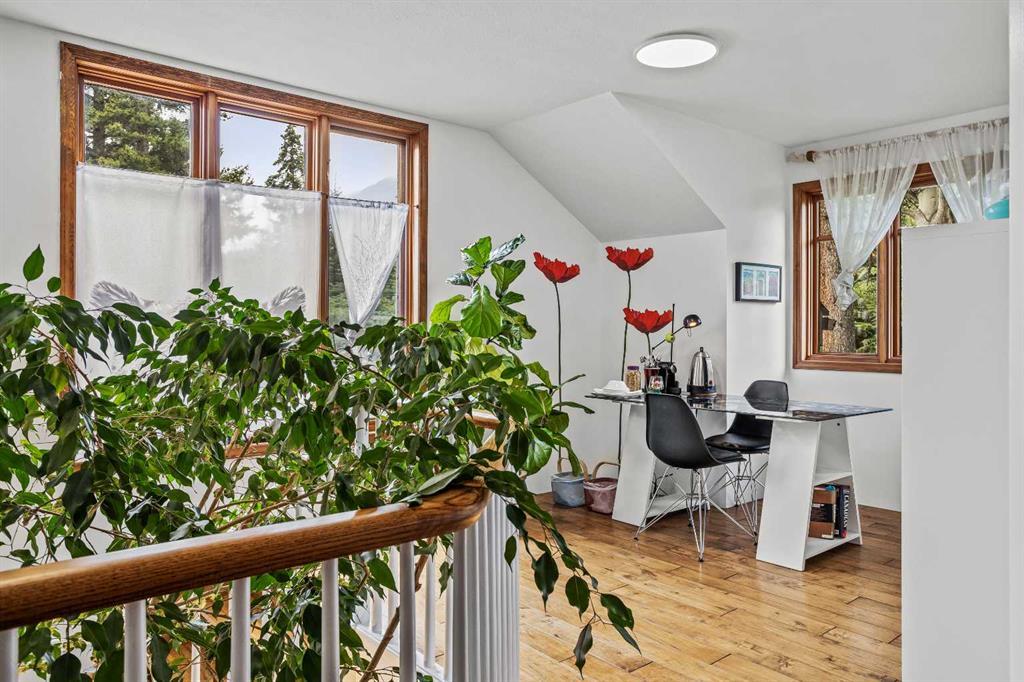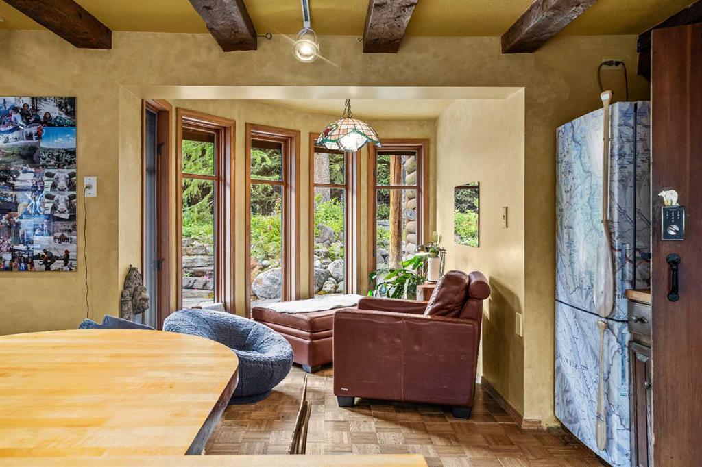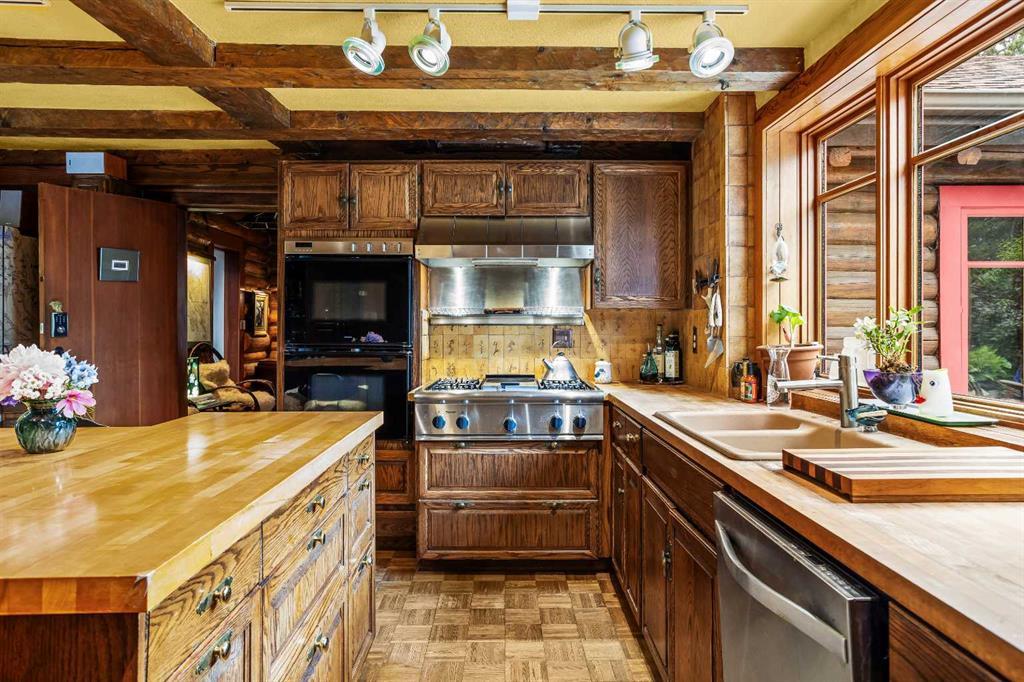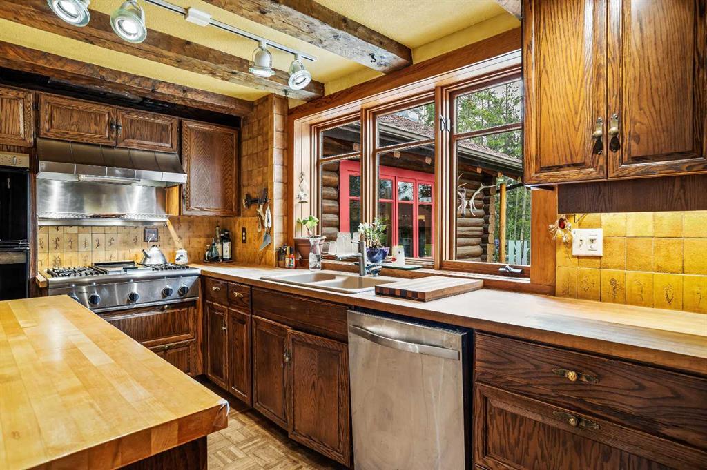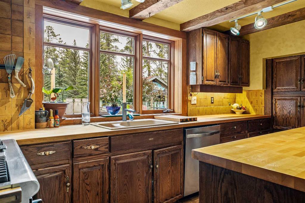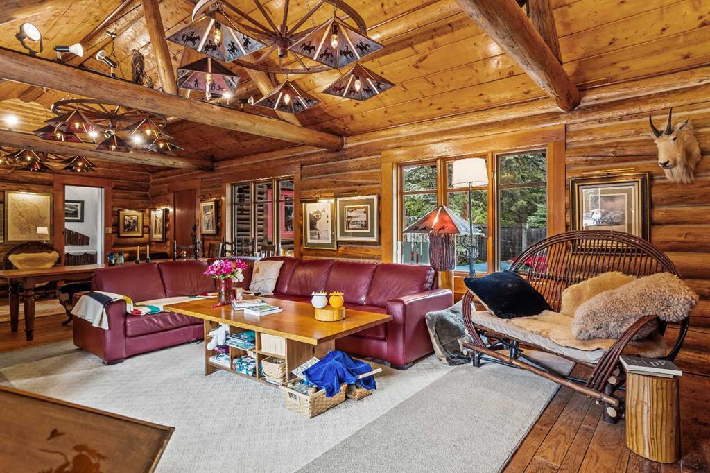 Fabulous possibilities in this Banff property Welcome to Banff, where this classic residence epitomizes the finest district in Banff, Kootenay Avenue. This unique modernized log home is secluded in the heart of Banff, where privacy and comfort are the norm. It offers extraordinary mountain views and the unparalleled lifestyle of living in Beautiful Banff. The rear exterior boasts a 300-square-foot cedar deck with a hand-carved glass panel depicting local flora and fauna on a dimmer switch. This deck overlooks Mt Rundle, currently a B&B, with the possibility of developing this property into three lots. Layout: Main Level Entry with two wings. Lot: Features a Parklike Setting, Private, over 21,600 sq ft. Heating: Natural gas. Flooring: options include hardwood, carpet, and linoleum. Roof: asphalt with solar panels. Parking: Room for five cars. Exterior: Feature fencing, Garden, Decks and Barn. Interior: Rustic Living Room/ Dining Room & Island Kitchen with a Gas Range, two Island Kitchen, Laundry: Main floor Fireplace: Description Wood Burning. An extraordinary possibility, duplex, triplex, and fourplex housing are all permitted under the local land use bylaw. This lot is positioned to be divided into three lots, offering ample potential.