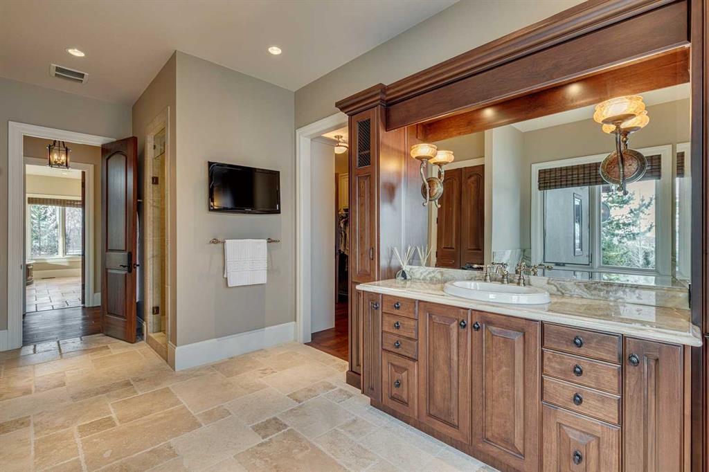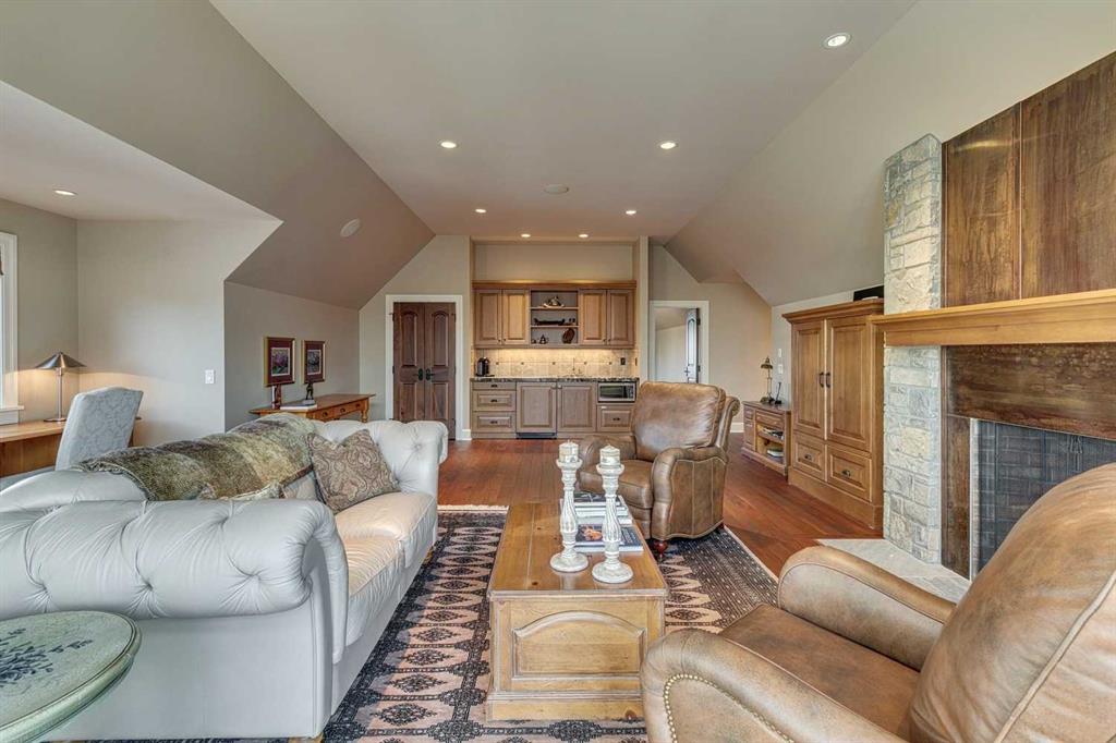 Nestled on 6.1 serene acres only 5 minutes to Calgary city limits, this exquisite French Country estate offers an unparalleled blend of luxury and elegance with a stunning mountain view. Culinary enthusiasts will love the chef-inspired kitchen, featuring two oversized islands and integrated built-in appliances. The home boasts a very large dining room, perfect for hosting grand gatherings, and a butler’s pantry with a dumbwaiter for seamless service. The expansive primary suite is a true retreat, featuring a cozy fireplace and separate his-and-hers en suites, both with steam showers and spacious walk-in closets. A charming upstairs loft includes its own spacious bedroom, family room, laundry and a spa-like bathroom. The walk-out basement is an entertainer’s dream, complete with a wet bar, gym, wine room, and additional butler’s pantry. Outdoors, unwind in a private oasis with a tranquil pond, cascading waterfall, and beautiful pergolas. A gated driveway and oversized quadruple garage complete this remarkable property, offering privacy and sophistication at every turn.