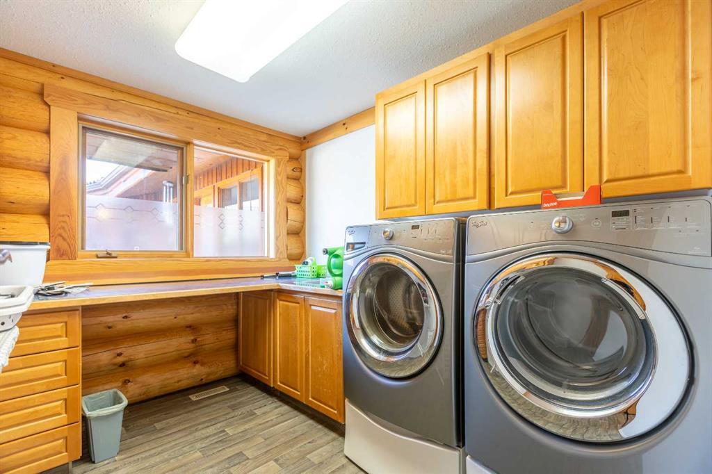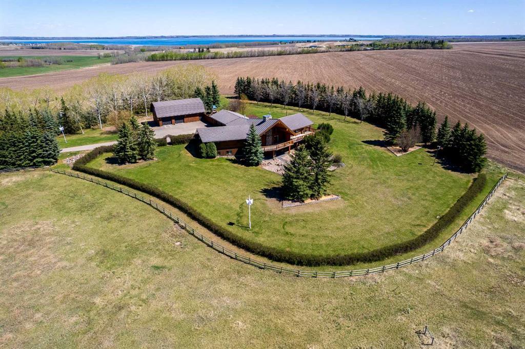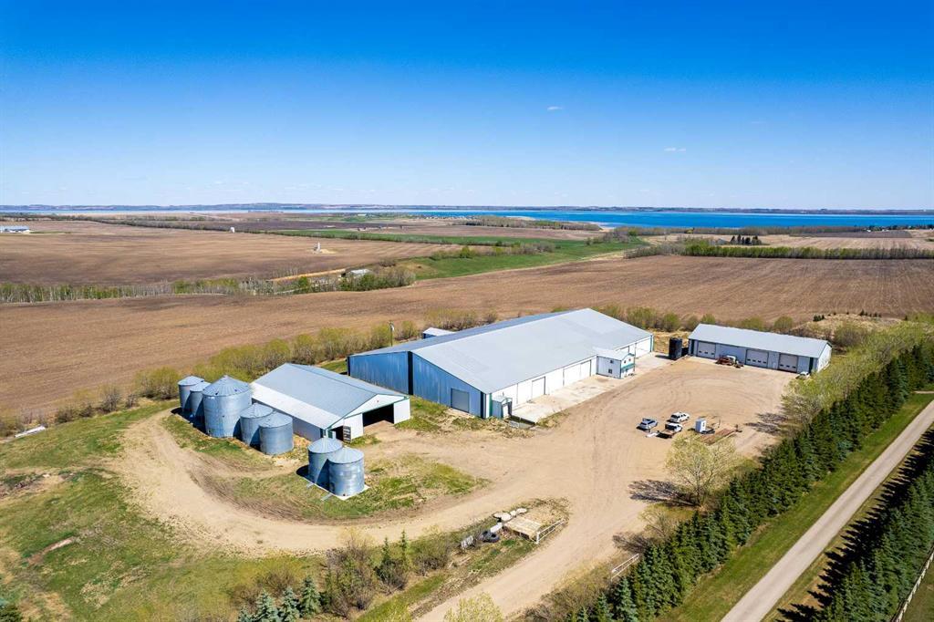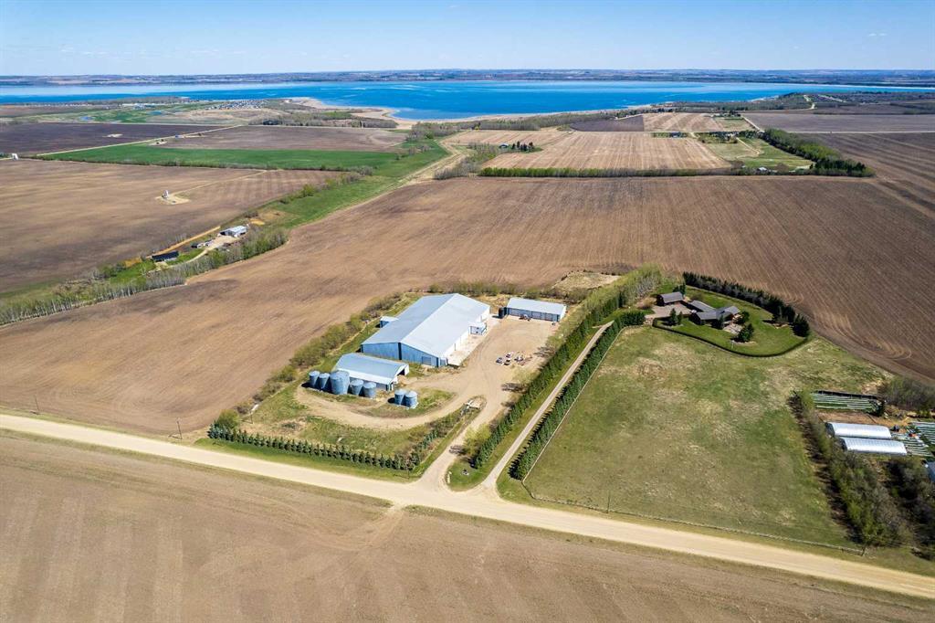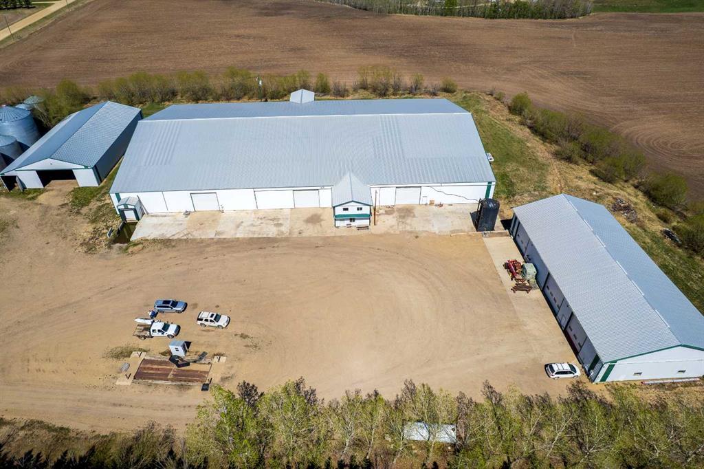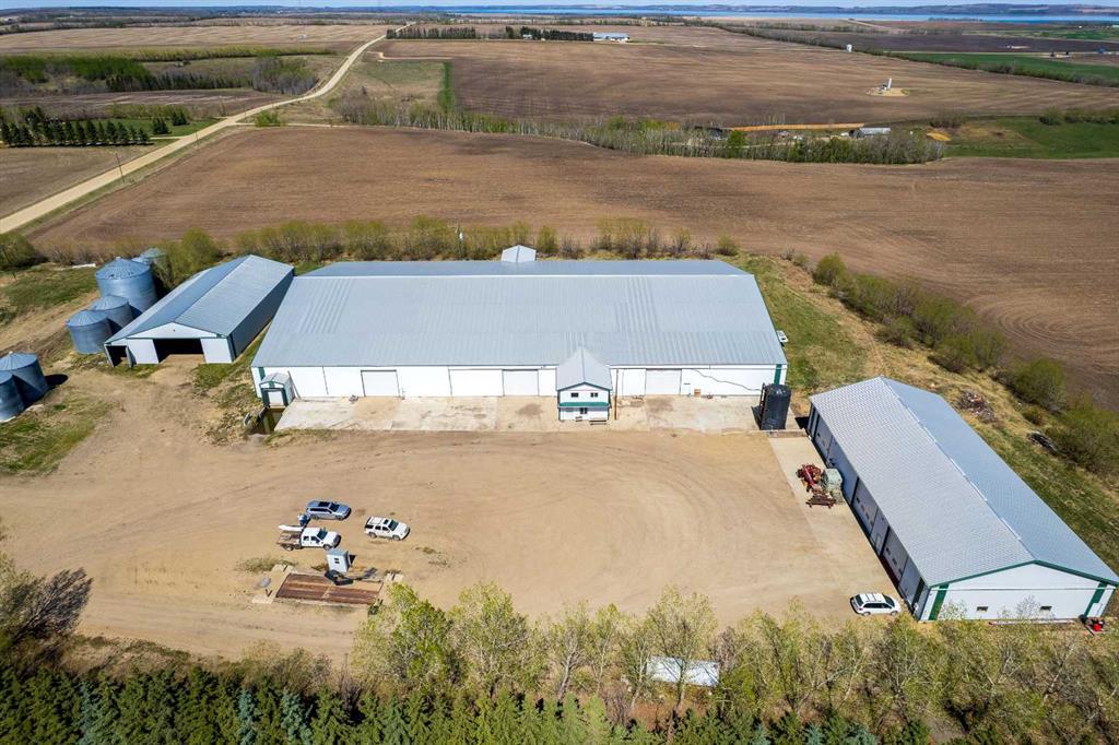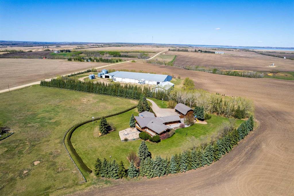 139.34 Acres of prime farmland with Custom Log Home & Versatile (Potato) Farm Site This 139.34-acre property combines 120 acres of prime cultivated land with an exceptionally well-built custom log home and a fully equipped farm site. A private, tree-lined paved driveway leads to the impressive 3,291 sq. ft. log home, designed with character. The home features 7 bedrooms and 3.5 bathrooms across two spacious levels. The living room is a standout feature, with a striking central (gas)fireplace, and expansive windows that flood the space with natural light while offering beautiful views of the property. The kitchen is well designed with large amounts of counter space, custom cabinetry, and a large pantry. The attached dining area is perfect for large gatherings. The primary bedroom includes a walk-in closet and a large ensuite bathroom with a shower, (jacuzzi) tub and more views of the incredible property. The home’s lower level is fully developed, with a large family room, 4 additional bedrooms, ample storage, and another (gas)fireplace, creating a cozy atmosphere. A semi wrap-around deck with a hot tub, a fire pit area, and a children’s play center complete the outdoor living space, making it ideal for relaxation and entertaining. Additional structures include an oversized double attached garage and a 48' x 28' triple detached garage with workspace and a spacious loft, with lots of room for vehicles, equipment, and storage. A separate sewer and water system from a previous mobile home setup allows for guest or employee accommodations, with space for a large trailer. Farm Infrastructure The farm site was historically used for seed potato production but adaptable for fertilizer storage/distribution, oil field services, or trucking operations, just to name a few. With a completely separate entrance from the residence, the site includes: 6,000 tons of potato storage facility (160' x 275') with office space, staff room, washroom, and a semi-trailer loading dock (~28,000 sq. ft.) 62' x 120' heated and insulated workshop with three overhead doors 120' x 76' fully metal-clad pole barn with a dirt/gravel floor Grain storage: One 20,000-bushel bin, two 4,000-bushel bins, two 5,000-bushel bins, and two 5,500-bushel bins, all on hopper bottoms 20,000-gallon water storage tank This is a reat opportunity to own a well-established and fully equipped farm operation while enjoying the comfort of a custom-built log home. Whether you’re looking to expand your agricultural business or establish a versatile rural operation, this property offers endless possibilities. Legal land description: SW-35-40-1-W5