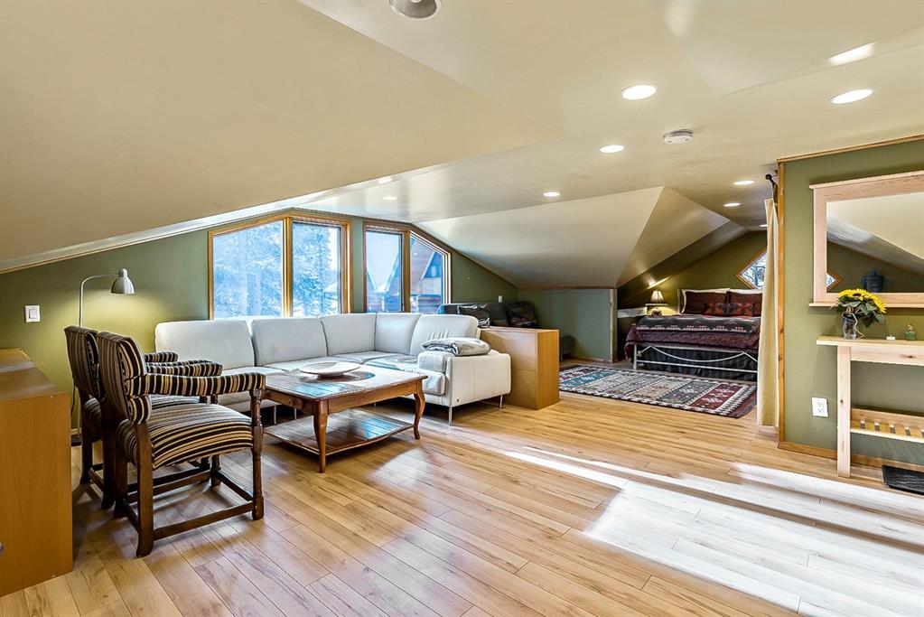 Rare lifestyle at the foothills of The Canadian Rocky Mountains. Only 30 min. drive to Calgary downtown. Welcome to the 104 White Ave. property, a unique 1.34-acre contemporary log home country estate nestled between the hamlet of Bragg Creek and Bragg Creek Provincial Park within walking distance to both and bordering 16 acres environmental reserve along Elbow River. The Douglas fir log elegant manor home features 6+1 bedrooms including 3 en-suites, a self-contained bachelor with separate entry and featuring in-floor heating and wood-burning stove, and a separate kitchenette living space above the detached 3-car garage. The bright & elegant 5000 sf south-western exposure main lodge features an impressive 26’ vaulted ceiling with river rock stone masonry/indoor gas fireplace, maple hardwood floors throughout, a pair of stained glass doors, gourmet Chef’s Alder kitchen with granite countertops, stainless steel appliances/gas range and an impressive granite 9’x 3’ kitchen island. Underneath the entire main house runs heated concrete crawling space (5’ height). In addition, there is a fully restored & electrified 1927 vintage cabin with water rough-in and adjacent storage shed. The house is connected to the townsite water/sewer system and it is supplied by tankless/on-demand water heater. There is a separate/emergency back-up cistern system/septic tank. This R-URB zoned trophy property is within coveted commercial designation; it has a potential to serve as a unique multi-generation family home. The forested parcel has direct access to the low bank Elbow River/pebble beach, is protected by the newly constructed dyke, features detached infrared heated 3-car garage with 220V outlet for EV car charger, newly professionally surfaced asphalt driveway and spacious guest parking area, wrap-around veranda with a river rock stones masonry outdoor gas fireplace, outdoor 6-person deep-soak cedar jacuzzi tub, 4-person wet sauna, fire pit, commercial 200 Amps main electric panel. This is your rare opportunity to capitalize on various life opportunities at the very footsteps of pristine Kananaskis Country and in the thriving Bragg Creek hamlet. Showings are by appointment only.