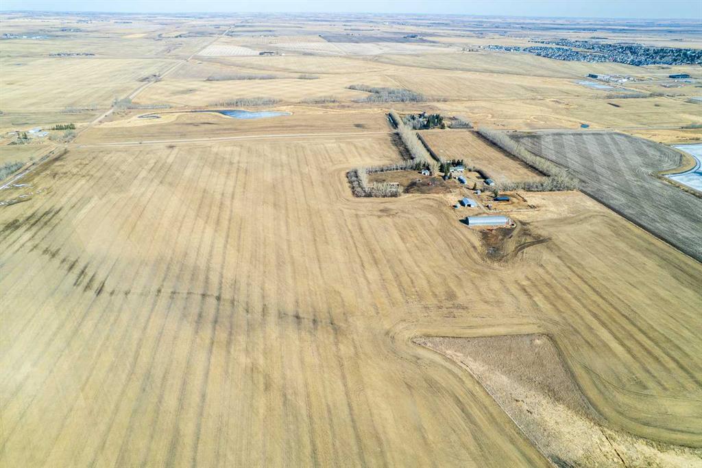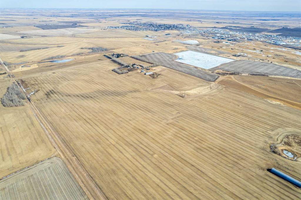 Just minutes outside the town of Crossfield and only 25 minutes from Calgary International Airport, this 300-acre parcel offers a rare blend of highly productive farmland, mountain views, and long-term investment potential. Located north of Airdrie and just outside of Crossfield’s town boundaries, this property sits in one of the most desirable rural regions near Calgary. Nestled in a peaceful setting with breathtaking views of the Rocky Mountains, this land offers the tranquility of country life with the convenience of city proximity. Whether you're heading into Calgary or accessing nearby amenities in Crossfield or Airdrie, everything you need is close at hand. Top-Quality Farmland: This is some of the best agricultural land in the area—ideal for a wide variety of crops. With excellent soil and the potential for irrigation, this property offers serious farming capability and consistent productivity. Development Potential: As Calgary and surrounding communities continue to grow, land in this corridor is becoming increasingly valuable. Whether for agricultural use today or strategic development tomorrow, this property offers flexibility and investment potential. The land is already equipped with two large hay sheds (42' x 202' and 42' x 150') and a cold storage building (57' x 31') with an attached lean-to (57' x 21')—ideal for farm equipment, feed, or future operational needs. Important Note: The current title reflects 320 acres, but a subdivision of approximately 20 acres (home-site) is in progress, resulting in a final parcel of +/- 300 acres. Possibility to buy the subdivided home-site seperate or as well. Whether you're an active farmer looking to expand, an investor seeking future development land, or someone looking to secure a versatile property in a rapidly growing area—this is an opportunity you don’t want to miss.