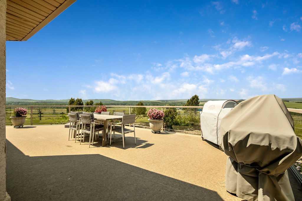 Luxury Walk-Out Bungalow on Gated Acreage with Breathtaking Mountain Views Just minutes from the city limits, this extraordinary walk-out bungalow offers over 6,900 square feet of beautifully finished living space on a private, gated estate. With 6 spacious bedrooms, 4 bathrooms, and a chef’s dream kitchen, this property is the perfect blend of luxury, functionality, and rural tranquility. Step inside to a grand entrance that opens to soaring ceilings, new designer lighting, and elegant finishes throughout. The main floor features a retreat-like primary suite, complete with spa-inspired amenities, while heated floors in the expansive basement offer year-round comfort. Three fireplaces add warmth and ambiance to the main living areas. Outdoors, the stunning mountain views provide a breathtaking backdrop to the beautifully landscaped grounds, complete with an underground sprinkler system, mature trees, and new decks for entertaining. Enjoy your own tennis/pickleball court, paved driveway, and two triple-car garages—each with brand-new door openers. Equestrian enthusiasts will appreciate the fully equipped barn with three horse stalls and a tack room, plus fenced and cross-fenced pastures with five paddocks, featuring wood and electric fencing, automatic waterer, and two horse shelters. This property truly has it all—privacy, space, luxury, and accessibility. Whether you're hosting guests, raising a family, or enjoying the peace of country living with your horses, this exceptional home delivers on every level. (Mountain view pictures will be updated once the smoke clears, Bordering 55 acres also for sale)