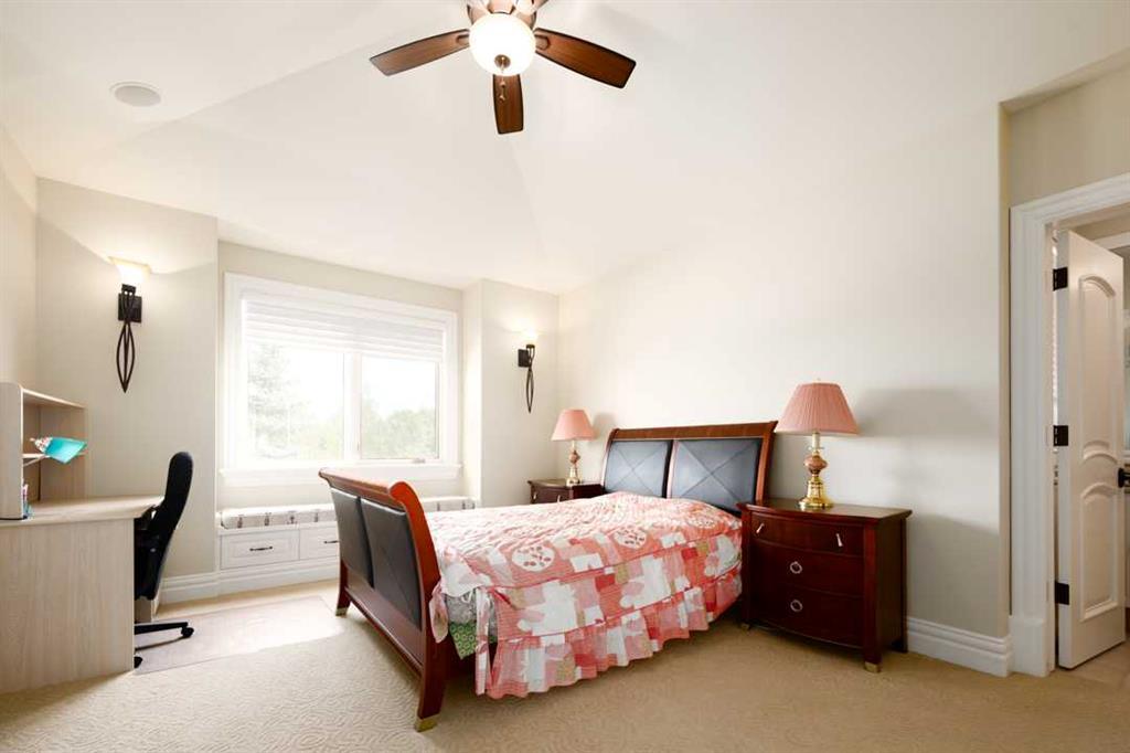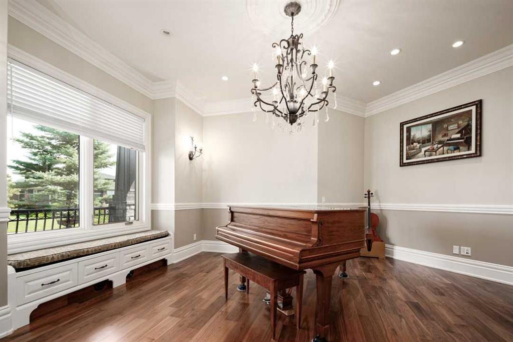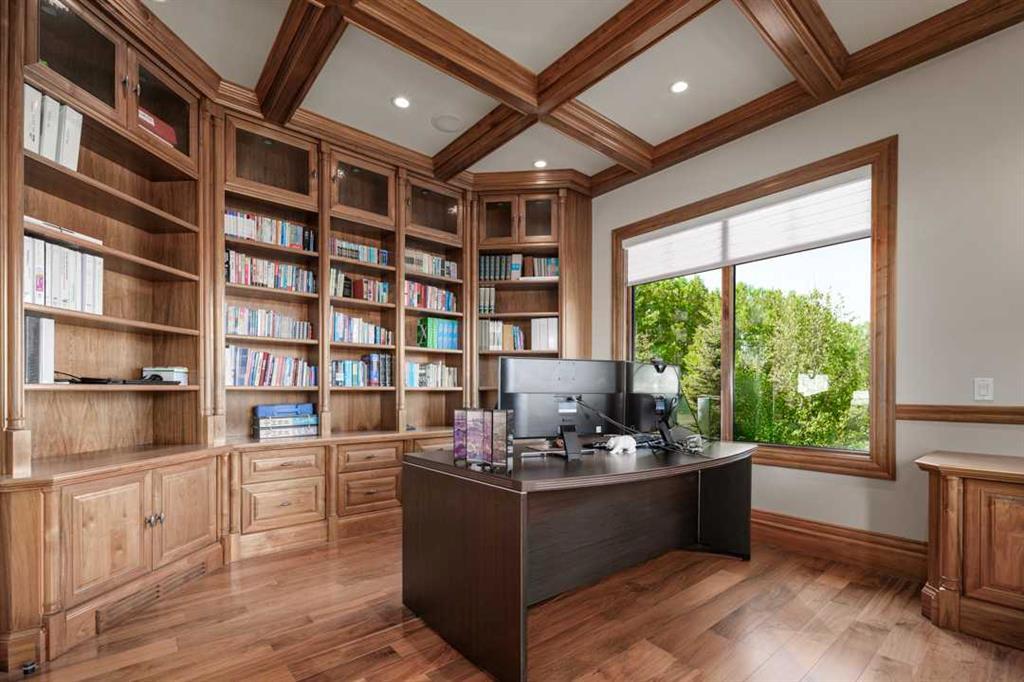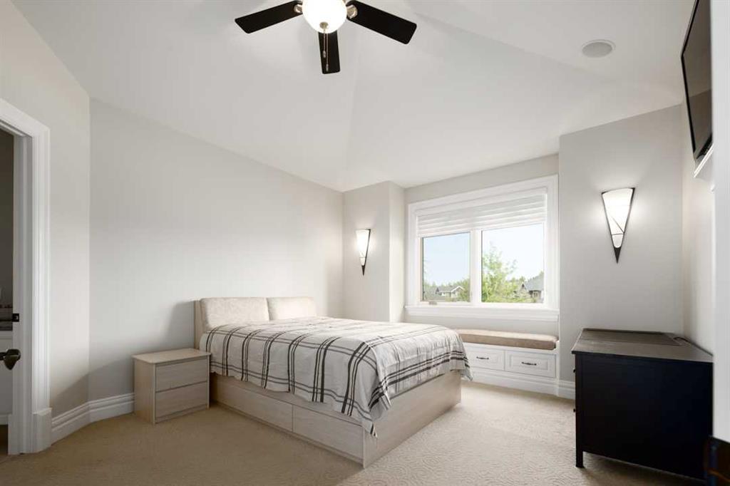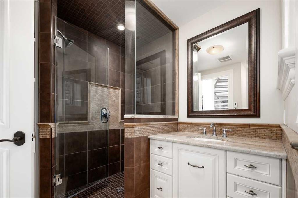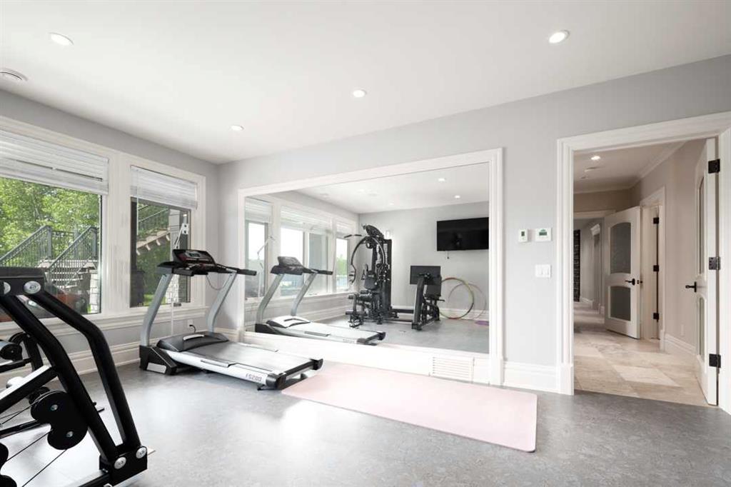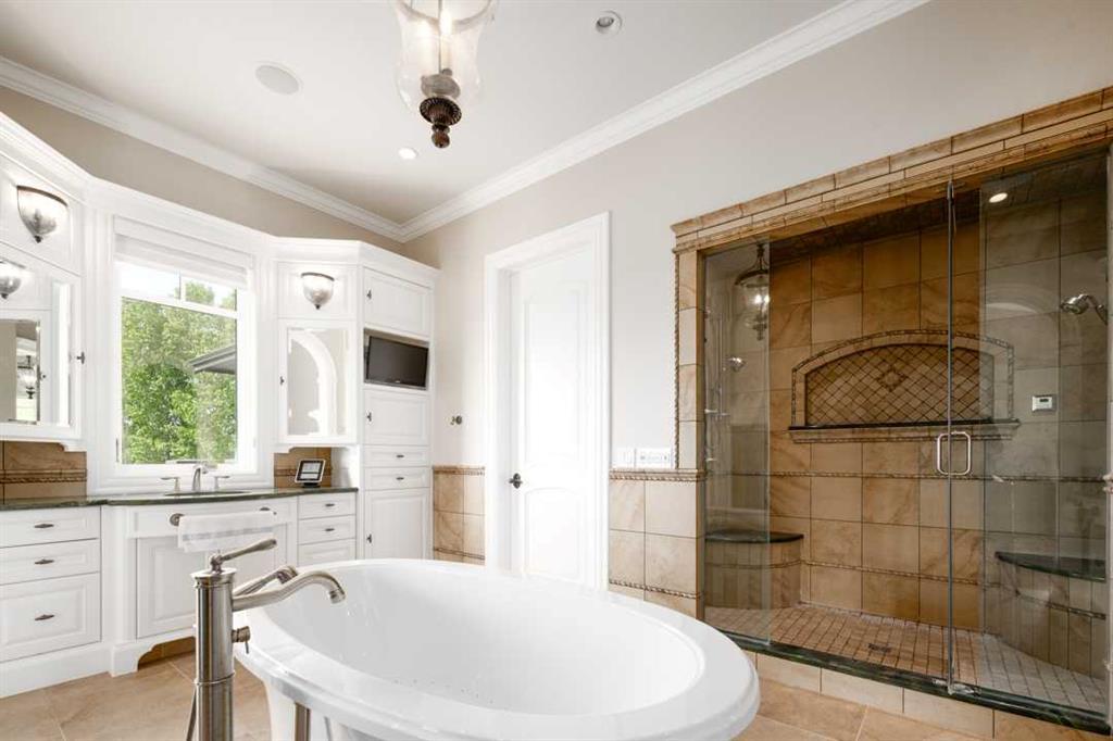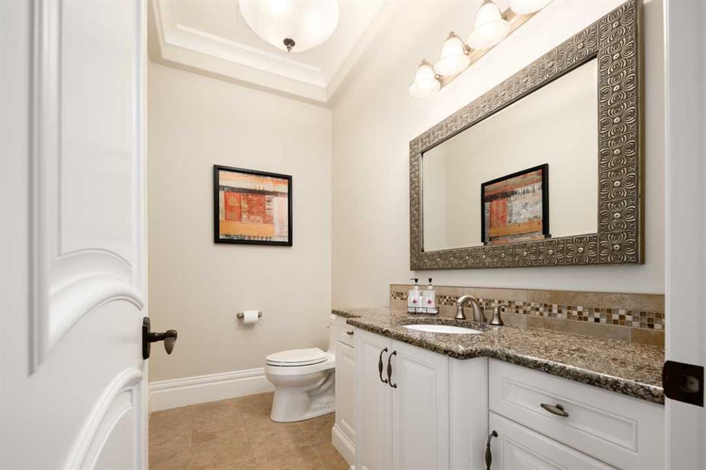 Experience timeless elegance in this extraordinary French Country Chateau, designed by Dreamworks, this architectural masterpiece is nestled on a picturesque 2-acre lot with panoramic mountain views. At the heart of the home is a magnificent 2 storey Great Room with a dramatic 20 ft barrel vaulted ceiling and floor-to-ceiling natural stone fireplace. Rich walnut hardwood floors, custom crown mouldings, and a curved walnut staircase set the tone for this warm yet opulent residence. The dream kitchen offers both function and elegance, featuring antiqued cream cabinetry, exotic granite countertops, and two expansive islands. Culinary enthusiasts will appreciate the top-tier appliance package, including a 60” Viking gas range, 48” paneled Viking fridge, KitchenAid Professional dishwasher, ice maker, and wine and beverage fridges. The layout includes a walk-through pantry with custom cabinets and granite counters, offering direct access from the garage for effortless grocery unloading, as well as a separate butler’s pantry with additional storage and prep space, perfect for seamless entertaining. The main floor showcases a luxurious primary suite featuring a double sided fireplace, bay window sitting area, private balcony access, & vaulted ceilings with ambient valence lighting. The spa-like ensuite offers a free standing BainUltra heated air-jet tub, steam shower, and an enormous double dressing room with custom-built cabinetry, drawers, and a central island. Additional main level highlights include two powder rooms, a private office, a richly paneled den with walnut coffered ceilings and custom built-ins, and a well-appointed laundry room. The upper level features two secondary bedrooms, each with private ensuite bathrooms. Downstairs, the fully finished walkout basement is a true entertainer’s paradise. A stunning circular wet bar with pendant lighting anchors the massive recreation and games room, while a dedicated media room features a 135” screen, 1080p projector, elevated theatre seating for seven, and a Dolby THX 14.2 surround sound system. A private gym with cork flooring and adjacent steam bath, a guest bedroom with 5-piece ensuite, a wine cellar with wrought iron glass doors and temperature control, and a Russound 26-speaker home stereo system complete this spectacular level. For the car enthusiast, quadruple oversized attached garages offer parking for up to 6 vehicles, featuring 12.5’ ceilings, epoxy floors with border detailing, floor drains, and direct access to the basement. Located in a serene and private setting, yet minutes from top-rated schools, Aspen Landing, the 69th Street C-Train station, and major routes including Stoney Trail. Enjoy nearby golf courses and community amenities including a playground, outdoor recreation area, pickleball court, skating rink, picnic space, and an extensive network of walking paths. This is more than a home—it’s a lifestyle. A rare and refined estate for the most discerning buyer