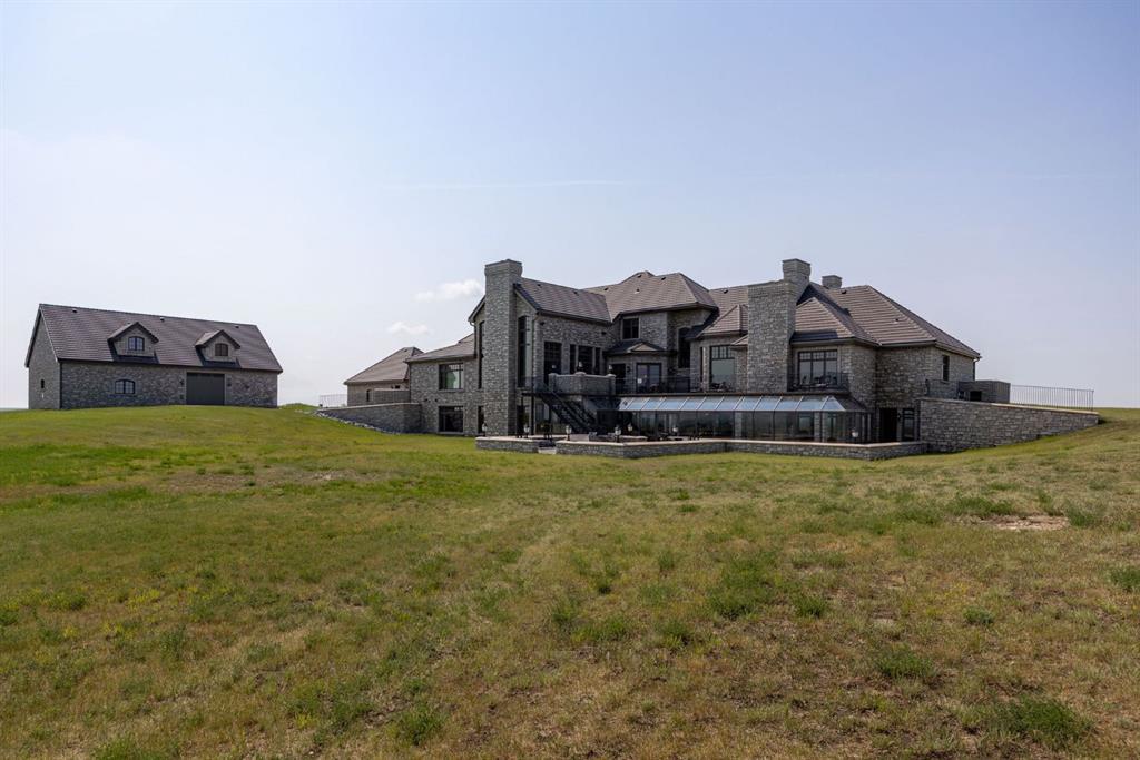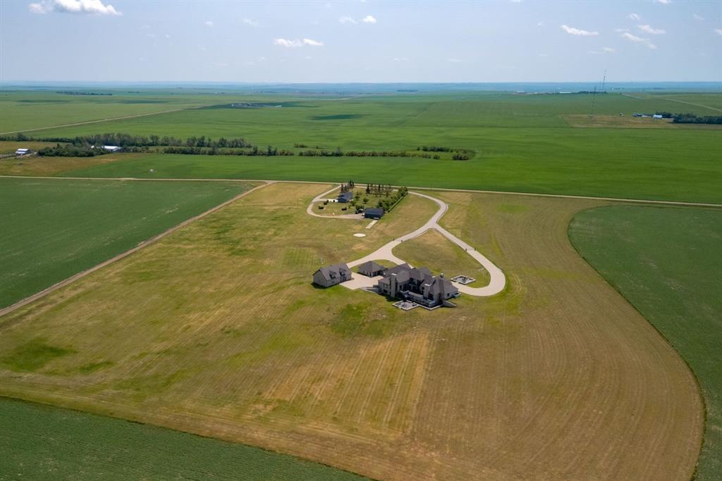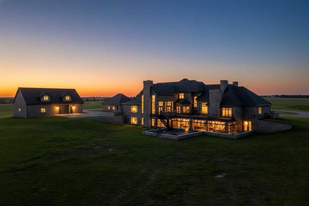 160 Acres of Prairie Elegance – A Landmark Estate of Luxury, Scale, and Possibility Welcome to an extraordinary 160-acre estate in the heart of Alberta’s Kneehill County—a rare offering where timeless craftsmanship meets the quiet beauty of prairie living. Just one hour from Calgary and YYC International Airport, this estate combines luxury, privacy, and flexibility, making it ideally suited for multigenerational living, a boutique retreat, or a distinguished rural residence unlike any other. At the heart of the property is a magnificent 13,000+square foot stone-clad home, thoughtfully designed and masterfully built with uncompromising attention to detail. From the rich cherry oak mouldings and custom cabinetry to the Cheryl Wagner gold hardware and fixtures, every finish is of the highest quality. The home's Crestron smart technology, soaring ceilings, and seven gas-lit wood-burning fireplaces create a setting that is as refined as it is welcoming. The layout is exceptionally spacious, designed to accommodate large-scale entertaining while maintaining a warm and livable flow. Each of the seven bedrooms includes its own private ensuite, and every room opens directly onto an outdoor patio, inviting the surrounding landscape into everyday life. A newly built enclosed solarium expands the indoor-outdoor living experience even further—offering a year-round space to relax, dine, or entertain while immersed in natural light and panoramic views. Wellness is a central theme in this home, with a private gym, steam room, and spa all located on the lower level. The chef’s kitchen is a showpiece, offering top-tier appliances, granite countertops, a large center island, butler’s pantry, and a secondary mess kitchen—ideal for catered events or extended family stays. An attached three-car garage adds functionality, and the inclusion of a nanny or in-law suite offers thoughtful flexibility for a variety of living arrangements. A secondary 3,000-square-foot residence provides additional space for extended family, on-site management, or guest accommodations—blending seamlessly with the estate’s overall aesthetic. Meanwhile, a heated 180x80 machine shop offers incredible versatility, easily transformed into an equestrian center, event venue, or expansive workspace for agricultural or mechanical pursuits. Designed with long-term self-sufficiency in mind, the estate features 22,000 gallons of water storage, an automatic backup generator, cold storage, and a helicopter landing pad. Though rural in setting, the property offers peace of mind and modern comfort in equal measure. Outdoor living is as immersive as it is luxurious, with multiple expansive terraces, a built-in outdoor kitchen, and uninterrupted views of Alberta’s wide, open skies and rolling fields. Whether gathering with loved ones or simply enjoying the silence of nature, the experience is restorative and deeply grounding. This property is not just a home—it’s a generational opportunity.