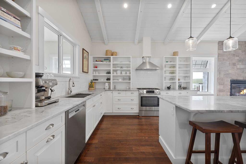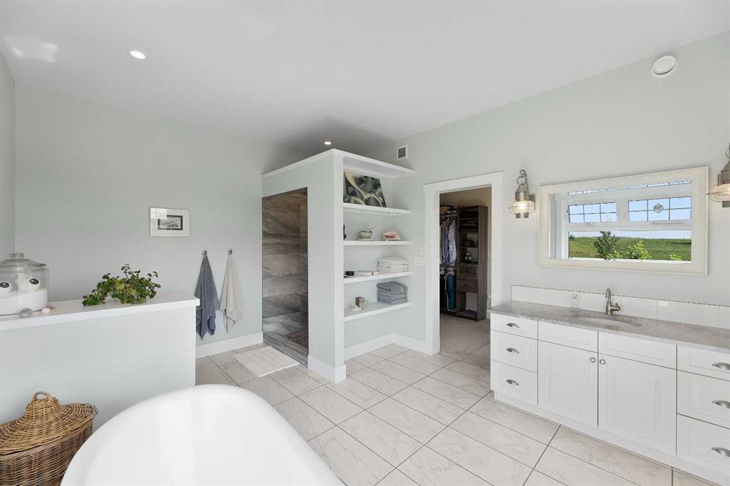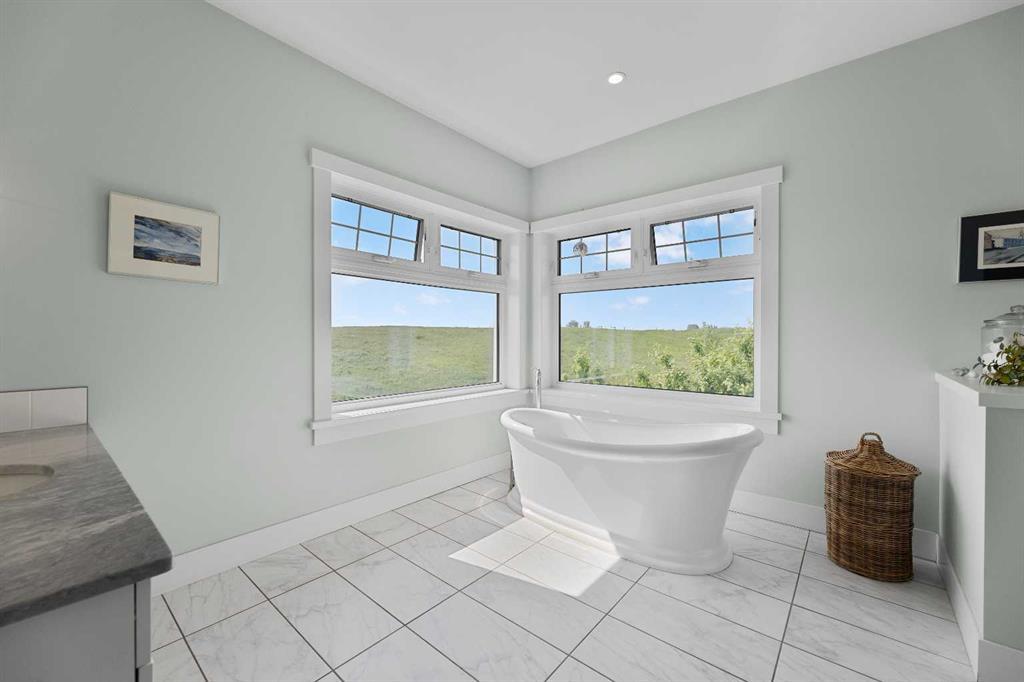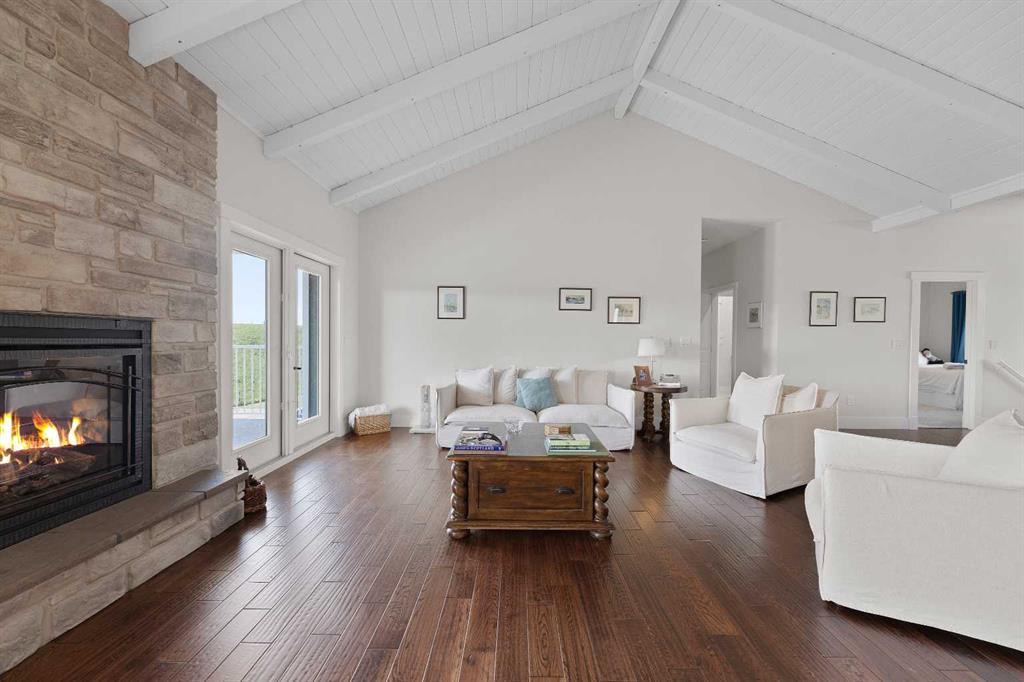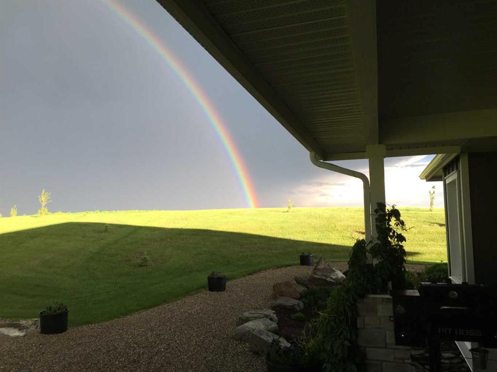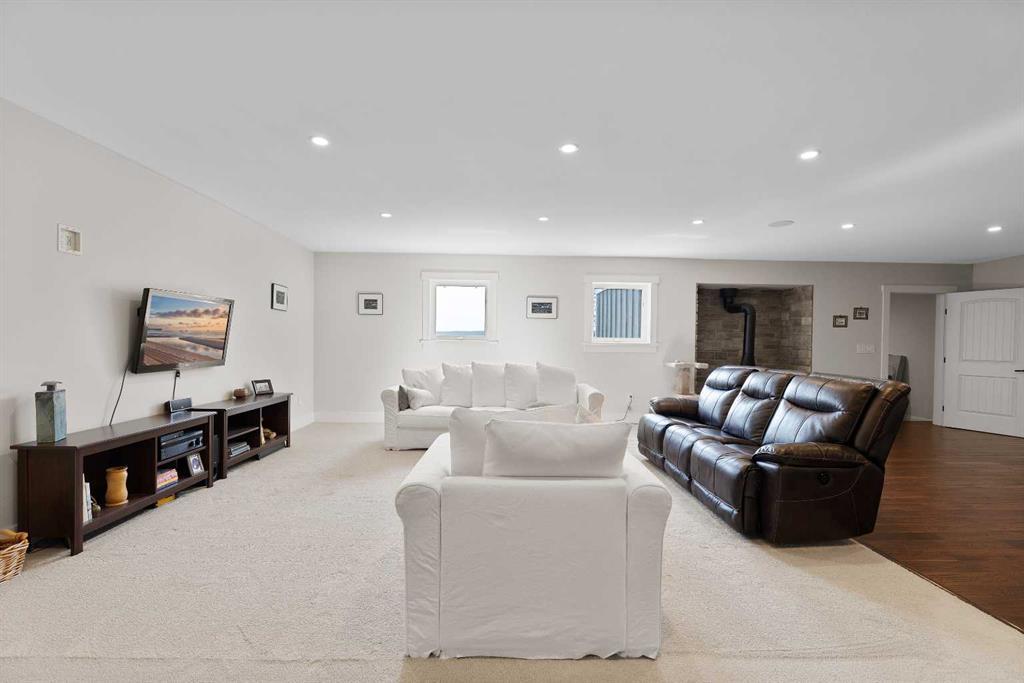 Welcome to this immaculate modern farmhouse set on 157 gently rolling acres, offering unmatched privacy, subtle luxury, and endless potential. Located just 5 minutes from the town of Olds and only 45 minutes from Calgary International Airport, this extraordinary property is the perfect blend of peaceful rural living and everyday convenience. Built with quality craftsmanship and environmental consideration throughout, the home features 18-foot vaulted shiplap ceilings, engineered hardwood floors, and an impressive stone fireplace anchoring the bright, open-concept main living area. The heart of the home is a stunning chef’s kitchen and dining space, perfect for entertaining or quiet family meals. The primary suite is a true retreat with a spacious walk-through closet, a tucked-away micro office, and a spa-like 3-piece ensuite with a massive walk-in shower and standalone tub that gazes out over the scenic countryside. This level also includes a sun-filled sitting room, three additional large bedrooms, a full bathroom, powder room, and convenient main-floor laundry. A standout feature of this home is the separately accessed yoga studio, complete with its own entrance, parking lot (hidden from the main residence), and lock-off from the home—ideal for a home-based business, gym, or creative space. Downstairs, the walk-out lower level offers a sprawling recreation room with a wood-burning fireplace, space for games or media, a fifth bedroom or office, a dedicated gear room, cold/wine storage, and a versatile music room with separate access—ideal for clients or team members coming and going. Step outside and enjoy thoughtful exterior features like a west-facing deck, expansive covered front porch, and oversized attached garage. The land includes a dugout with solar pump, natural water tributary, and a 155-foot well. Approximately 30 acres are cultivated, and the property generates income through land rental and an oil and gas lease. Within the fenced 5-acre inner yard, you’ll find a large vegetable garden, sunflower and rose beds, and a beautifully lit path connecting the yoga studio to the home. Grain storage and three natural springs round out the property’s agricultural and recreational value. Whether you’re seeking a lifestyle property, small-scale farming potential, a retreat space, or simply a beautifully built home in nature—this rare offering delivers it all.