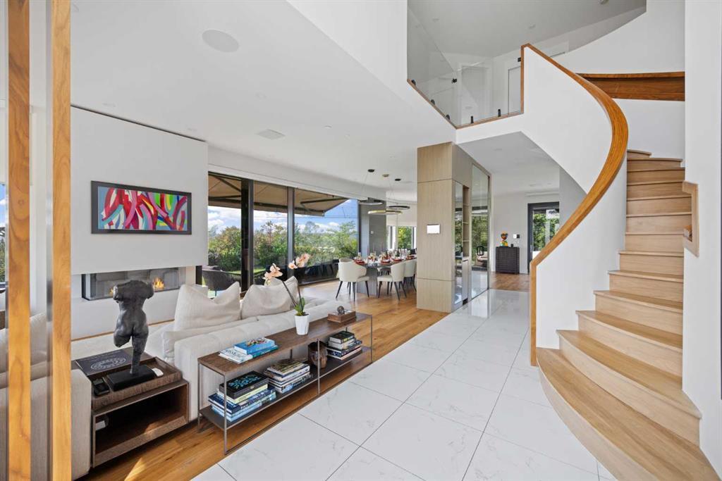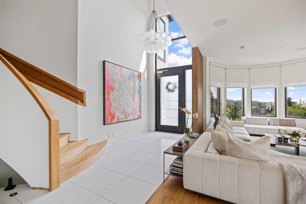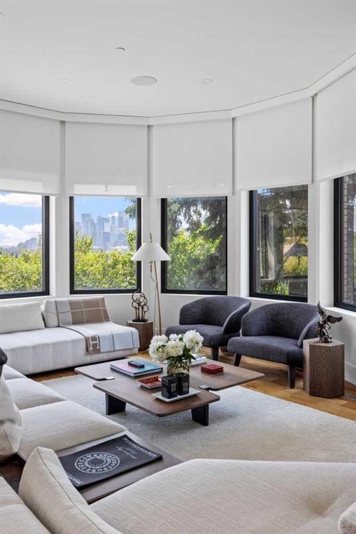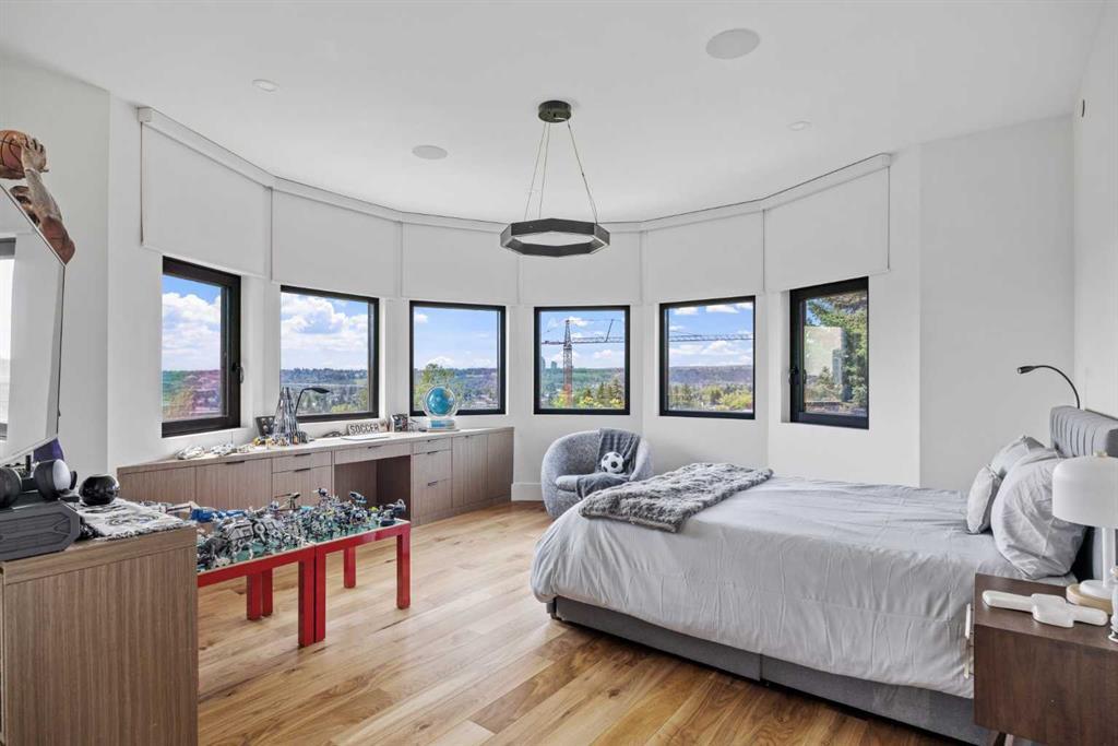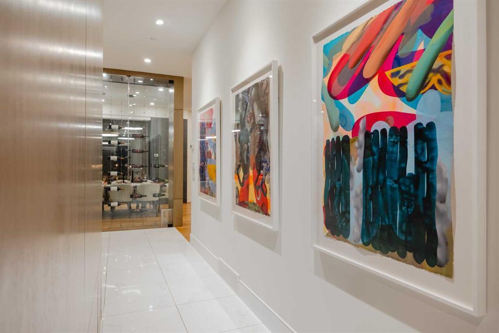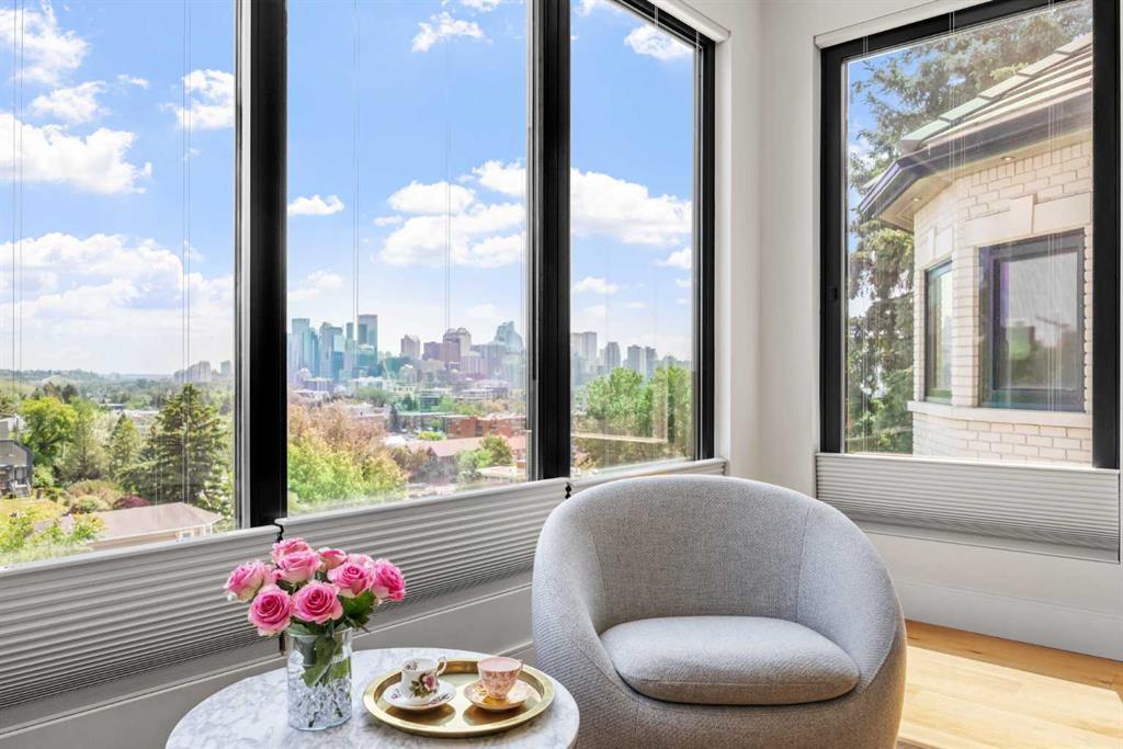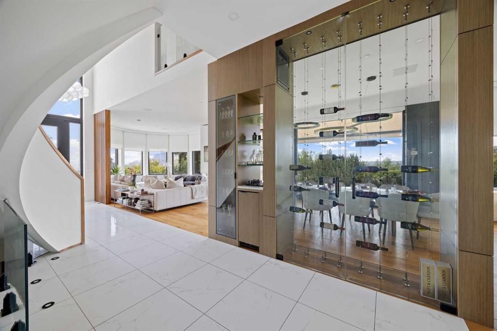 OPEN HOUSE October 25th 2-4PM. The Glasshaus is a REMARKABLE offering in Calgary’s coveted Briar Hill. This lock-and-leave luxury residence is perched on an ULTRA-EXCLUSIVE ridge lot surrounded by PARKLAND on three sides, offering unmatched PRIVACY and PANORAMIC VIEWS from east to west. A true retreat in the heart of the city, The Glasshaus blends iconic architecture with a low-maintenance lifestyle — perfect for those seeking sophisticated living without compromise. REIMAGINED FROM THE STUDS with nearly $3 million in upgrades — including new electrical, plumbing, HVAC, triple-pane windows, and custom structural reengineering — The Glasshaus is a seamless expression of comfort, functional beauty, refined living, and purposeful minimalism. Smooth stucco, brick detailing, and composite wood-look siding wrap the exterior in a sophisticated, warm-modern finish. Gaulhofer triple-pane windows from Austria, paired with a solar film, provide exceptional energy efficiency, sound attenuation, and soft natural light throughout the day. The entry opens to a 19-foot foyer anchored by the sculptural Apparatus Studio "Cloud" chandelier, floating beneath an architectural window and setting the tone for the artful design within. Airy living spaces flow around a dramatic, climate-controlled glass wine cellar — the centerpiece of the home. The Italian Pedini kitchen — with integrated Miele appliances, a curved quartz island, Matthew McCormick pendants, and handle-free cabinets — is a functional space for those with a passion for culinary arts. Finishes include Spanish hardwood flooring, Italian tile, and New Zealand wool carpet. A Control4 system manages lighting, blinds, audio, video, temperature, intercom, and security. Bowers & Wilkins speakers deliver rich sound throughout. The main level also includes a soundproof office with custom millwork and leather upholstery, a designer powder room, and laundry with quartz surfaces and smart storage. The architecturally striking curved stairwell leads to the upper level where FOUR IMMENSE bedrooms EACH INCLUDE AN ENSUITE, spacious walk-in closets, motorized blackout blinds, and incredible sunrise and sunset views. The primary suite features a downtown-facing, custom-designed bed wall, a double-sided fireplace, a built-in wardrobe, and a spa-inspired ensuite with radiant quartz counters, “gold” European fixtures, a freestanding tub, a frameless glass shower, and a Japanese-style smart toilet. The lower level hosts a second wine cellar, a wet bar, a state-of-the-art home theatre system, a glass-enclosed gym with cork flooring, a steam spa bathroom, and an open recreation space. Advanced Radon mitigation, water filtration, UV air purification, and a whole-home fire suppression system add peace of mind. Exterior upgrades include full concrete work, electric awnings, and a multi-sport court. The heated 3-vehicle garage offers lift potential. A one-of-a-kind residence, redefined for effortless living. Schedule your private showing today.