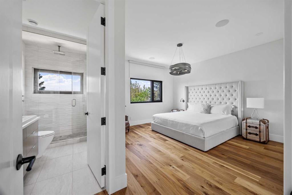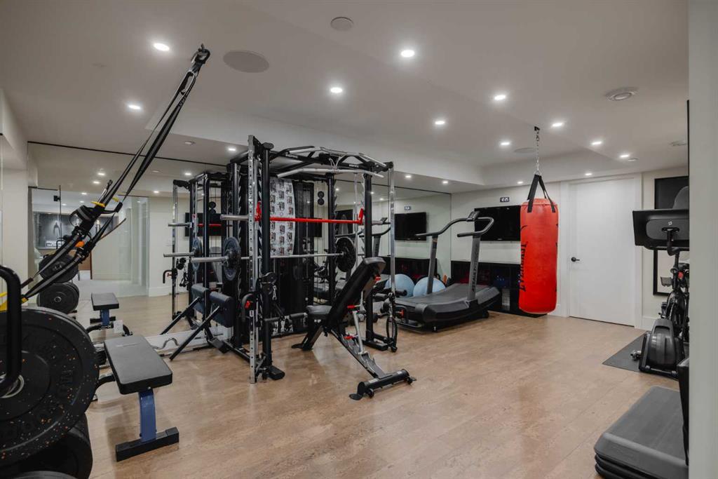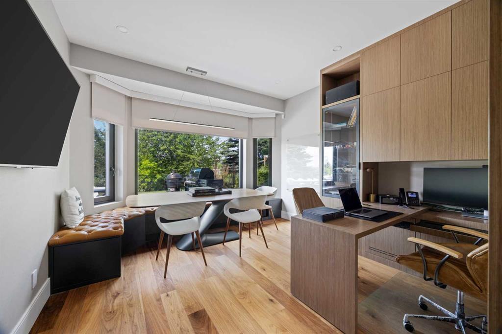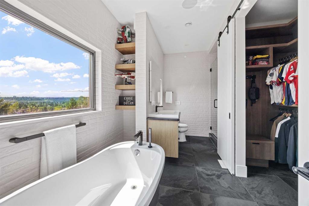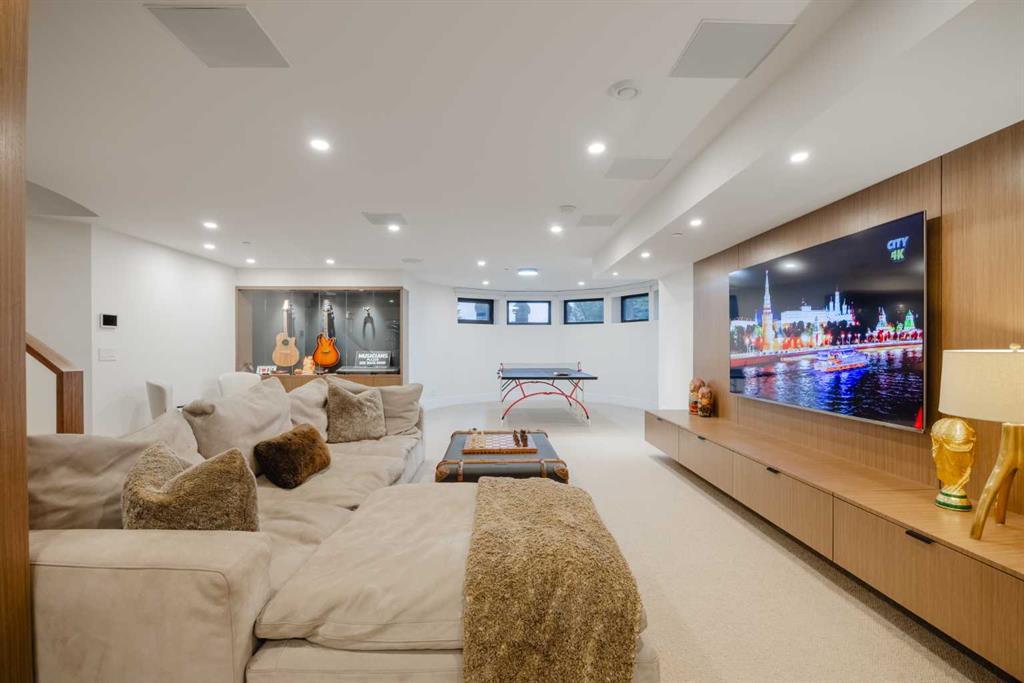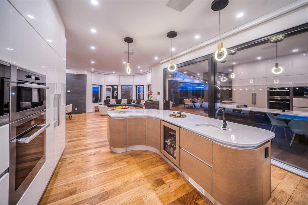 OPEN HOUSE October 25th 2-4PM. The Glasshaus is a REMARKABLE offering in Calgary’s coveted Briar Hill. This lock-and-leave luxury residence is perched on an ULTRA-EXCLUSIVE ridge lot surrounded by PARKLAND on three sides, offering unmatched PRIVACY and PANORAMIC VIEWS from east to west. A true retreat in the heart of the city, The Glasshaus blends iconic architecture with a low-maintenance lifestyle — perfect for those seeking sophisticated living without compromise. REIMAGINED FROM THE STUDS with nearly $3 million in upgrades — including new electrical, plumbing, HVAC, triple-pane windows, and custom structural reengineering — The Glasshaus is a seamless expression of comfort, functional beauty, refined living, and purposeful minimalism. Smooth stucco, brick detailing, and composite wood-look siding wrap the exterior in a sophisticated, warm-modern finish. Gaulhofer triple-pane windows from Austria, paired with a solar film, provide exceptional energy efficiency, sound attenuation, and soft natural light throughout the day. The entry opens to a 19-foot foyer anchored by the sculptural Apparatus Studio "Cloud" chandelier, floating beneath an architectural window and setting the tone for the artful design within. Airy living spaces flow around a dramatic, climate-controlled glass wine cellar — the centerpiece of the home. The Italian Pedini kitchen — with integrated Miele appliances, a curved quartz island, Matthew McCormick pendants, and handle-free cabinets — is a functional space for those with a passion for culinary arts. Finishes include Spanish hardwood flooring, Italian tile, and New Zealand wool carpet. A Control4 system manages lighting, blinds, audio, video, temperature, intercom, and security. Bowers & Wilkins speakers deliver rich sound throughout. The main level also includes a soundproof office with custom millwork and leather upholstery, a designer powder room, and laundry with quartz surfaces and smart storage. The architecturally striking curved stairwell leads to the upper level where FOUR IMMENSE bedrooms EACH INCLUDE AN ENSUITE, spacious walk-in closets, motorized blackout blinds, and incredible sunrise and sunset views. The primary suite features a downtown-facing, custom-designed bed wall, a double-sided fireplace, a built-in wardrobe, and a spa-inspired ensuite with radiant quartz counters, “gold” European fixtures, a freestanding tub, a frameless glass shower, and a Japanese-style smart toilet. The lower level hosts a second wine cellar, a wet bar, a state-of-the-art home theatre system, a glass-enclosed gym with cork flooring, a steam spa bathroom, and an open recreation space. Advanced Radon mitigation, water filtration, UV air purification, and a whole-home fire suppression system add peace of mind. Exterior upgrades include full concrete work, electric awnings, and a multi-sport court. The heated 3-vehicle garage offers lift potential. A one-of-a-kind residence, redefined for effortless living. Schedule your private showing today.