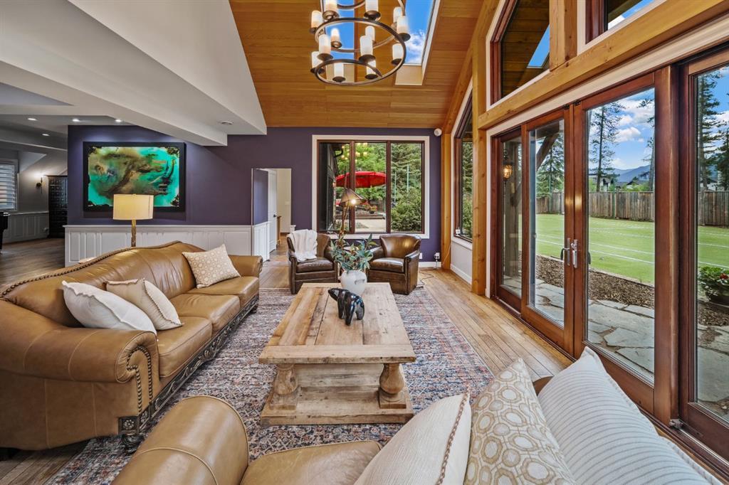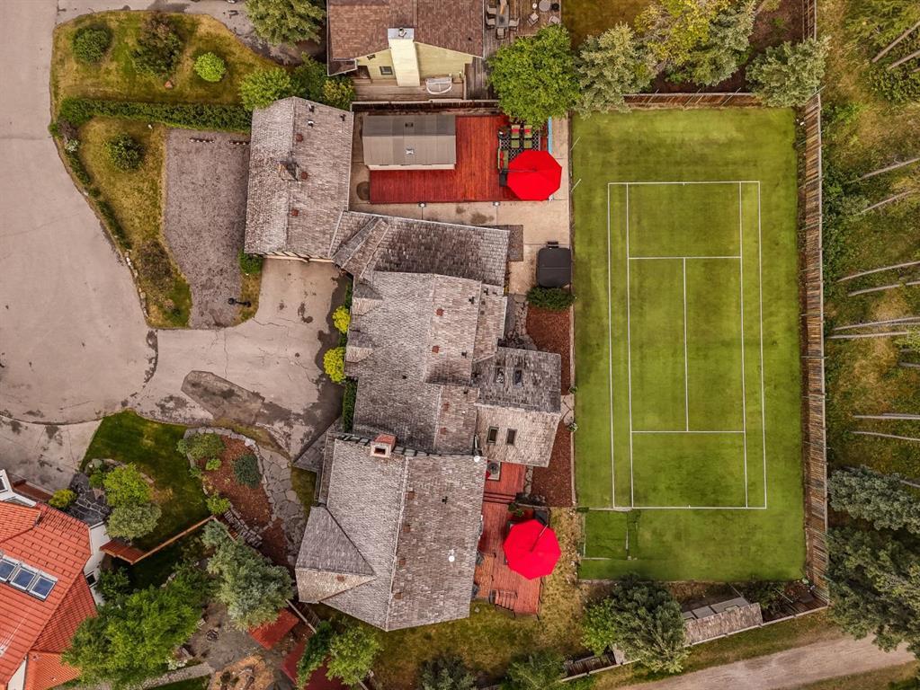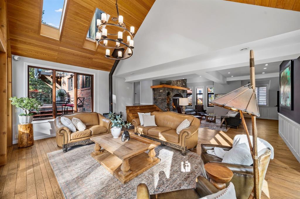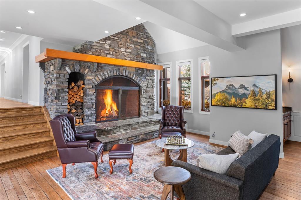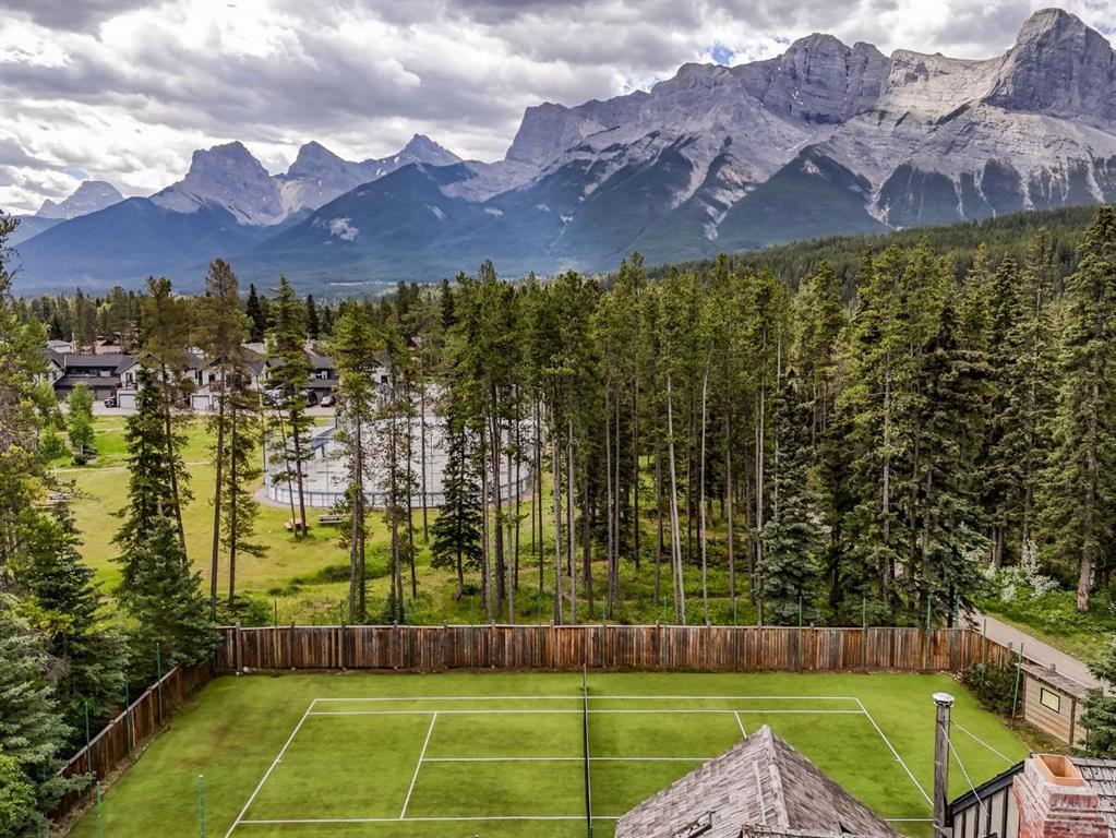 Set within a peaceful and private cul-de-sac, 5 Woodside Lane is a distinguished alpine estate that blends timeless elegance with contemporary refinement. Nestled on an expansive double lot of nearly 19,000 square feet, this property offers rare water and parkland frontage, where a tranquil side channel of the Bow River meanders beside the south-facing backyard and adjacent parkland creates a natural buffer of privacy. The four-bedroom, four-and-a-half-bathroom home unfolds with a sense of considered grandeur. At its heart, the great room features a soaring ceiling with timber accents and a commanding stone fireplace—an architectural centerpiece that evokes warmth and permanence. Expansive windows frame panoramic views of the surrounding peaks, forest, and sky, allowing natural light to spill across the interiors and draw the outdoors in. The interiors are a study in contrast and harmony—where old-world charm meets modern sophistication. Rich wood beams, artisan tilework, and hand-forged details are paired with clean-lined finishes and curated lighting, offering an understated luxury that is both refined and relaxed. Designed for both gracious entertaining and quiet retreat, the home’s layout includes multiple gathering spaces and a thoughtfully appointed kitchen that anchors daily life. The private bedroom suites provide comfort and seclusion, while the home’s lower level offers additional room to unwind or host extended family and guests. Outdoors, a private tennis court and sun-drenched backyard create a lifestyle rarely found in the Rockies—a serene haven within minutes of Canmore’s vibrant downtown and world-class trails. Bordering the eastern edge of Banff National Park, Canmore offers unmatched access to hiking, biking, skiing, and climbing. From this estate, adventure begins at your doorstep. Located in the mature neighbourhoods of Lion’s Park and Larch, 5 Woodside Lane is more than a home—it is a legacy property, offering a singular opportunity to live immersed in nature, design, and enduring quality.