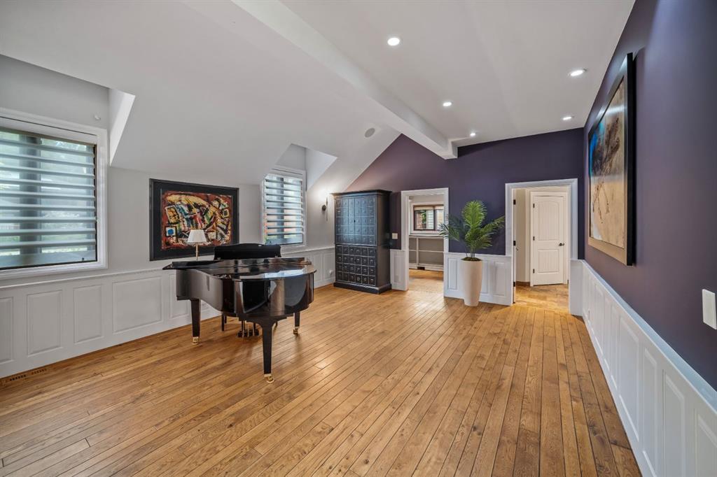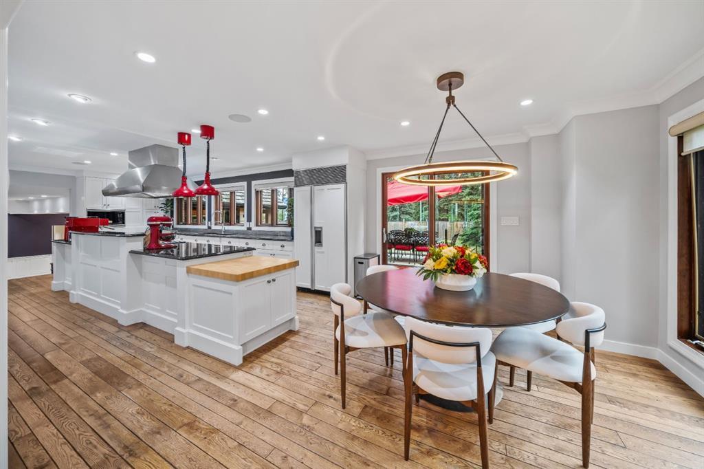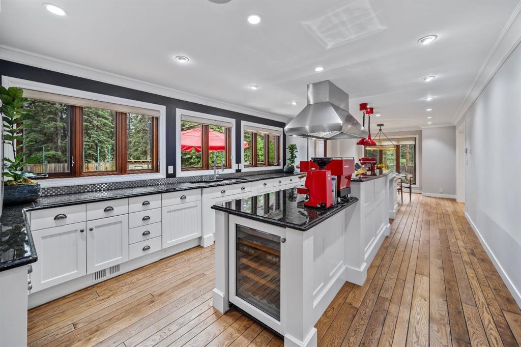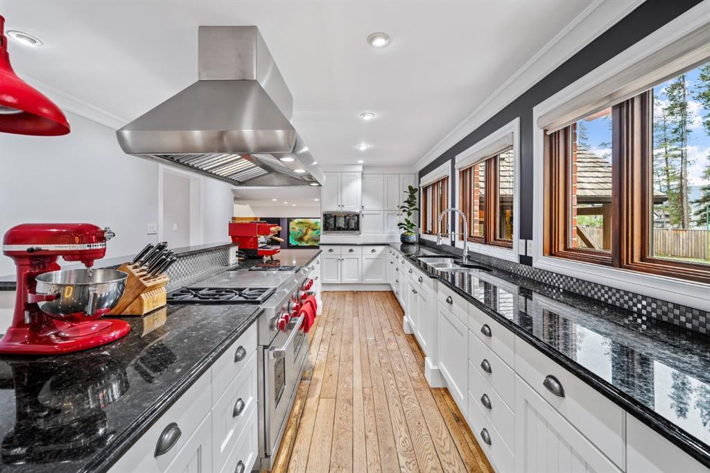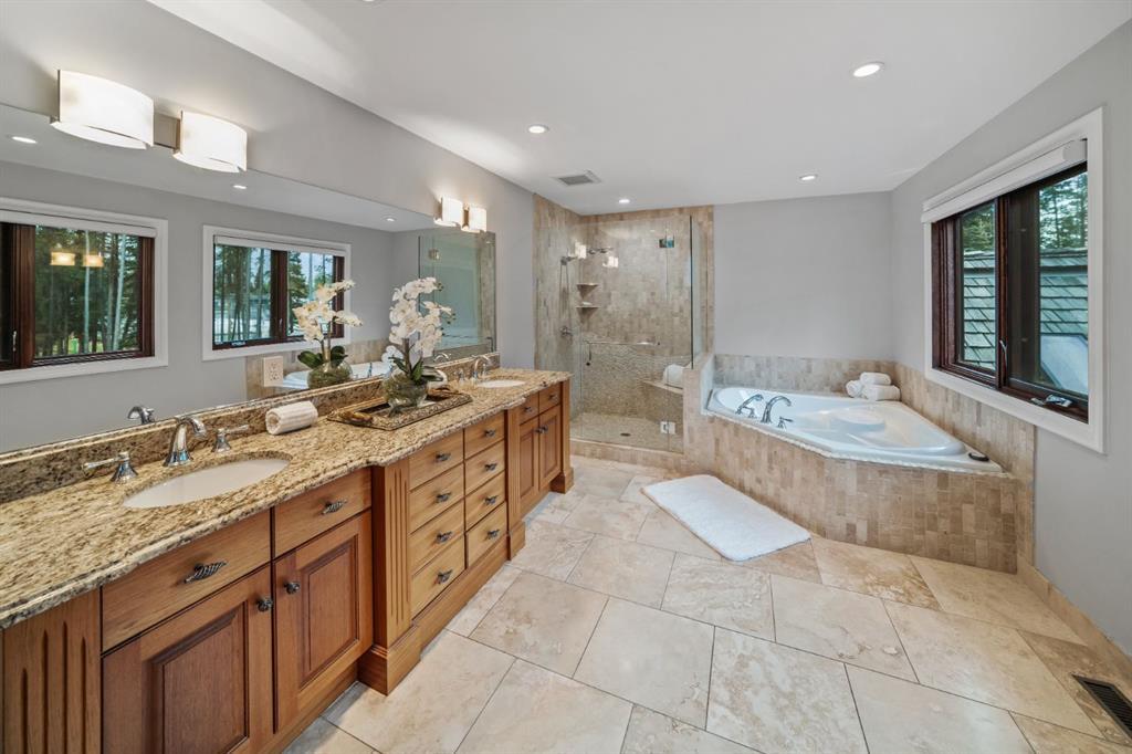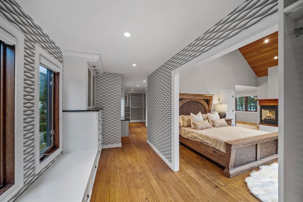 Set within a peaceful and private cul-de-sac, 5 Woodside Lane is a distinguished alpine estate that blends timeless elegance with contemporary refinement. Nestled on an expansive double lot of nearly 19,000 square feet, this property offers rare water and parkland frontage, where a tranquil side channel of the Bow River meanders beside the south-facing backyard and adjacent parkland creates a natural buffer of privacy. The four-bedroom, four-and-a-half-bathroom home unfolds with a sense of considered grandeur. At its heart, the great room features a soaring ceiling with timber accents and a commanding stone fireplace—an architectural centerpiece that evokes warmth and permanence. Expansive windows frame panoramic views of the surrounding peaks, forest, and sky, allowing natural light to spill across the interiors and draw the outdoors in. The interiors are a study in contrast and harmony—where old-world charm meets modern sophistication. Rich wood beams, artisan tilework, and hand-forged details are paired with clean-lined finishes and curated lighting, offering an understated luxury that is both refined and relaxed. Designed for both gracious entertaining and quiet retreat, the home’s layout includes multiple gathering spaces and a thoughtfully appointed kitchen that anchors daily life. The private bedroom suites provide comfort and seclusion, while the home’s lower level offers additional room to unwind or host extended family and guests. Outdoors, a private tennis court and sun-drenched backyard create a lifestyle rarely found in the Rockies—a serene haven within minutes of Canmore’s vibrant downtown and world-class trails. Bordering the eastern edge of Banff National Park, Canmore offers unmatched access to hiking, biking, skiing, and climbing. From this estate, adventure begins at your doorstep. Located in the mature neighbourhoods of Lion’s Park and Larch, 5 Woodside Lane is more than a home—it is a legacy property, offering a singular opportunity to live immersed in nature, design, and enduring quality.