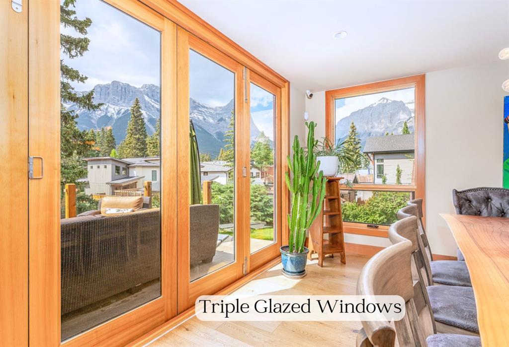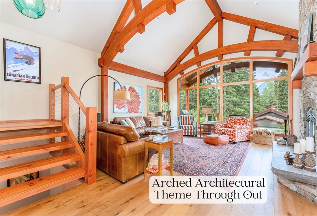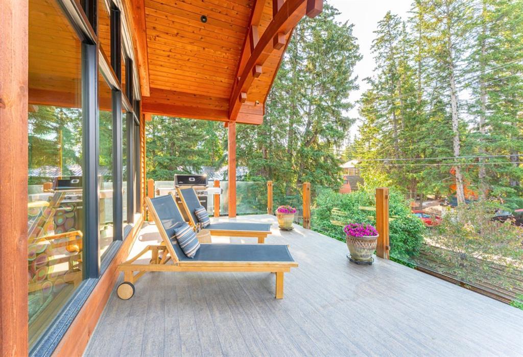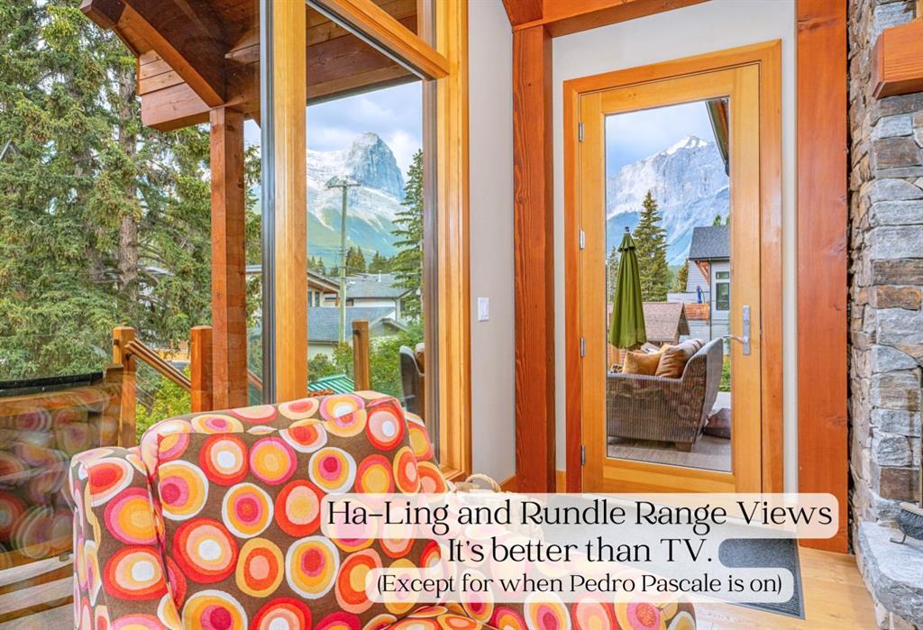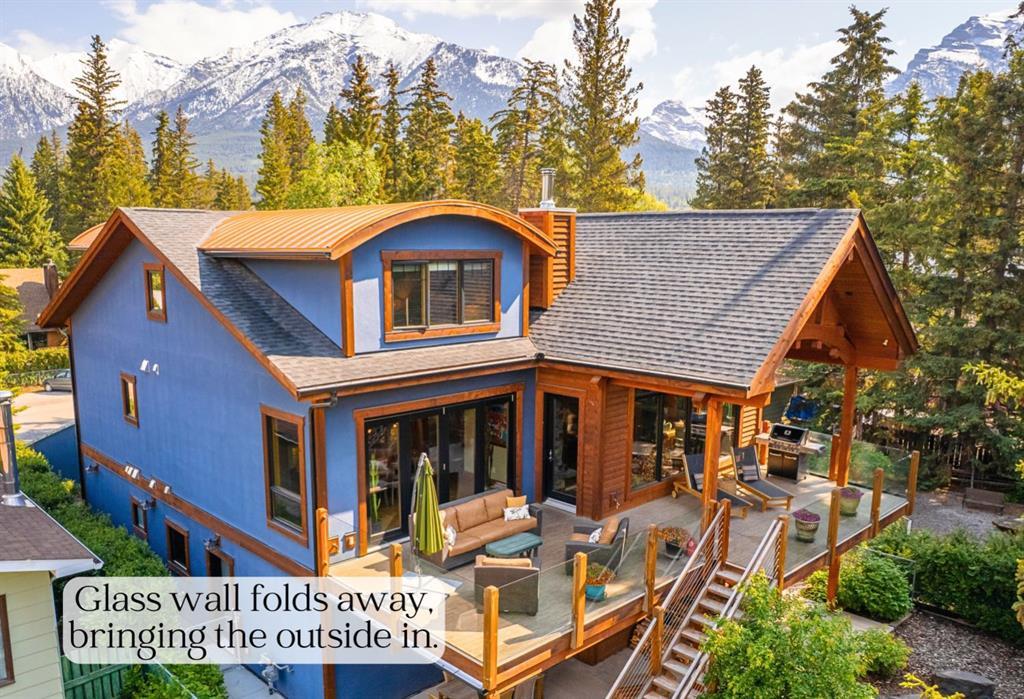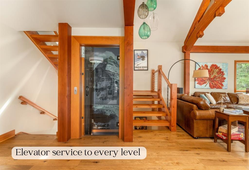 Welcome to this exceptional luxury home in the heart of South Canmore, one of the most sought-after neighbourhoods in town. Designed to be your forever home, this stunning 5-bedroom + office, 5 bathroom residence was designed with timeless architectural style and thoughtful functionality for every stage of life. The curved post and beam architecture and matching rooflines align with the elegant craftsmanship throughout. A bedroom and full ensuite bathroom on the main floor allow for one level living should it ever be needed, while the built in elevator provides effortless access to every floor, ideal for post surgery recovery, limited mobility, or simply bringing in the groceries. At the front of the home, a professional office delivers a private and polished space to meet with clients. The natural gathering place of the home centers around the great room’s floor-to-ceiling wood burning fireplace. Curved post and beam features highlight the vaulted ceilings while framing the famed Three Sisters view. This room leads to spectacular outdoor living. This expansive south facing deck is partially covered for all season enjoyment and partially open for sun soaking, star gazing, and, of course, watching the northern lights. Unobstructed views of Ha Ling completes the setting. The ground floor second living room is flooded with natural light due to high ceilings and a wall of windows, and walks out to a charming fenced yard and firepit. Both mature and younger trees in the backyard creates privacy, while the large front deck captures the afternoon and evening sun. From here, you can watch the other side of the valley with with views of the Cascade and Lady McDonald ranges. In the luxury kitchen, you’ll find high end appliances, premium finishes, and smart design that blends functionality with striking aesthetics. The partially open-concept design allows easy communication and connection with everyone, while ensuring ample room for a generous eating bar, plus a sizeable dining room for when you have everyone over. Offering the enviable inclusion of a bright, walk out, legal suite should you choose to rent out and qualify for the primary resident tax rate before your full-time move to Canmore. A valuable addition to host family members short or longer term, or for a live-in caregiver should it be needed in the future. When a suite is unnecessary, the space is a fully functional and comfortable part of the main home. It's an old cliché, but it's so true. It really is about location! This residence is located on quiet 4th Street in South Canmore, within easy walking distance to downtown, Spring Creek restaurants and amenities, Centennial and Millennium parks, the Bow River, and creeks. Park your car and walk everywhere. Built to last. Designed with heart. Ready to become your family’s legacy. https://youtu.be/ev5eKVHPU5o