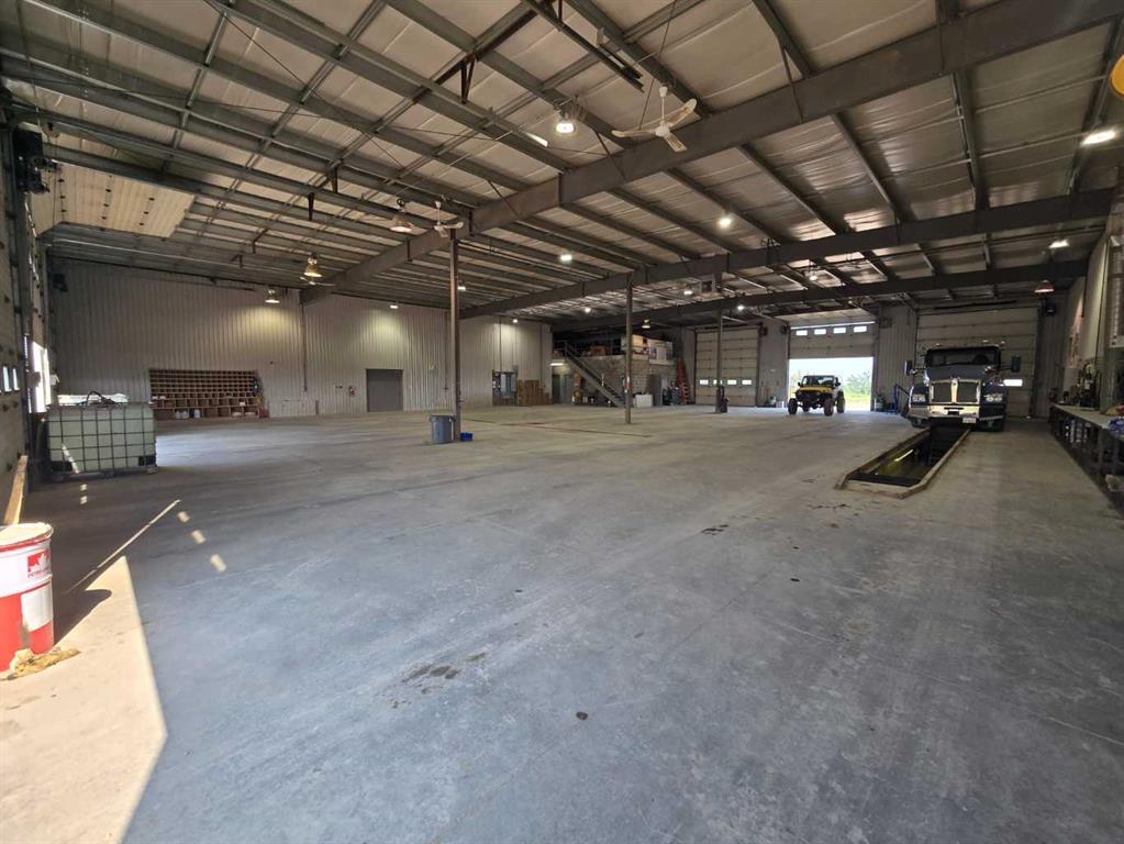 Excellent opportunity to live where you work! Located on 32 acres, this property features both a 12,500 SF industrial shop, as well as a 2,998 SF house. The shop features a 700 SF office space with one office, a lunchroom, and one washroom. The main shop area has a parts room, it's own washroom, a 625 SF storage mezzanine, an oil change trench with collector system, as well as (7) 14' x 16' overhead doors - 3 of which create drive thru bays. There is also a wash bay with (2) 14' x 16' overhead doors that create a 4th drive thru bay, and a separate shop space with (1) 14' x 16' overhead door. Additionally, there is 2,500 SF of cold storage with two overhead doors. The shop has in floor heating throughout and ample yard space. The beautifully maintained house offers 4,300 SF of functional and inviting living space over 3 floors (basement, main floor, and second floor). Designed for comfort and flexibility, it features a front office with built-in shelving, a formal dining room, an open concept kitchen with a breakfast nook, walk-in pantry, and raised breakfast bar, a large family room with a fireplace, a mudroom with washer & dryer and access to a two car garage, as well as one washroom on the main floor. The second floor includes 3 bedrooms, a full 3-piece washroom, and a primary bedroom with a 5-piece en-suite, a walk-in closet, and a sitting area. The basement features a large open family room, a full 3-piece washroom, a secondary living room with space to construct another bedroom, and a furnace room with cold storage. Enjoy the privacy of the property with a large driveway, a front partial wrap-around deck, a large back deck off the main family room, a fire pit, and ample yard space including a fenced pasture for a hobby farm. The property offers excellent access to Highway 2 and is just minutes away from the Town of Innisfail.