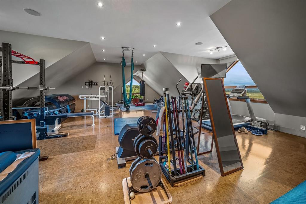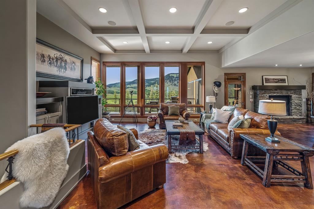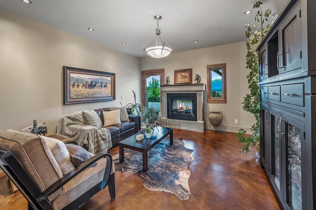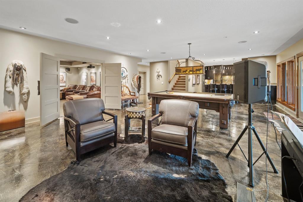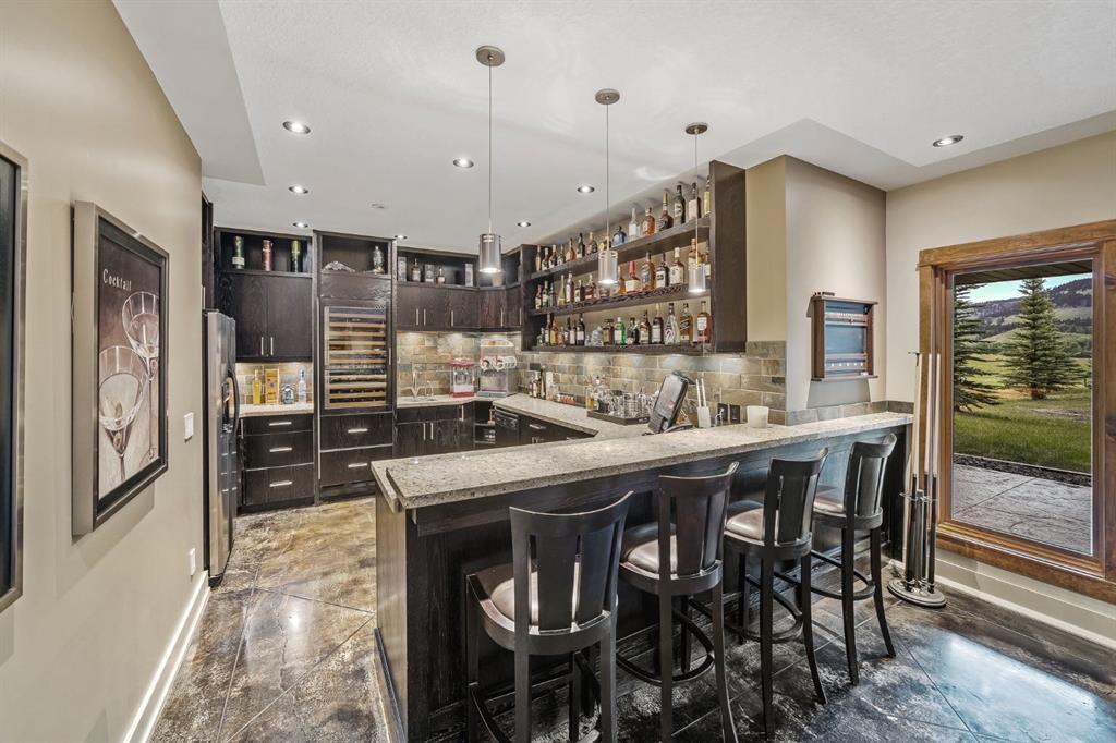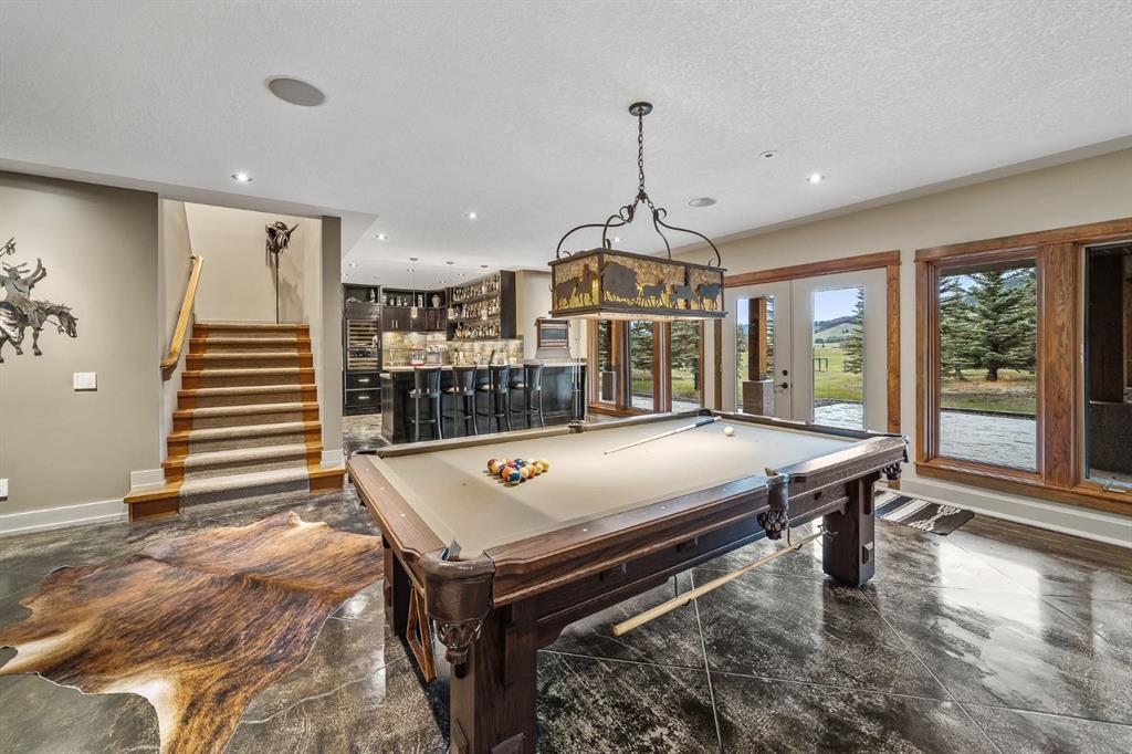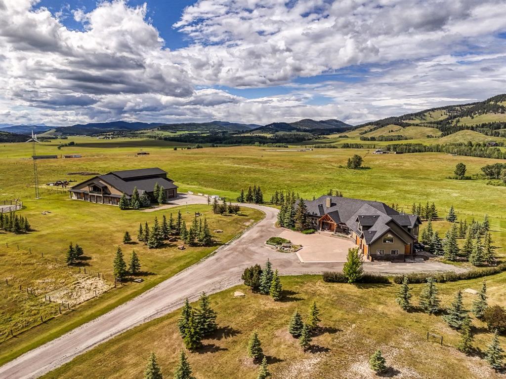 A rare opportunity to own one of Southern Alberta’s most iconic and luxurious rural properties. Set on 63 acres of pristine land against the breathtaking Wildcat Hills, with panoramic, unobstructed views of the Canadian Rockies, Wildcat Views offers an extraordinary lifestyle of serenity, seclusion, and sophisticated country living—just minutes from Cochrane and Ghost Lake. This meticulously designed estate showcases 8766 sqft of luxury living quarters that blends elevated western architecture with modern comfort and timeless craftsmanship. From the moment you arrive, the grand circular driveway, covered entry, and dramatic double-sided stone fireplace set the tone for the level of luxury that defines this residence. Inside, polished concrete floors, soaring ceilings, and expansive windows immerse the home in natural light and endless mountain views. The heart of the home is a chef’s kitchen complete with a massive island, premium appliances, and seamless connection to a covered outdoor living room with Phantom screens, a gas fireplace, and overhead heaters—creating a true indoor-outdoor sanctuary for year-round enjoyment. The primary suite is a secluded retreat, featuring a custom bed, fireplace, spa-inspired ensuite with a steam shower and deep soaker tub, private laundry, and a spacious walk-in closet. At the opposite end of the home, a private guest suite with its own sitting area, bath, and entrance offers comfort and autonomy for extended stays. Thoughtful functionality continues with a tech station, walk-in pantry, oversized mudroom, and laundry zone off the quadruple attached garage. Above the garage, a 1,064 sq. ft. flex space—currently a gym—boasts cork flooring and unobstructed views of the Rocky Mountains. The fully developed walkout level is designed for elevated entertaining, featuring a full bar, games area, theatre with a starlit ceiling, two guest bedrooms, and a third laundry space. A dedicated dog wash and mudroom add practicality, while the cedar-clad indoor pool room is the ultimate in-home spa—complete with swim jets, a recessed hot tub, steam room, shower, and ambient LED lighting. Beyond the main home, the second structure elevates this property into a true luxury compound. It includes a 45’ x 39’ heated workshop, a custom six-stall barn with Dutch doors, and a 78’ x 78’ indoor riding arena with a mezzanine viewing deck. Above it, the bespoke Saloon offers the perfect venue for private gatherings with a fireplace, wet bar, wine fridge, full bath, and stunning arena views. Wildcat Views is more than a home—it’s an irreplaceable estate, designed for those who value privacy, nature, and uncompromising quality. A property of this caliber rarely becomes available. This is your once-in-a-lifetime opportunity to own a generational estate at the doorstep of the Rockies.