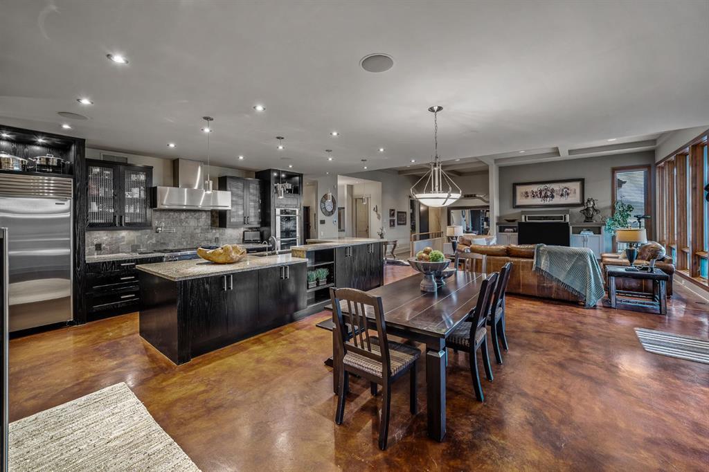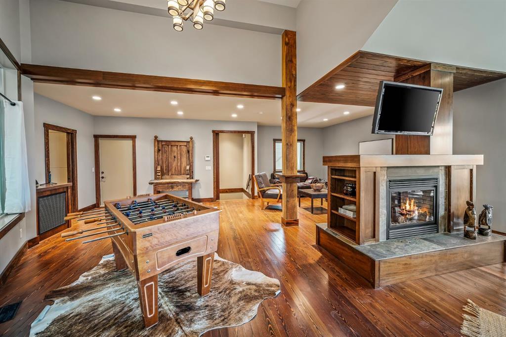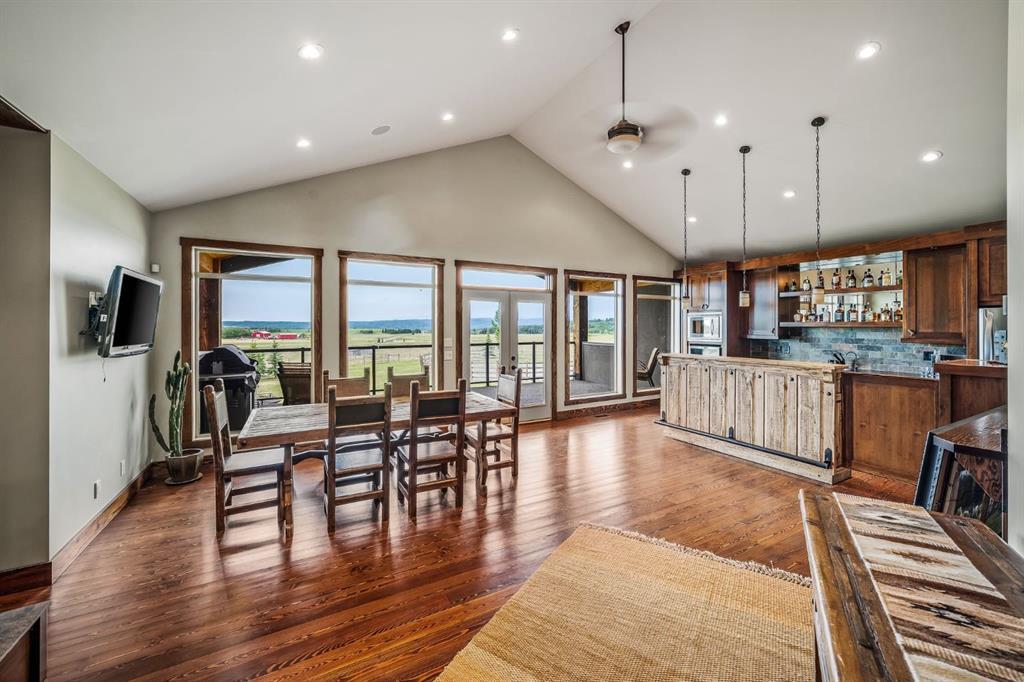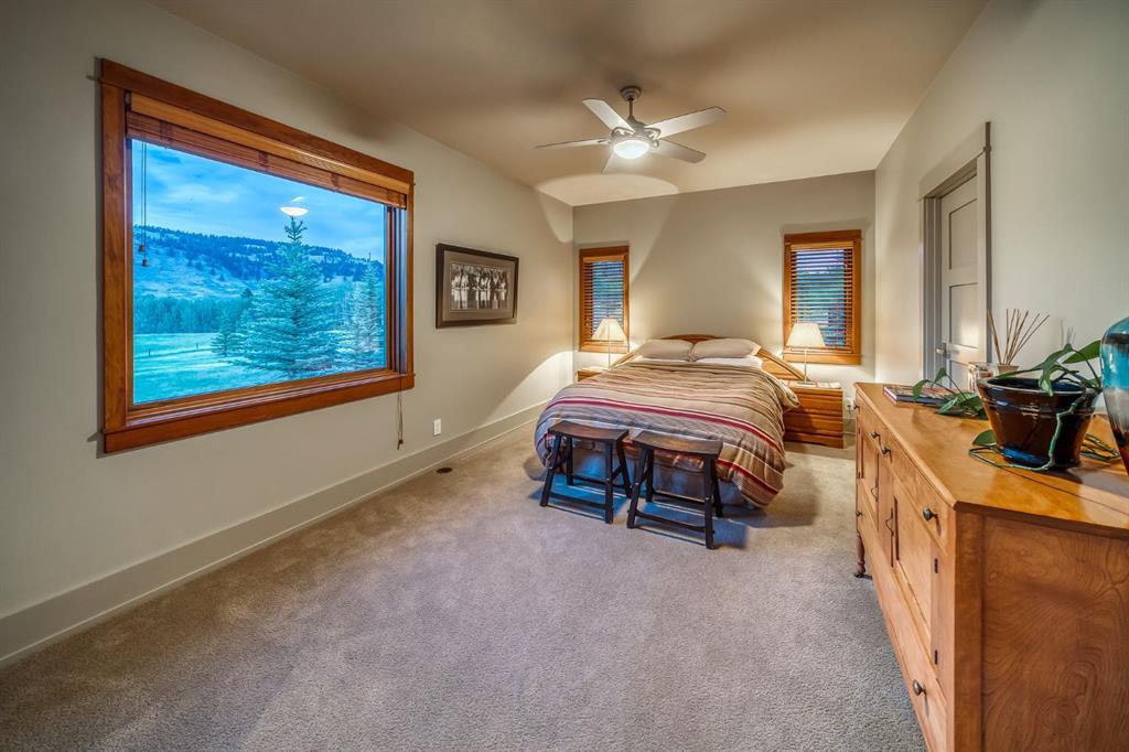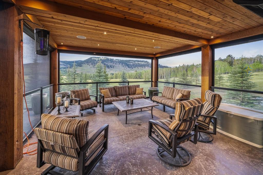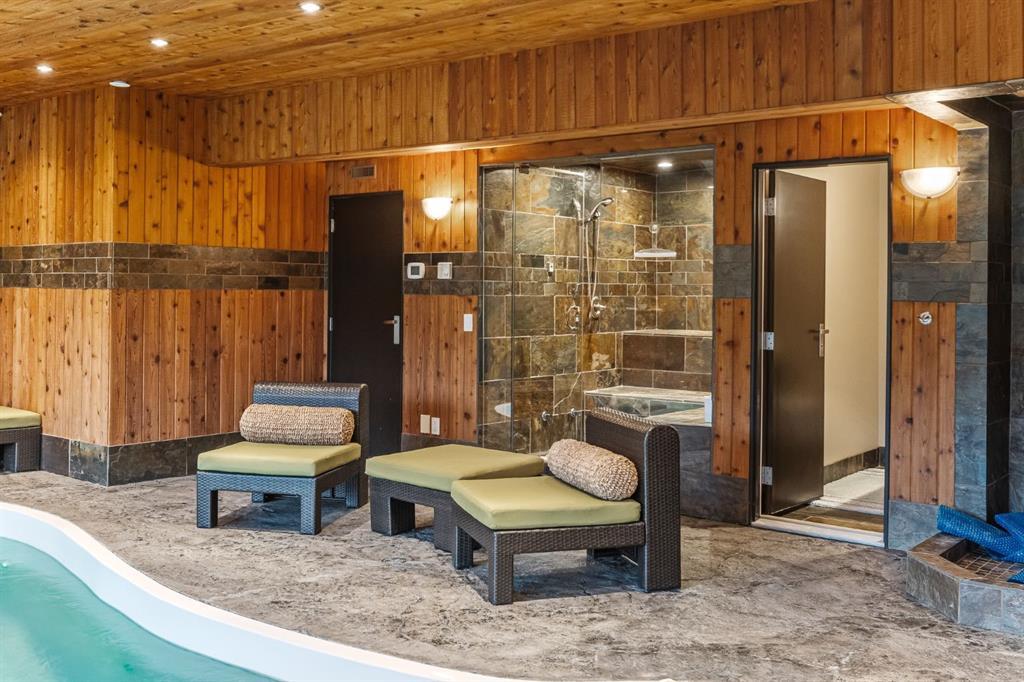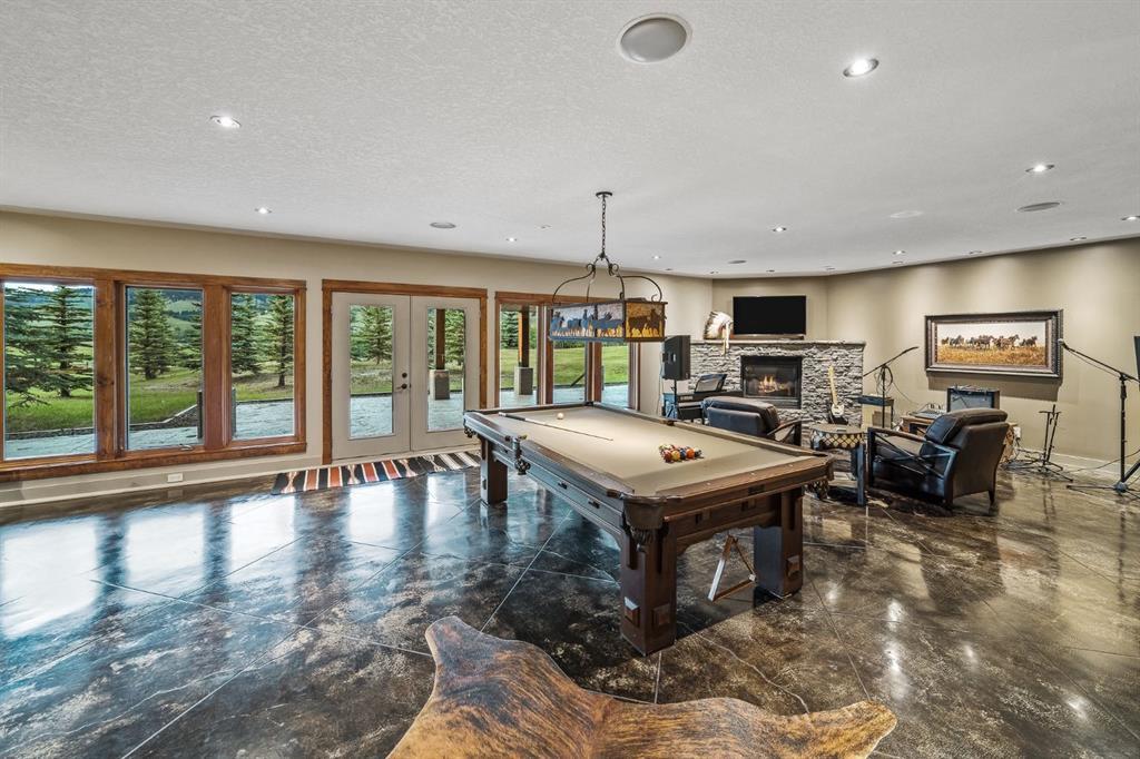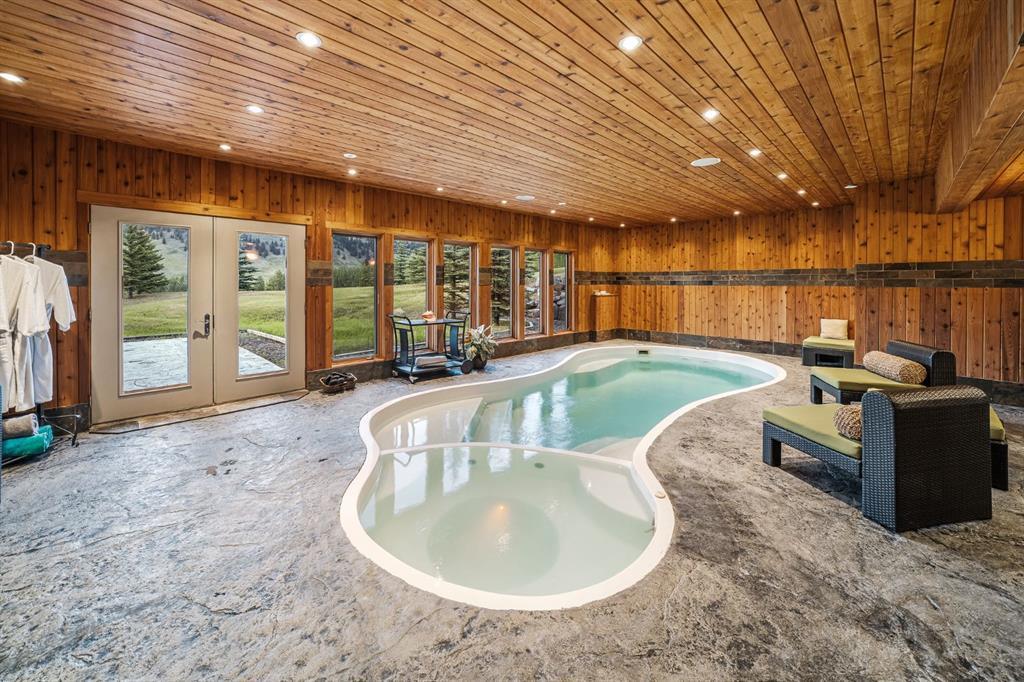 A rare opportunity to own one of Southern Alberta’s most iconic and luxurious rural properties. Set on 63 acres of pristine land against the breathtaking Wildcat Hills, with panoramic, unobstructed views of the Canadian Rockies, Wildcat Views offers an extraordinary lifestyle of serenity, seclusion, and sophisticated country living—just minutes from Cochrane and Ghost Lake. This meticulously designed estate showcases 8766 sqft of luxury living quarters that blends elevated western architecture with modern comfort and timeless craftsmanship. From the moment you arrive, the grand circular driveway, covered entry, and dramatic double-sided stone fireplace set the tone for the level of luxury that defines this residence. Inside, polished concrete floors, soaring ceilings, and expansive windows immerse the home in natural light and endless mountain views. The heart of the home is a chef’s kitchen complete with a massive island, premium appliances, and seamless connection to a covered outdoor living room with Phantom screens, a gas fireplace, and overhead heaters—creating a true indoor-outdoor sanctuary for year-round enjoyment. The primary suite is a secluded retreat, featuring a custom bed, fireplace, spa-inspired ensuite with a steam shower and deep soaker tub, private laundry, and a spacious walk-in closet. At the opposite end of the home, a private guest suite with its own sitting area, bath, and entrance offers comfort and autonomy for extended stays. Thoughtful functionality continues with a tech station, walk-in pantry, oversized mudroom, and laundry zone off the quadruple attached garage. Above the garage, a 1,064 sq. ft. flex space—currently a gym—boasts cork flooring and unobstructed views of the Rocky Mountains. The fully developed walkout level is designed for elevated entertaining, featuring a full bar, games area, theatre with a starlit ceiling, two guest bedrooms, and a third laundry space. A dedicated dog wash and mudroom add practicality, while the cedar-clad indoor pool room is the ultimate in-home spa—complete with swim jets, a recessed hot tub, steam room, shower, and ambient LED lighting. Beyond the main home, the second structure elevates this property into a true luxury compound. It includes a 45’ x 39’ heated workshop, a custom six-stall barn with Dutch doors, and a 78’ x 78’ indoor riding arena with a mezzanine viewing deck. Above it, the bespoke Saloon offers the perfect venue for private gatherings with a fireplace, wet bar, wine fridge, full bath, and stunning arena views. Wildcat Views is more than a home—it’s an irreplaceable estate, designed for those who value privacy, nature, and uncompromising quality. A property of this caliber rarely becomes available. This is your once-in-a-lifetime opportunity to own a generational estate at the doorstep of the Rockies.