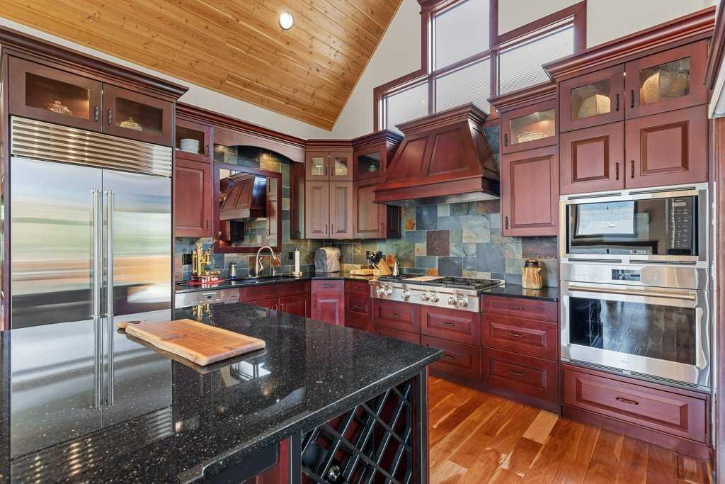 - Bookcases, Built-in Features, Ceiling Fan(s), Central Vacuum, Chandelier, Closet Organizers, Double Vanity, Granite Counters, High Ceilings, Kitchen Island, Open Floorplan, Pantry, Soaking Tub, Steam Room, Storage, Sump Pump(s), Vaulted Ceiling(s)
