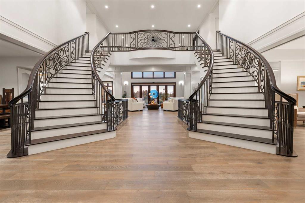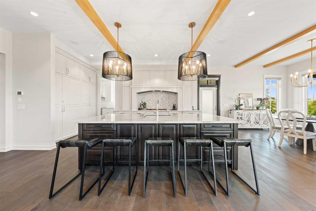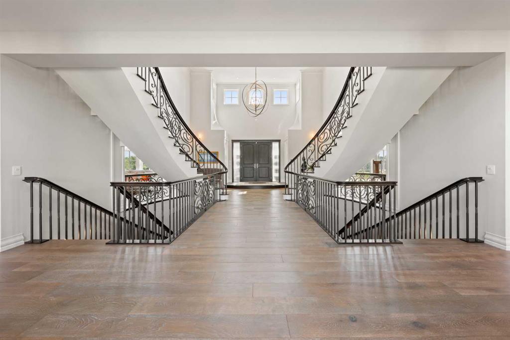 Introducing an exceptional luxury estate at 19 McKendrick Point Calgary—an unparalleled Springbank retreat on 2.3 acres with nearly 12,000 sq ft custom home of lavish living space. Built in 2020 by Your Property Corp, it was thoughtfully designed to support both quiet everyday living and vibrant entertaining—indoors and out. Step into grandeur through a double-height 20-ft foyer with floor-to-ceiling windows, setting the tone for this spectacular home. The main level showcases an open-concept family room with sweeping views and access to the wrap around deck—perfect for entertaining or serene family moments. Inside, you'll find the gourmet kitchen with custom ceiling height cabinetry, quartz island, equipped with Miele side-by-side fridge/freezer with wood paneling, and additional premium Wolf and Bosch appliances. Adjacent is a fully equipped spice kitchen with walk-in pantry and full appliance package. Derive ease and elegance throughout with additional smart and efficient features such as solar-powered blinds, central air conditioning, heated basement floors, ceramic-tiled bathrooms and laundry rooms, and central vacuum system. Your dream primary suite awaits with a gas fireplace, private office, deck access, spa-like ensuite with soaker tub and dual vanities, heated floors, and walk-in closet with custom built-ins and makeup vanity. Additional highlights include 7+1 ensuite bedrooms, a nanny room with full bath, dual mudrooms for functional day-to-day entry from both sides of the garage, laundry rooms on both the main and upper levels, and a rough-in for third laundry in the basement. The upper-level lounge area is perfect for reading, homework, or quite time - with custom built-in cabinets for books or displays. Thoughtful layout works for large families, multi-generational living, or those who simply want room to grow. The fully finished basement offers endless possibilities - with a home theatre, gym with steam room, wet bar, games room, sewing/craft room, and ample storage. Outdoor fireplace creates a cozy space for gatherings year-round. The garage is a dream for car hobbyists, collectors, or busy households - heated seven-car garage with convenient dual-side access. Solar-vented roof and rain-sensor sprinkler system keep things low-maintenance and energy smart. Families will appreciate proximity to excellent schools such as Calgary French & International School (3.6 km), Webber Academy (K-12) - 5.3km, Calgary Academy (Grades 3 - 12) - 7.1km, F.E. Osborne School (6.8 km), Olympic Heights School (K-6) - 6.5km, and several Catholic schools. Evening drives become adventures with nearby recreational options: Canada Olympic Park (WinSport), Calgary Farmer's Market, Bowmont Park and Bow River pathways, restaurants, shoppings, and outdoor escapes are all just minutes away. Quick access to Canmore, Banff, and a mere 15 minutes to Downtown Calgary, residents can effortlessly enjoy premier shopping, diverse dining, and cultural attractions - all year long.