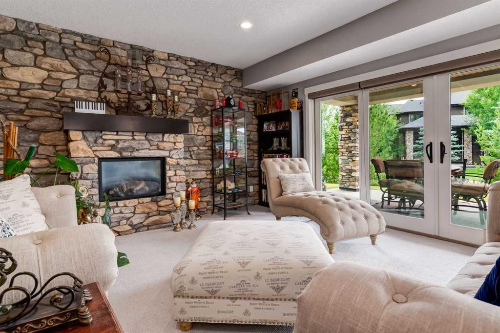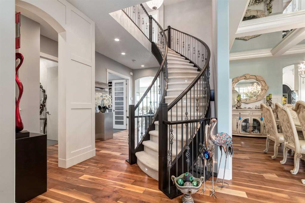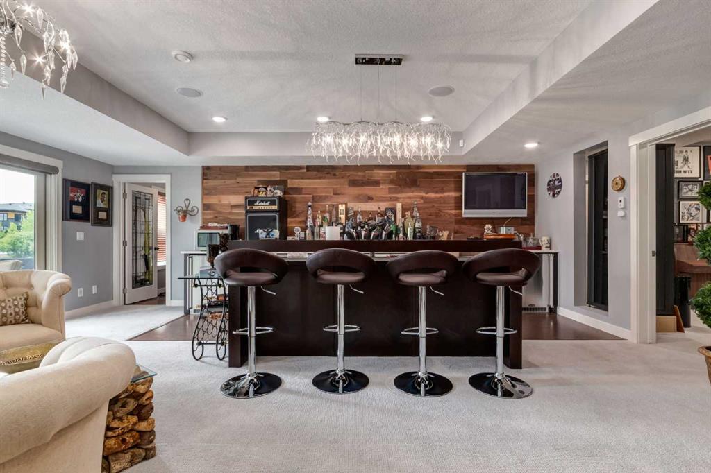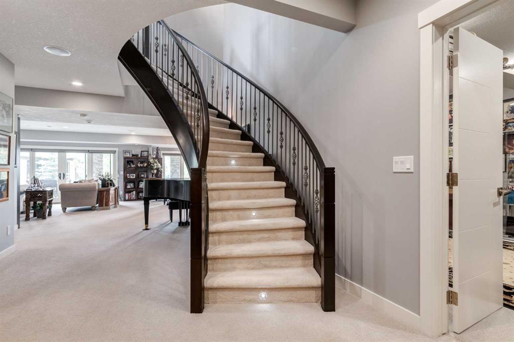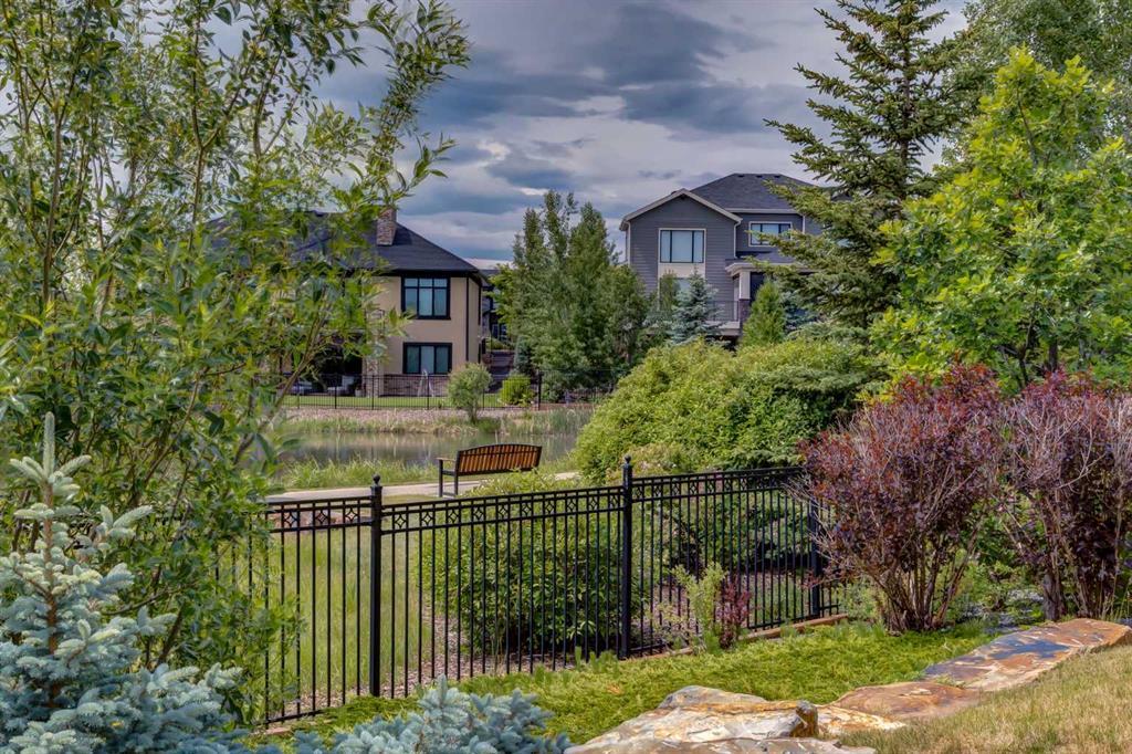 Incredible Watermark Estate that shows 10 out of 10 and ticks off all the boxes of elegant luxury living!! This beautiful property is located at the end of a quiet cul-de-sac on a walkout lot backing onto a pond with incredible mountain views. The main floor welcomes you with a curved staircase off the front foyer separating the main floor den, spacious laundry area, and a formal dining room with custom ceiling details and loads of room for those large family gatherings. Make your way into the chef's dream kitchen with high-end Wolf/Subzero appliance package or utilize the hidden spice kitchen with a pass-through to your covered BBQ and enclosed deck area. Open both your custom Nana-walls off the nook area and family room and enjoy the breeze and views off the back of this estate. Make your way to the upper level and you'll enjoy 3 spacious bedrooms, each with their own walk-in closet and ensuite's, a secret room off one accessory bedroom, perfect for the kid's playroom or a studio and a primary suite you need to see to believe. The primary feels like you're staying at a high-end hotel with a 3-way fireplace, owners lounge, upper deck, a walk-in closet that you need to see to appreciate and an ensuite that boasts a dual vanity, a separate tub and a shower that is straight out of a magazine. The walkout out level is well appointed with in-floor heat, a bar straight out of an English pub, a separate studio area, theater room, and spa room complete with hot tub, sauna and a full bath or it could be a 4th bedroom if needed. The finishing details in this home are next level, the location is on one of the most desired lots in Watermark and the pond and mountains views from the southwest-facing backyard make this property top of class when looking for luxury living in the award-winning community of Watermark. Over 6300 sq ft of high-end luxury living make this estate a MUST SEE!!