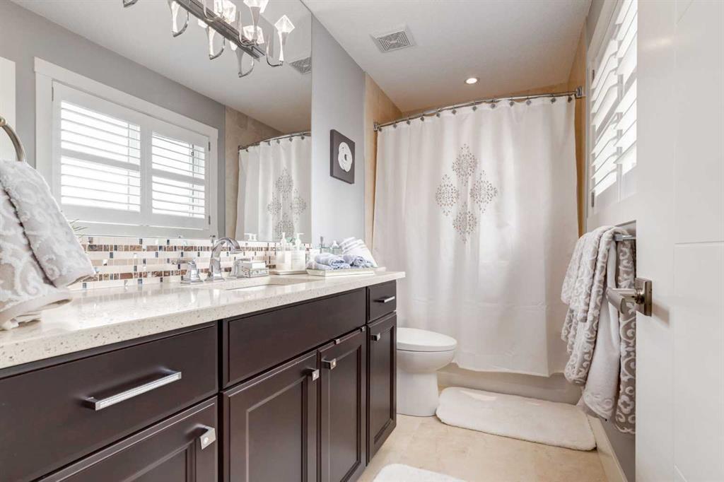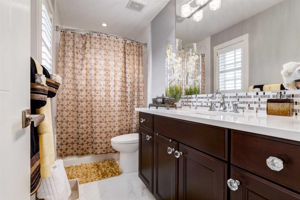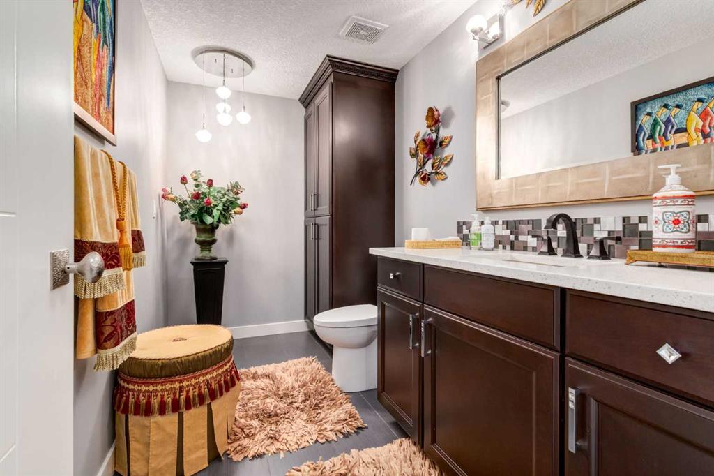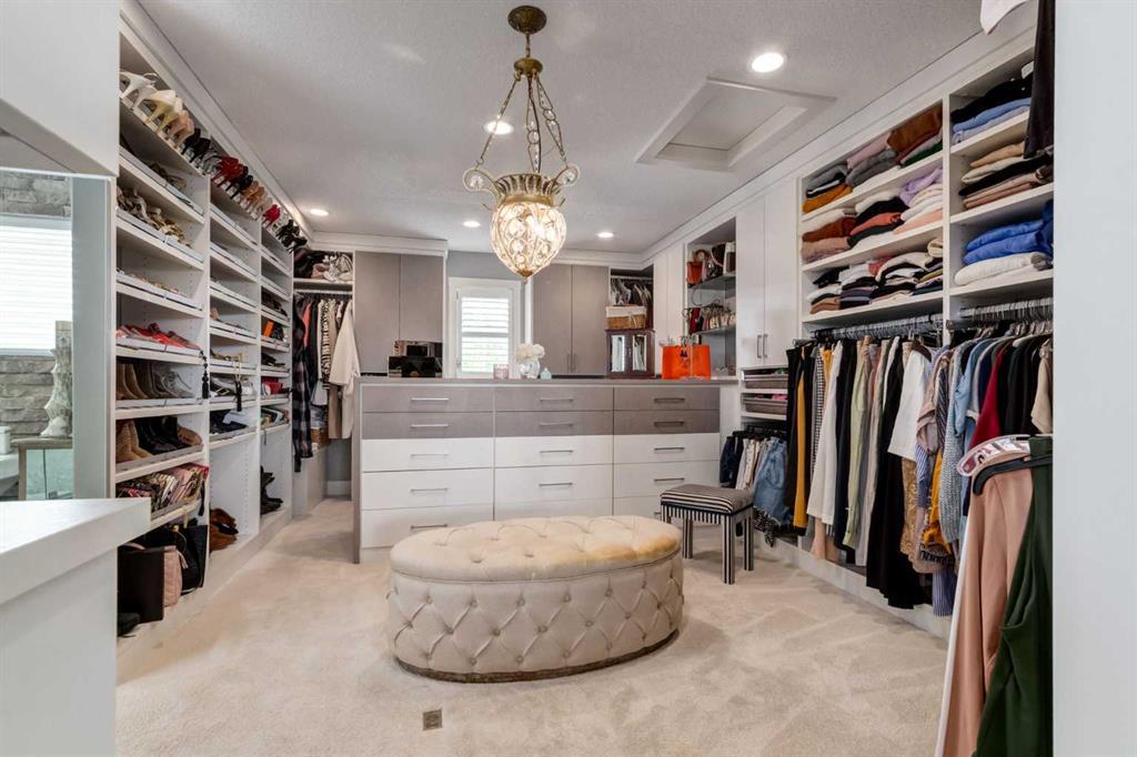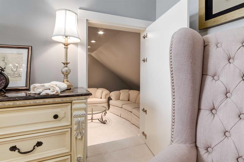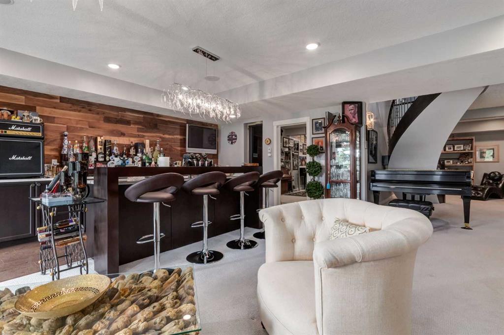 Incredible Watermark Estate that shows 10 out of 10 and ticks off all the boxes of elegant luxury living!! This beautiful property is located at the end of a quiet cul-de-sac on a walkout lot backing onto a pond with incredible mountain views. The main floor welcomes you with a curved staircase off the front foyer separating the main floor den, spacious laundry area, and a formal dining room with custom ceiling details and loads of room for those large family gatherings. Make your way into the chef's dream kitchen with high-end Wolf/Subzero appliance package or utilize the hidden spice kitchen with a pass-through to your covered BBQ and enclosed deck area. Open both your custom Nana-walls off the nook area and family room and enjoy the breeze and views off the back of this estate. Make your way to the upper level and you'll enjoy 3 spacious bedrooms, each with their own walk-in closet and ensuite's, a secret room off one accessory bedroom, perfect for the kid's playroom or a studio and a primary suite you need to see to believe. The primary feels like you're staying at a high-end hotel with a 3-way fireplace, owners lounge, upper deck, a walk-in closet that you need to see to appreciate and an ensuite that boasts a dual vanity, a separate tub and a shower that is straight out of a magazine. The walkout out level is well appointed with in-floor heat, a bar straight out of an English pub, a separate studio area, theater room, and spa room complete with hot tub, sauna and a full bath or it could be a 4th bedroom if needed. The finishing details in this home are next level, the location is on one of the most desired lots in Watermark and the pond and mountains views from the southwest-facing backyard make this property top of class when looking for luxury living in the award-winning community of Watermark. Over 6300 sq ft of high-end luxury living make this estate a MUST SEE!!