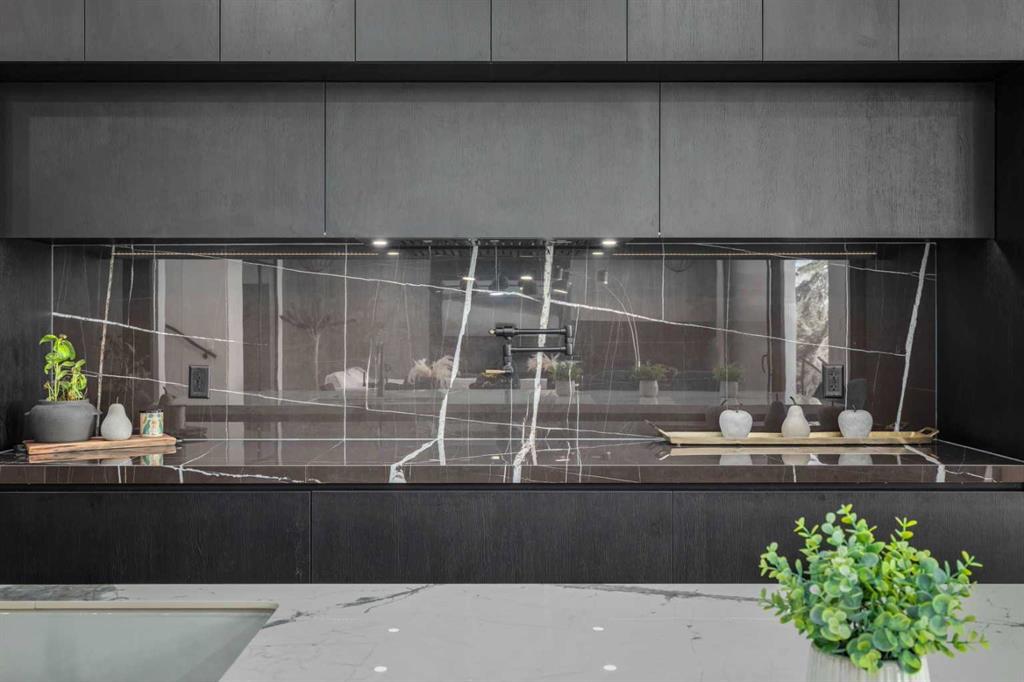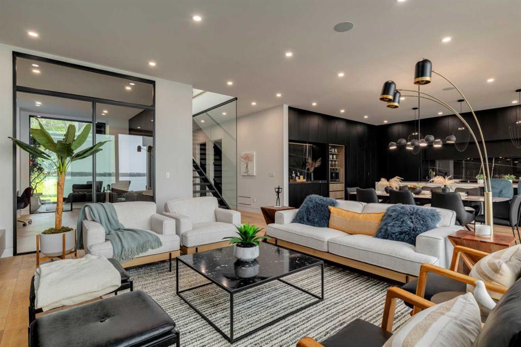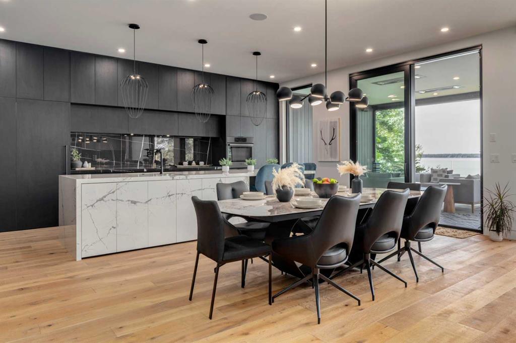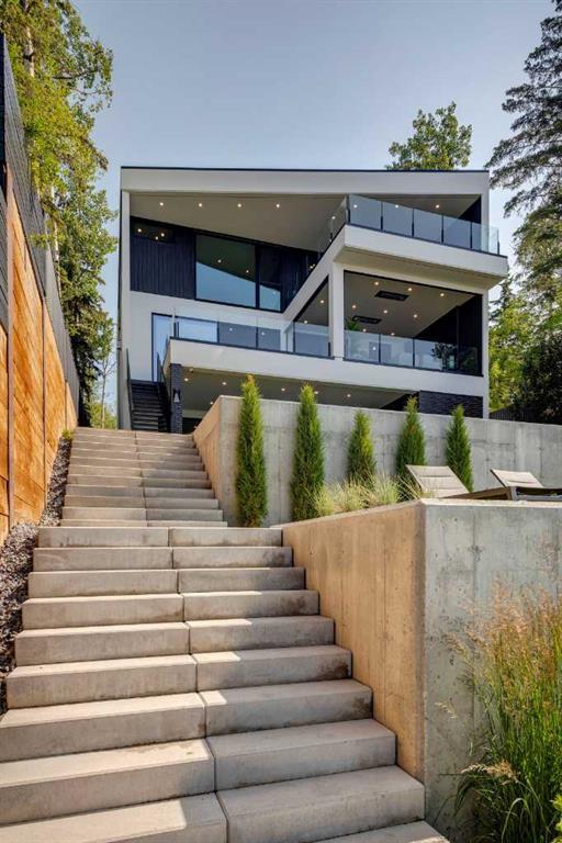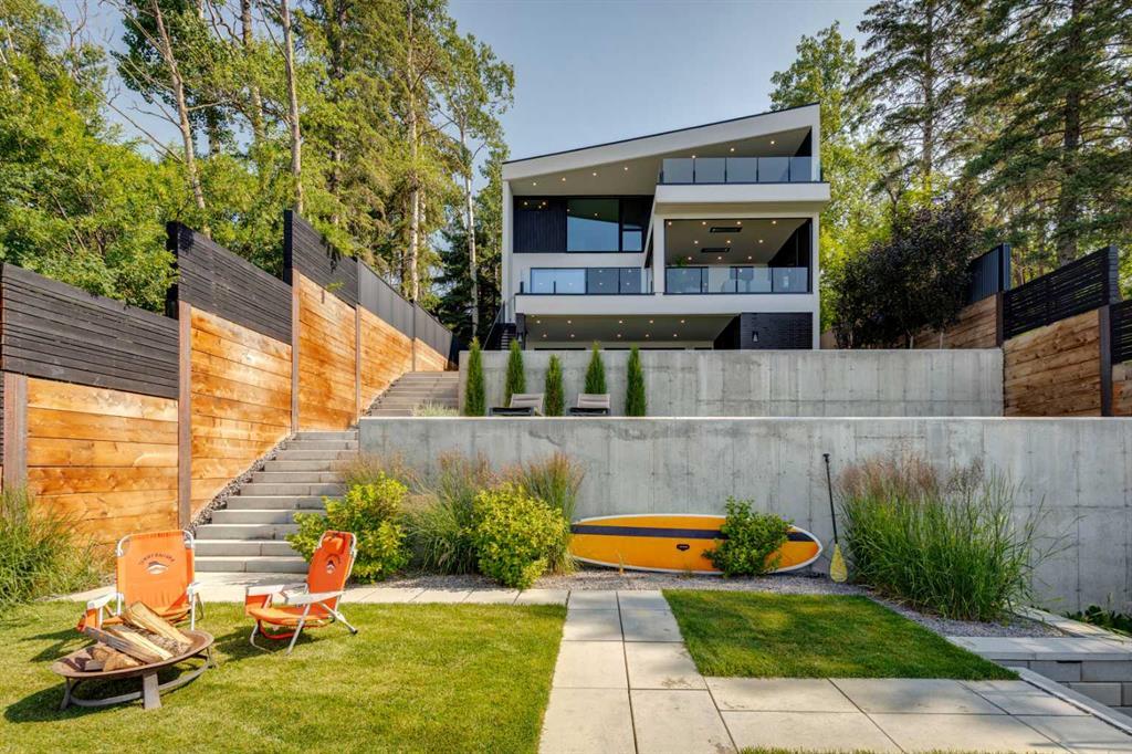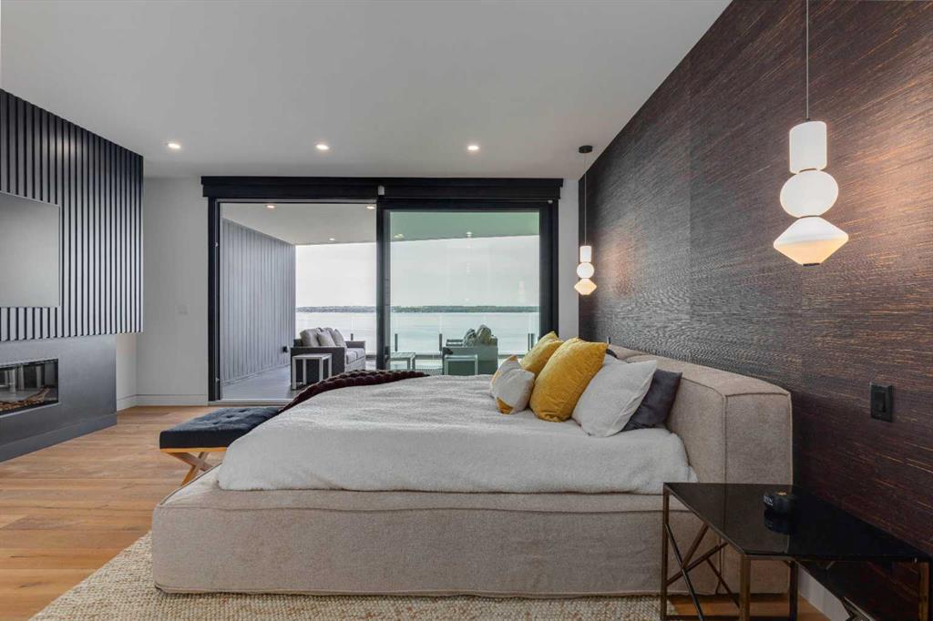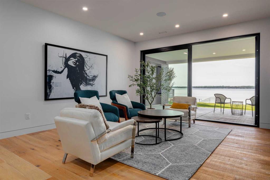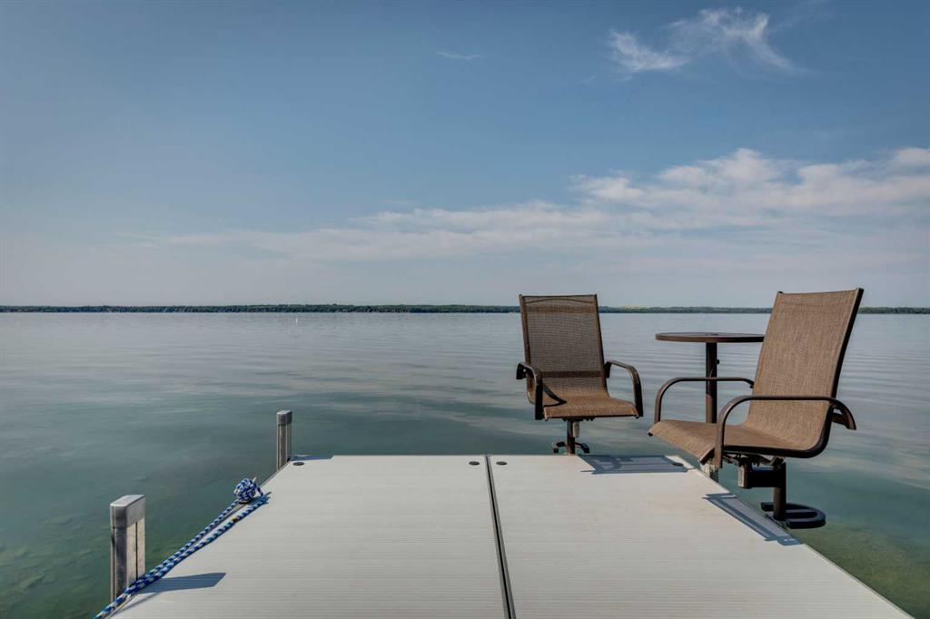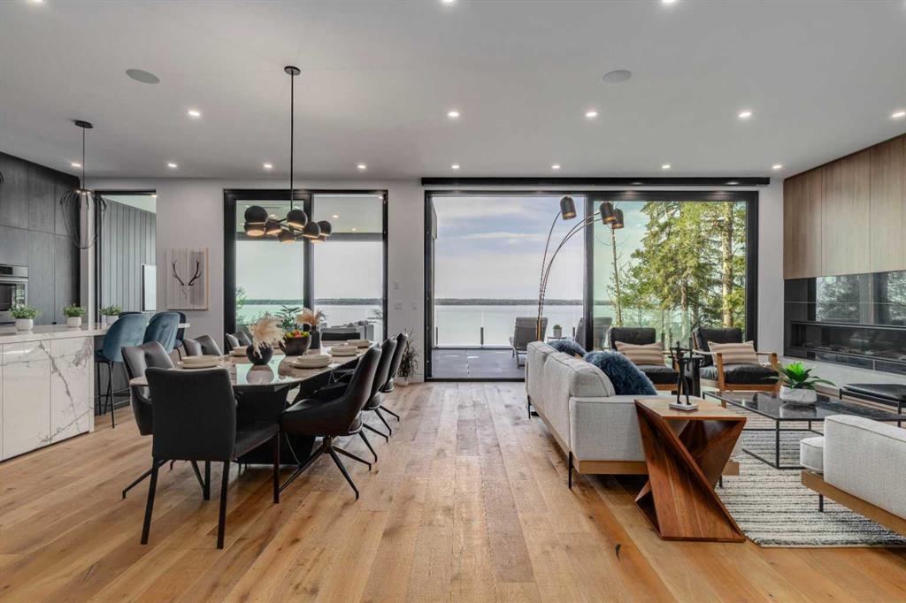 Welcome to The Cliffs — a breathtaking custom lakefront residence built by Square Structures, recipient of the Central Alberta Building Association’s Award of Excellence. This architectural masterpiece offers a seamless blend of luxury, function, and connection to nature, with panoramic south-facing lake views from every level. Designed with wall-to-wall, floor-to-ceiling triple-pane windows, the home is flooded with natural light and offers uninterrupted views of the water throughout. Step outside to enjoy 1,750 sq ft of outdoor decking, including a screened-in living space with gas fireplace, ceiling heaters and TV — the perfect extension of your indoor living. The striking exterior is finished with a premium combination of EIFS stucco, King Klinker brick, Cham Clad, and Lux Architectural panels, setting the tone for the elevated design found within. Enter through a 4’x8’ custom front door into an open-concept main floor featuring 8” wide-plank engineered white oak flooring, a spacious living area, and a fully custom kitchen complete with porcelain countertops, high-end appliances, a built-in ice maker, built-in coffee machine, induction cooktop, and a walk-through pantry housing a full-size fridge and freezer. The main floor also includes a 200 sq ft home office and seamless access to the outdoor living areas. The primary suite is a true retreat, featuring private lake-facing balcony access, a gas fireplace, and a spa-inspired ensuite with dual vanities, walk-through shower, and custom-tiled walls. Additional features include: personal GYM with wraparound balcony, WALK-OUT basement with lake views, family room, THEATRE room (100” screen & 5.1 surround sound) In-floor heating, ELECTRIC power blinds on every level, PROFESSIONALLY landscaped yard with tiered access to the water, underground irrigation, privacy fencing, and landscape lighting This is a rare opportunity to own a meticulously crafted luxury home with direct lake access and premium finishes throughout. The Cliffs is more than a home — it’s a lifestyle.