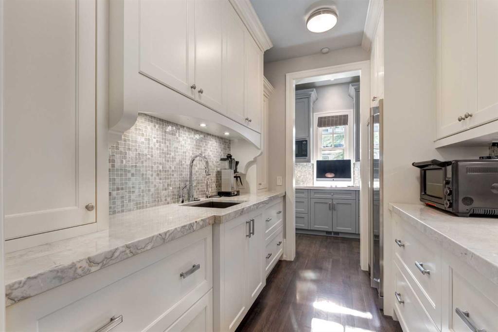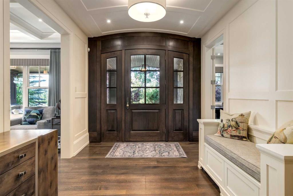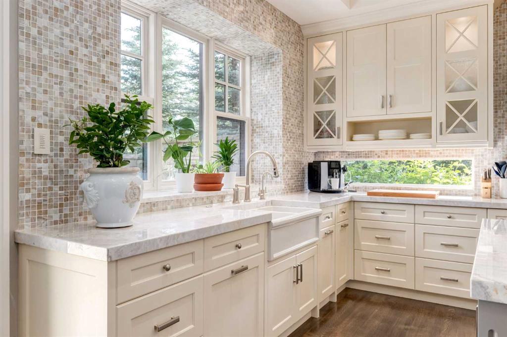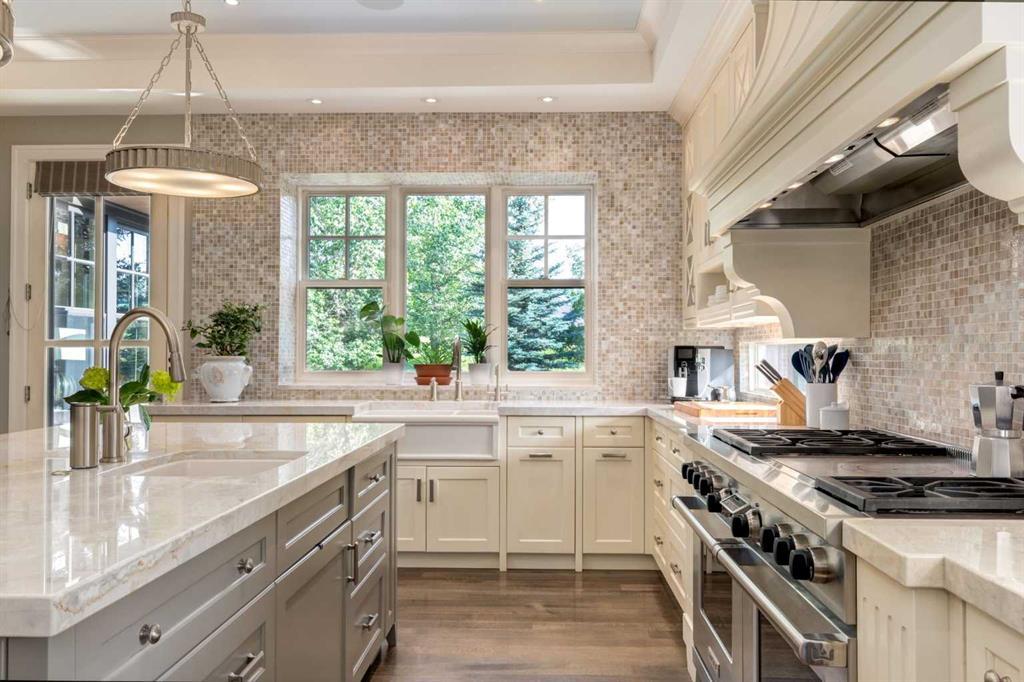 Welcome to this stately designer family home located in the exclusive gated community of Mackenas Country Estates. This luxury family home boasts nearly 7,000 square feet of developed living space. The exterior architecture has a classic timeless appeal with full bed natural stone detailing, dormer accents, solid concrete verandas and a mix of the highest quality of building materials from copper eavestroughs to wood soffits to vertical sash windows. Features include six bedrooms, an oversized, fully custom quadruple garage, an incredible home office, a full bar with a custom wine room, a state-of-the-art electronics Smart-Home system, a walk-through butlers pantry and a glorious sitting room with three sides of windows overlooking the gigantic backyard. Towering tray ceilings give this already large home an even grander feel and designer touches like board and baton wall detailing, eight-foot doors, exquisite millwork, eleven-inch baseboards, crown molding, custom hardware, spectacular marble tile designs, stunning designer lighting, and incredible outdoor living spaces boast the quality expected in a ROCKWOOD CUSTOM HOME. Oak hardwood floors, in-floor radiant heat in the lower level and garage, top of the line gas fireplaces and a Wolf and Sub-Zero appliance package add the outstanding extras. This home must be seen to experience the impeccable craftsmanship, pristine millwork detailing and magazine-quality interior design. Backing onto mature evergreen trees, this .74-acre lot has incredible landscaping and truly feels like living in the country while only being a few minutes outside the city limits.