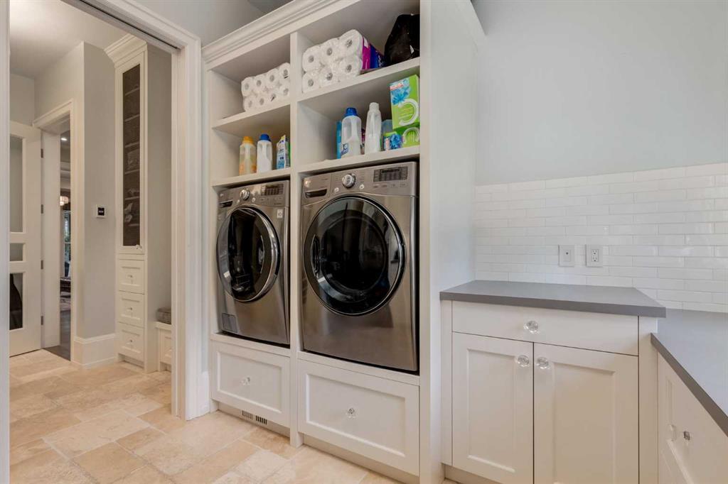- Dishwasher, Dryer, Garburator, Microwave, Range Hood, Washer, Window Coverings, Central Air Conditioner, Bar Fridge, Built-In Refrigerator, Built-In Freezer, Double Oven, Garage Control(s), Gas Range, Humidifier, Wine Refrigerator