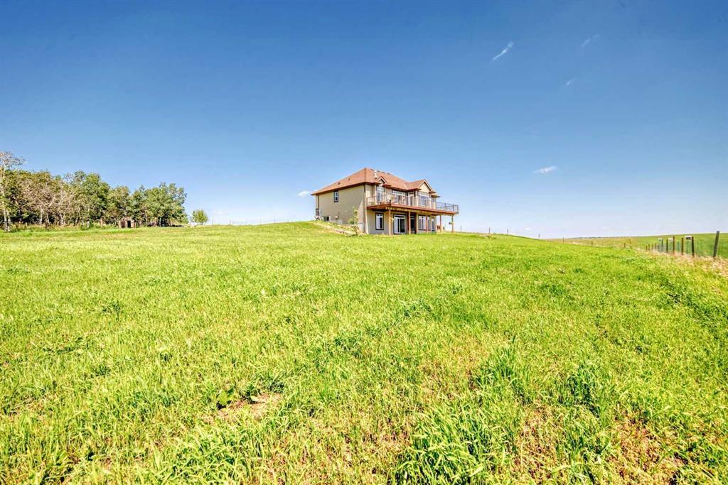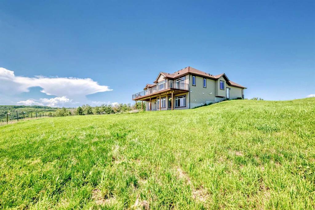 This beautiful 50-acre parcel is perched just outside Calgary’s city limits, offering panoramic views of the downtown skyline and the foothills from pretty much every corner of the land. With over 3200 sqft of developed living space, this 5 bedroom walk-out bungalow (built in 2016) has views that are as stunning from the main floor 600+ sqft deck, as they are from the walk-out lower-levels oversized windows. The heart of the home is the kitchen with rich, espresso-stained cabinetry, sleek granite counters, a massive island for prep or casual dining. The kitchen connects to a bright dining area, living room and large outdoor deck. The main floor has the primary bedroom—attached ensuite as well as two additional bedrooms, additional full bath and laundry room. The lower level is an open plan with 9’ ceilings and an expansive rec room, two additional bedrooms, full bathroom with dual vanities and mechanical room. This property is ideal for an equestrian enthusiast, future development or investment. The gentle sloping land makes it ideal for multiple walk-out sites. Facing the Ann and Sandy Cross Conservation area and located just 2.5 km from Calgary city limits it offers the perfect balance of country living and proximity to city amenities. Red Deer Lake School is just 7 minutes away. With Costco Buffalo Run 12 minutes from your door, but who's counting. With two strong wells (both pumping over 12 gpm), multiple access points including a southeast road allowance, this is a property that balances freedom with function. So if you're looking for space to roam and room to grow—with city life still in reach—this might just be your perfect match.