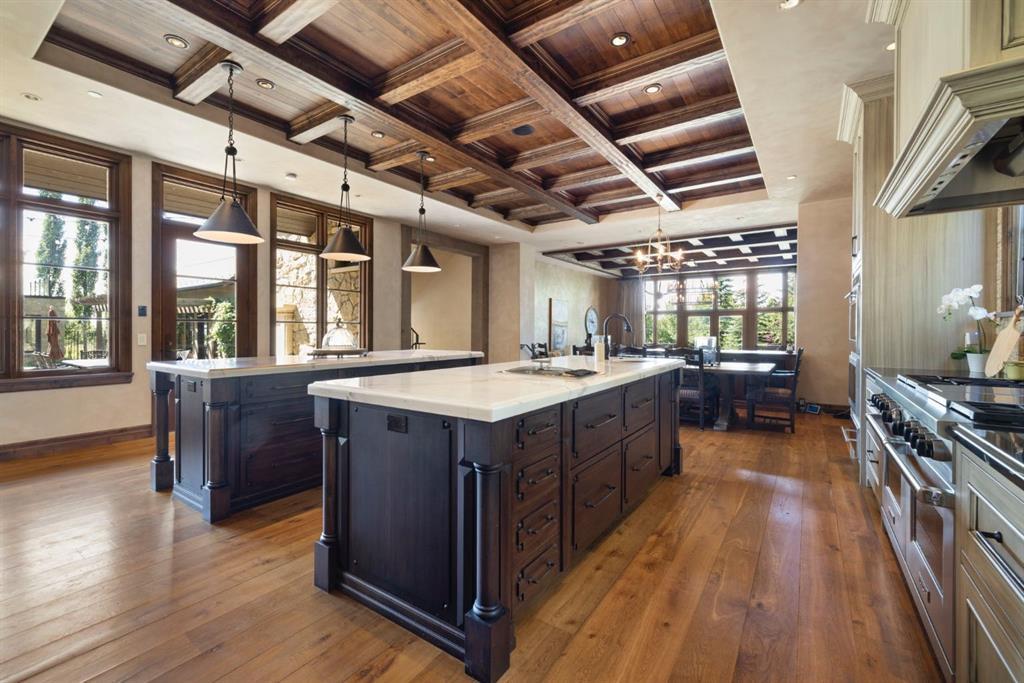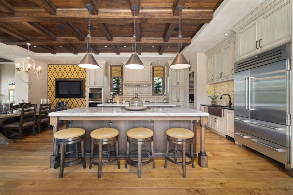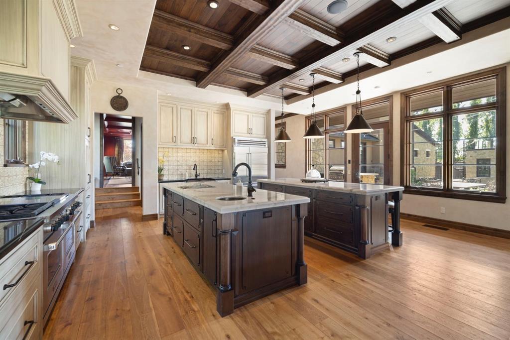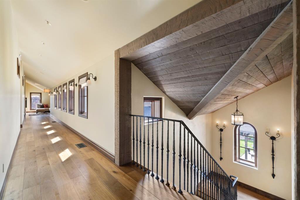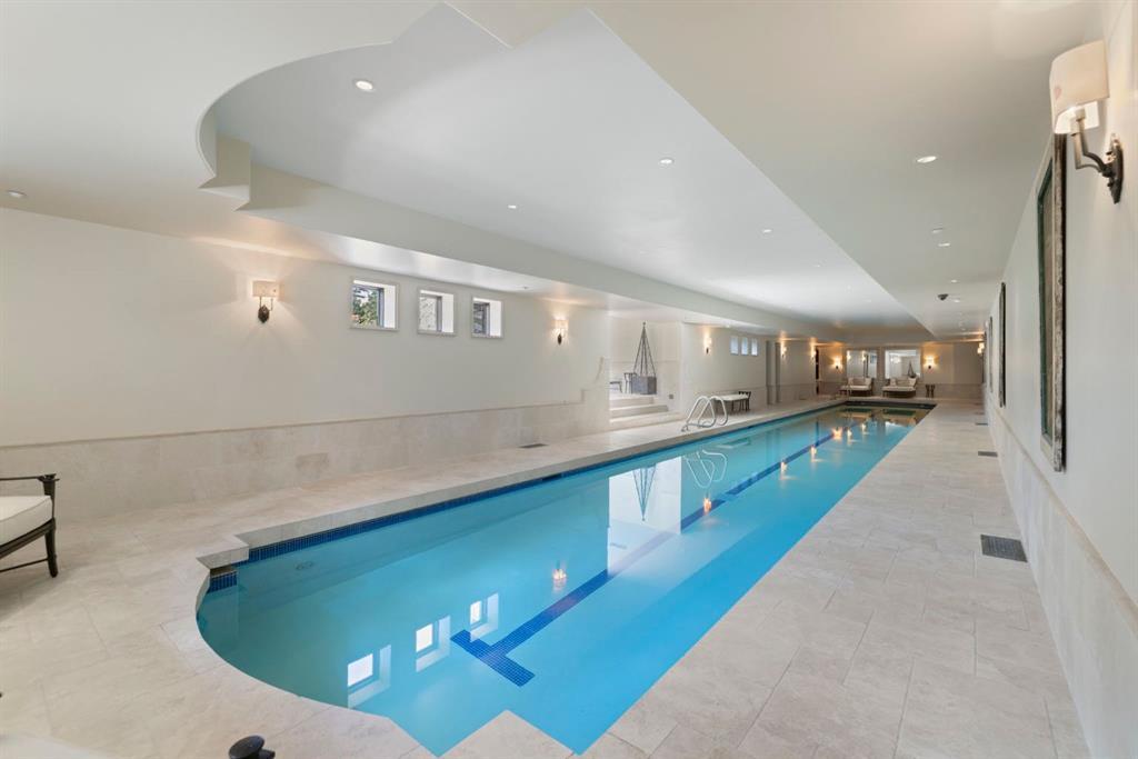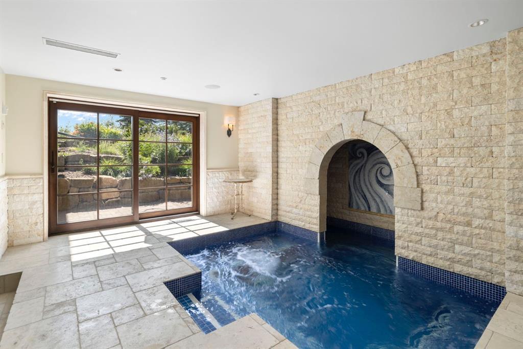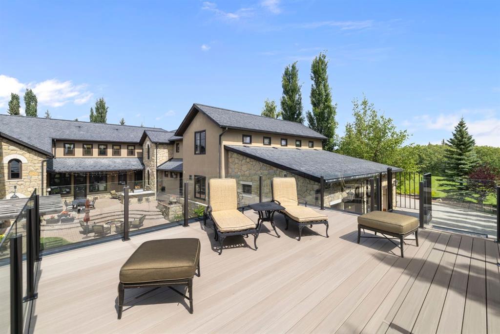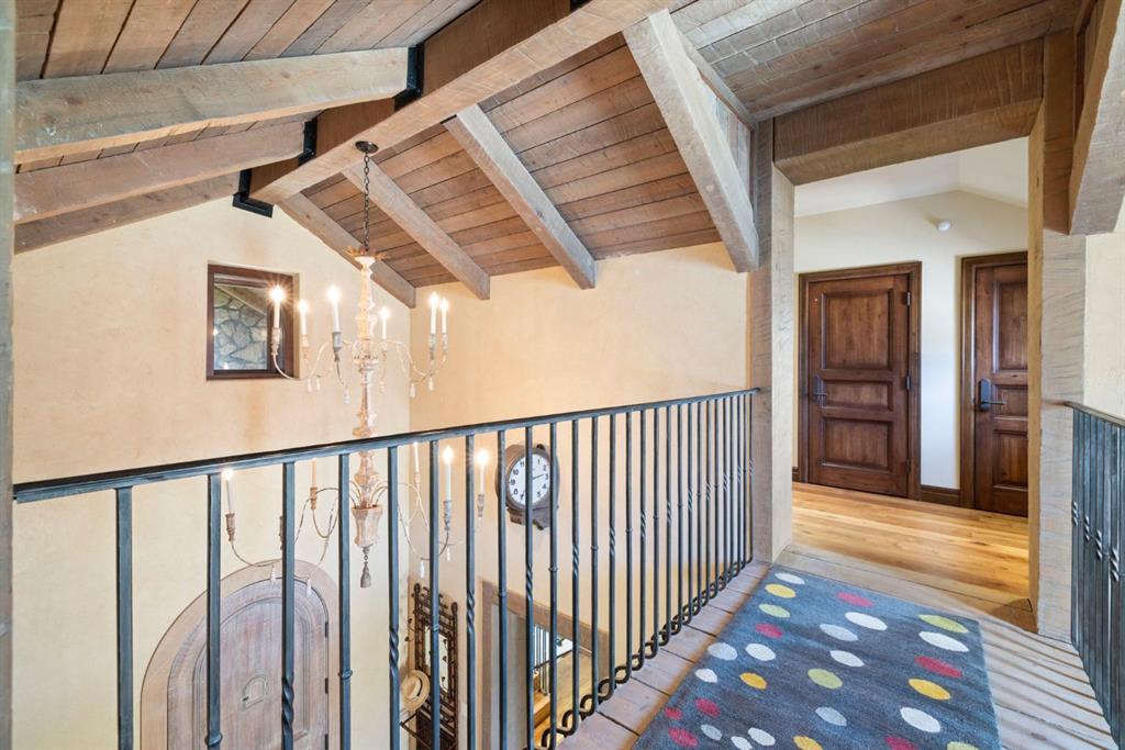 Welcome to 209 Pinnacle Ridge, an exceptional Tuscan inspired estate set on two acres in the foothills with sweeping views of the Rocky Mountains and just minutes from Calgary’s finest amenities. With more than 16,000 square feet of living space, this villa combines timeless European charm with modern luxury in every detail. The exterior showcases stonework, hand sawn timber beams, industrial steel brackets, and an oversized custom entry door. Inside, arched doorways, barrel vaulted ceilings, and perfectly aligned sightlines frame picturesque views throughout. The grand foyer with its soaring ceiling and bridge walkway leads to a formal lounge with paneled walls, coffered ceilings, and a wood burning fireplace. At the heart of the home, a gourmet kitchen with slab marble islands and a full suite of commercial grade appliances opens to the central courtyard, a private gathering space with built in BBQ, wall fountain, and pergola topped brick patio. Just beyond, the family room features a travertine mantled fireplace and French doors to the west lawn. The lower level is designed for both leisure and entertainment, offering a 25-meter lap pool, spa inspired hot tub alcove, walkout patio framed by sandstone boulders, a private theatre with professional grade audio visual, a games room with fabric lined walls, and a brick barrel vaulted wine cellar. The private primary wing showcases sweeping 180 degree mountain views and a luxurious ensuite. The upper level, accessed by dual staircases or elevator, offers five children’s bedrooms, a gym, and recreation spaces. Completing the home is a six car garage, extensive storage, a sport court, and professionally landscaped grounds. This estate has been featured in the National Post and Best Home Alberta, showcased in the award-winning series Fargo, and even served as Leonardo DiCaprio’s residence during the filming of The Revenant. It is a rare combination of artisanal craftsmanship, imported and local materials, and timeless architectural design. All within 10 minutes of Springbank Airport, 15 minutes of downtown Calgary, 40 minutes to Banff, and close to Calgary’s top private schools.