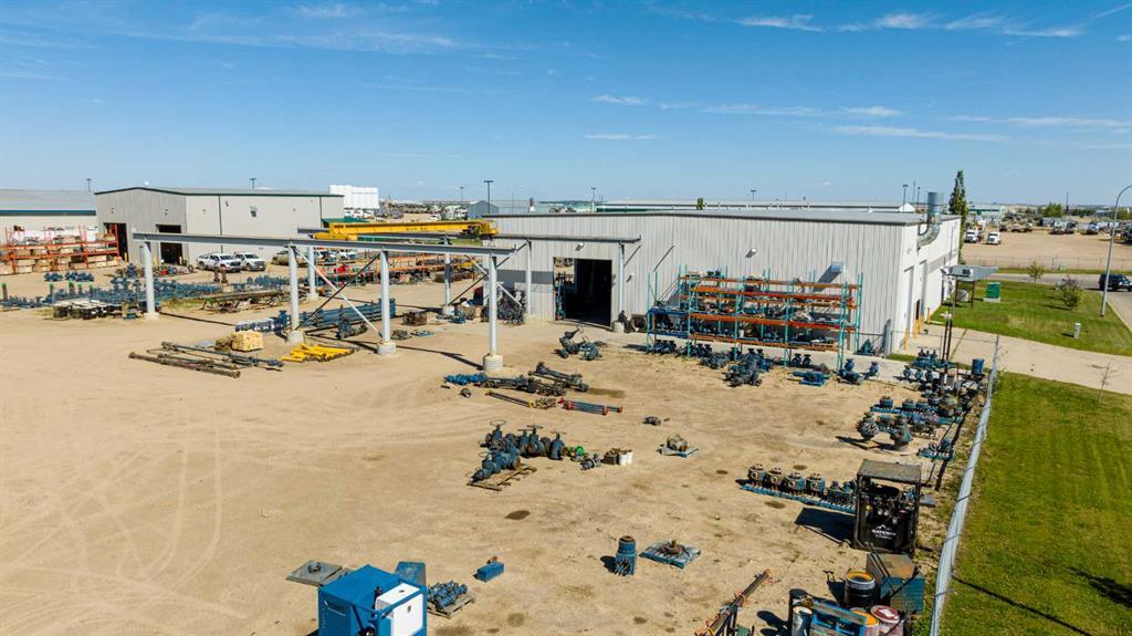 This industrial property is conveniently situated in Clairmont, just west of the County office. It encompasses 2.14 acres of land which is graveled and fenced with two approaches and RM-2 zoning. The building itself spans a total of 17,640 square feet, with 12,500 square feet of warehouse space. The warehouse is thoughtfully divided into two 100-foot bays, inclusive of five 16-foot by 16-foot overhead doors and a wash bay. The wash area is equipped with a dedicated pressure washer system, complete with its own standalone sump and trough setup that is independent of the municipal services run through the rest of the building. The operational efficiency comes in the form of a 10-ton crane and two 5-ton cranes. It offers radiant heat throughout the warehouse and a high-efficiency furnace for the office and mezzanine areas. To book a showing or for more information, call your local Commercial RealtorĀ®.