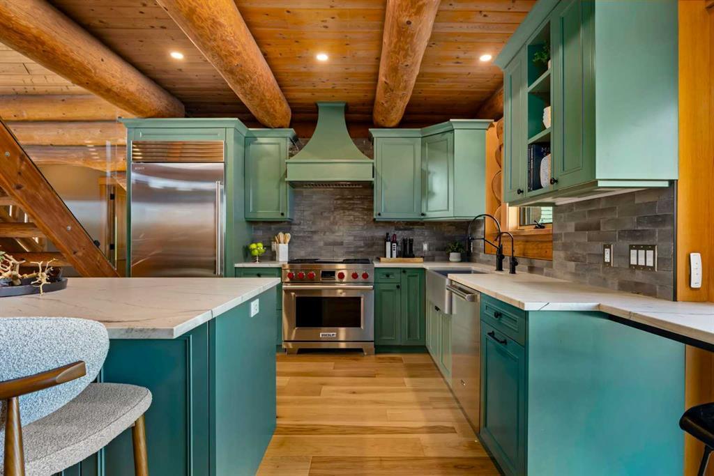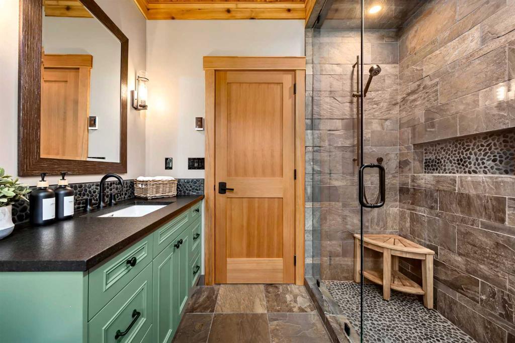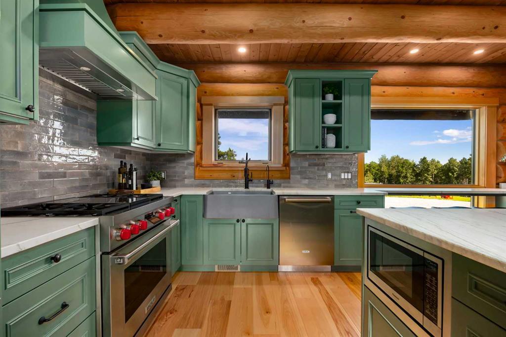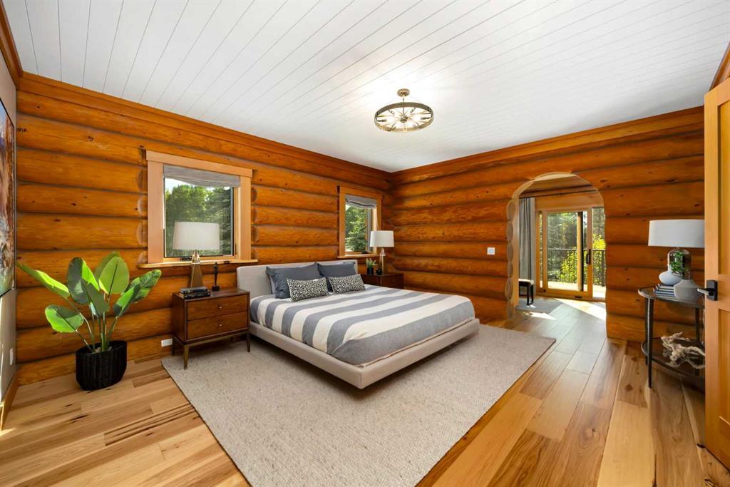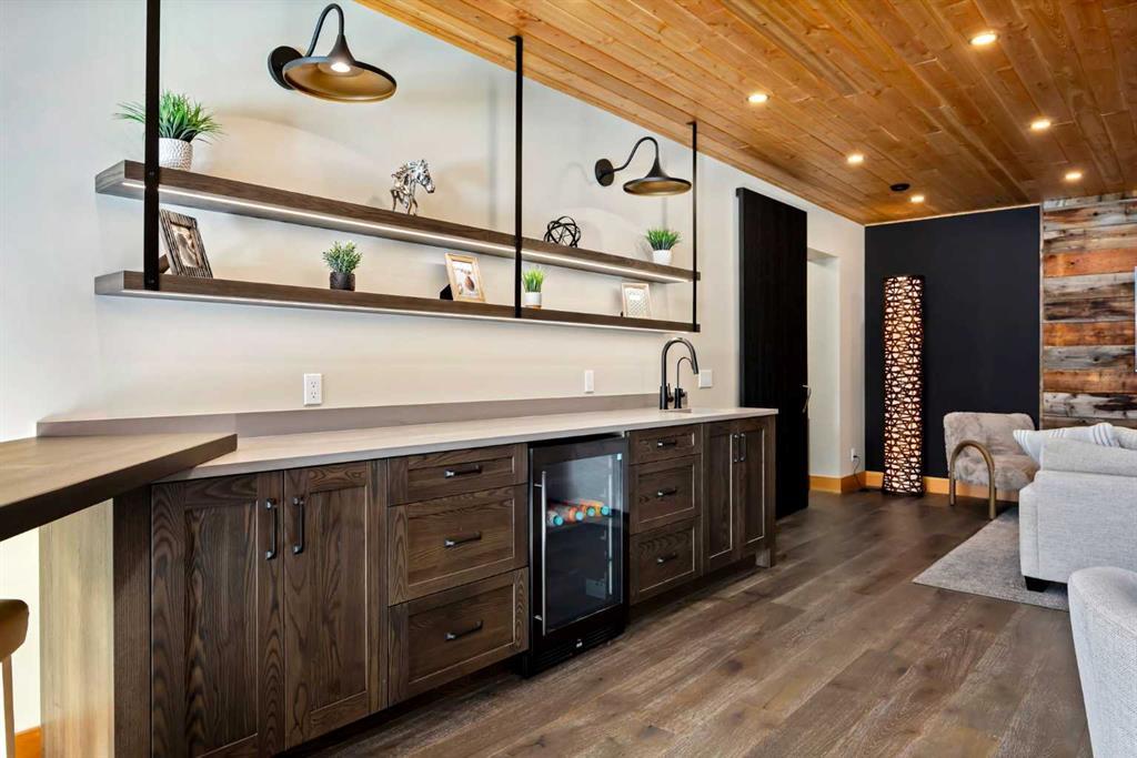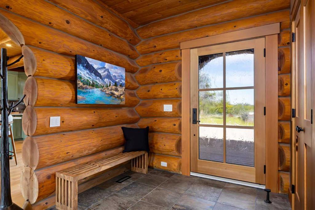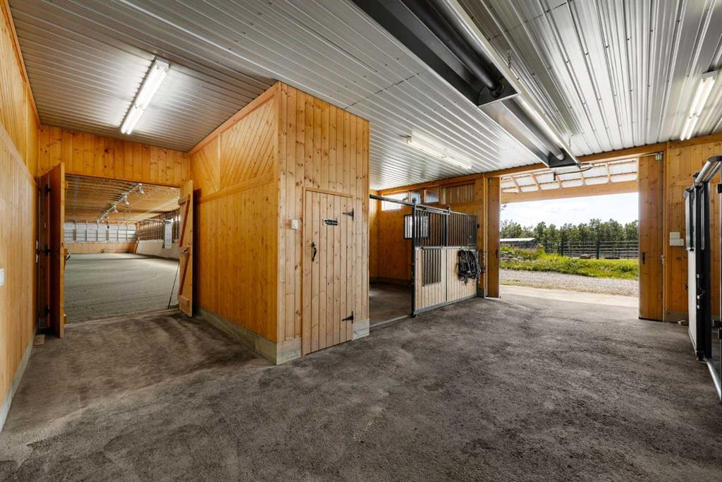 Set against a backdrop of Rocky Mountain views, this masterfully renovated 17 acre estate just minutes from Bragg Creek offers an exceptional blend of rural tranquility and sophisticated living. Thoughtfully redesigned from the ground up between 2022 and 2024, the 4000+ sq ft of living space has undergone a complete transformation, creating an elegant, turnkey property ideal for those seeking space, privacy, and unparalleled craftsmanship — all within a convenient reach of Calgary. This 4 bedroom, 3 bathroom home was completely stripped to the studs and professionally rebuilt with high-end materials and a timeless design. Natural hickory and oak flooring, Osmo-finished wood accents, and custom lighting bring a soft, organic feel to the space, while oversized Lux triple-pane windows frame the surrounding landscape and bathe the interior in natural light. At the heart of the home is a chef’s kitchen that seamlessly blends functionality with luxury. Outfitted with WOLF appliances, rich Luna quartzite countertops, farmhouse sink, and handcrafted cabinetry, it’s designed to elevate both everyday living and entertaining. The adjoining living spaces are equally as inviting, anchored by an Oracle gold-trimmed wood burning fireplace and offering effortless flow onto cedar patios that overlook the meticulously landscaped grounds. The master suite is a private sanctuary with direct patio access, a steam shower, and a custom walk-in closet. All bathrooms have been fully renovated with in-floor heating and premium finishes. Downstairs, the walkout basement features a theatre room and a custom gas fireplace, creating a cozy and versatile retreat. Behind the scenes, the electrical and plumbing systems have been comprehensively upgraded, including smart wiring, 200-amp service, a high-efficiency HVAC system, AC, and advanced water treatment system. The house and garage feature durable Allura siding designed to complement the log elements, topped with premium metal DECRA shingles. Front and rear cedar patios have been refinished, while engineered drainage, new sod, auto gate, and a gravel drive enhance both function and curb appeal. The garage has been fully updated with epoxy floors, new doors, heating and lighting. For your equestrian enthusiast, this property is fully equipped and ready. The heated barn includes six Hi-Hog fir and steel box stalls, wash bay, spacious tack room, and mechanical, all serviced by 100-amp power. A 60x180 indoor riding arena with a 12-foot bay door provides a year-round training space, complemented by a 60x120 outdoor arena, four turnout paddocks, and mulched perimeter riding trails. Three automatic livestock hydrants support ease of care, while the land itself offers privacy, space, and functionality with uninterrupted mountain vistas.