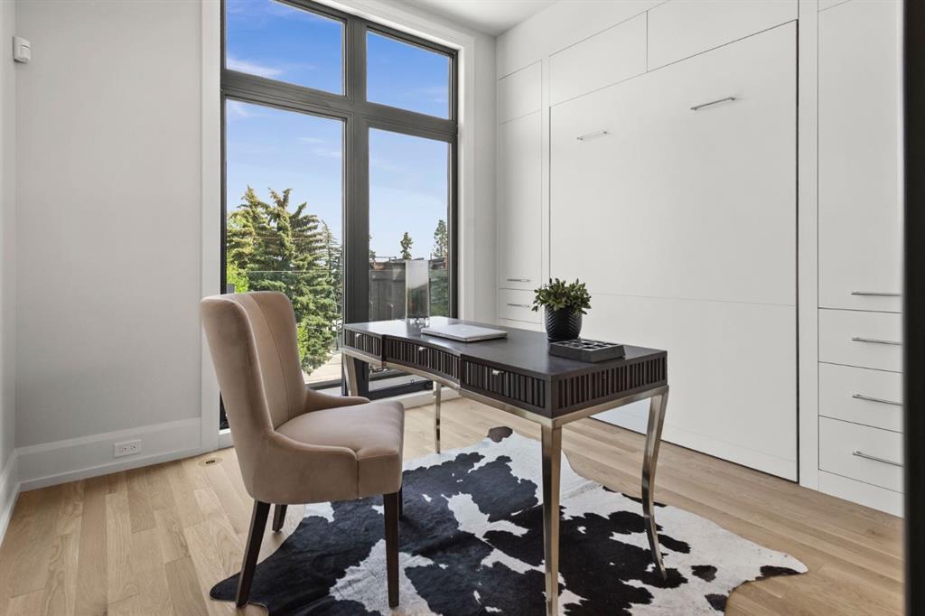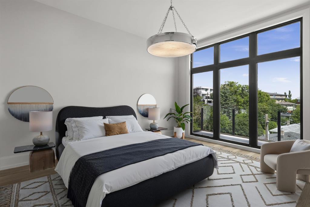 Step into a world of uncompromising luxury at Parkhill Flats, a bold architectural statement nestled in one of Calgary’s most coveted inner-city enclave. With only two residences in this boutique development, this is not just a home - it’s a rarefied lifestyle. Spanning an extraordinary 3,000 sq/ft of single-level living, this Manhattan penthouse inspired masterpiece offers soaring ceilings, expansive windows, and seamless indoor-outdoor flow. Every inch is curated for elegance and ease - from the private elevator that whisks you from your heated four-car garage to your front door, to the ICF concrete walls that ensure peace, privacy, and energy efficiency. Enjoy bespoke finishes including white oak hardwood, custom designer millwork, natural stone, and hand-applied plaster accents that evoke understated sophistication. The high performance kitchen is a culinary showpiece, featuring Wolf and Sub-Zero appliances paired with tailored cabinetry that will inspire even the most seasoned chef. Three private outdoor retreats include a 30’ x 16’ partially covered patio ideal for alfresco dining and summer gatherings. The owner’s suite offers a serene indoor-outdoor connection to a west-facing patio with panoramic treetop views, a spa-inspired ensuite wrapped in glossy porcelain tile, and a walk-in closet that feels more like a high-end boutique than a dressing room. A second bedroom with ensuite and walk-in closet, a den, and a laundry room complete the thoughtful single-level layout. The oversized private storage room with in floor heating offers flexibility to create a personal fitness studio, golf simulator, or home theatre - tailored to your lifestyle. Built with commercial-level construction details including a fire suppression system and gated rear access, this residence is designed for elevated comfort and long-term peace of mind. Located directly across from Stanley Park on prestigious 1A Street, Parkhill Flats offers rare access to nature, privacy, and prestige - all just steps from Calgary’s pathway system and minutes to the Glencoe Club, Calgary Golf & Country Club, and the city’s vibrant dining and shopping districts. Crafted by the acclaimed builder behind Elveden Court, a 26-unit sold out luxury bungalow villa project on Calgary’s west side, and exquisitely designed by Bridgette Frontain Interiors, this development carries forward a legacy of timeless design, enduring quality, and sophisticated living. Whether you're downsizing, aging in place, or seeking a lock-and-leave lifestyle without compromise - this is your invitation to live boldly, beautifully, and effortlessly. The Terrace Level is also available and shares nearly all the same extraordinary features. Please see MLS#A2257223.