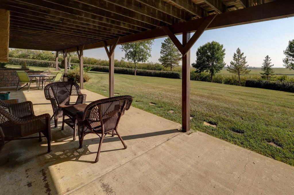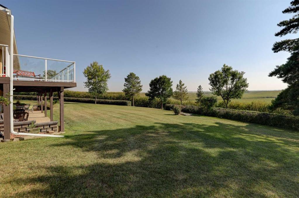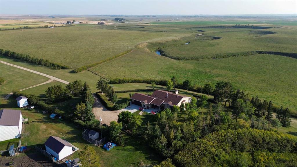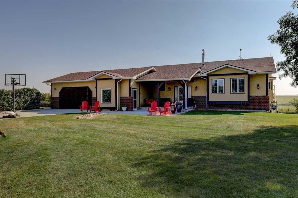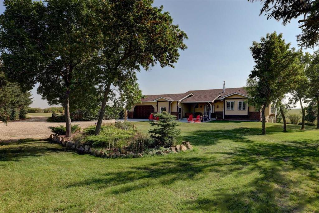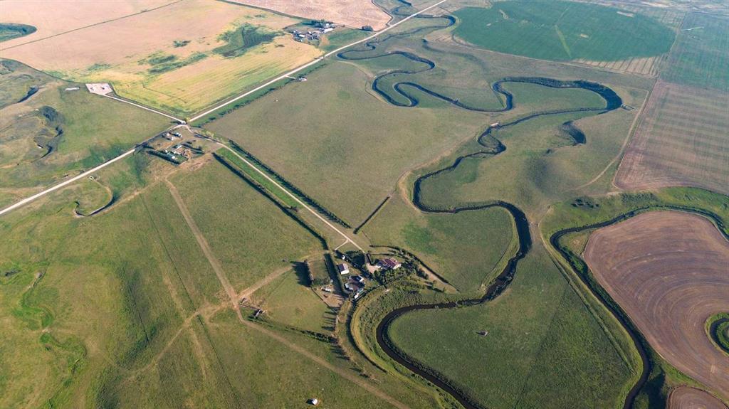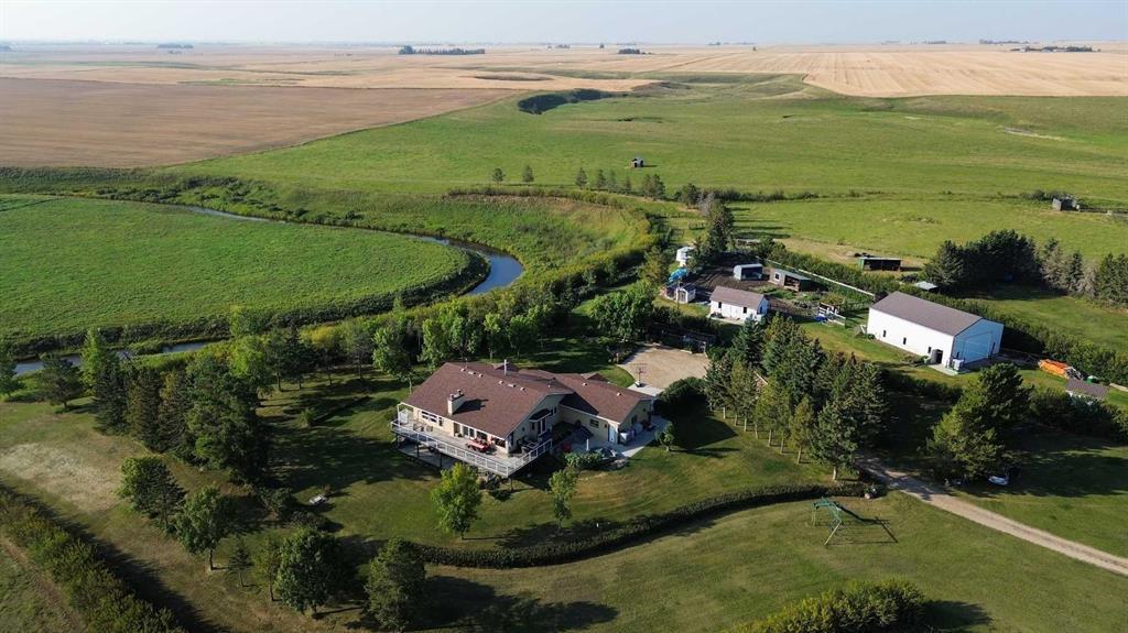 A River Runs Through this 206-acre SHOW PLACE farm in the Beiseker area, 38 minutes from Airdrie or Cross iron Mall. The land is ORGANIC (not certified) as no chemicals have been used for over 30 years. There are basically two sites. The Farm Site is supported by its own 15 GPM well, has its own Electrical Transformer, corrals with Cattle handling chutes, two waterers, a 24' x 48' metal clad Cow/Hay shelter, small Barn with Maternity Pen and a Pump House. Privacy provided by a Command Security Gate. Down the long tree lined lane towards the river sits the PRINCIPAL RESIDENCE, which is a scenic gem, landscaped with extensive lawns and TREES, overlooking the Rosebud River westward to the Rockies (yes, you can see them on a clear day) To the south the Rosebud meanders diagonally throughout the quarter (no parcel out). The main floor of the beautifully upgraded 2,268 sq. ft. WALKOUT BUNGALOW with wraparound deck features a large country kitchen and a sunny kitchen nook with access to the deck and charming, landscaped PATIO. A warm and inviting OPEN BEAM living room featuring large view windows and a feature wood stove adjoin a formal dining room. The primary ensuite is upgraded, as is the main bath. Two additional bedrooms and the laundry complete the main floor. An attached oversized two car garage is accessed from the laundry via a huge mudroom. The large, finished basement living room area features large view windows. The ambiance is enhanced by a natural rock wall and second wood burning stove. Two additional bedrooms, a four-piece bath, ample storage room and a large games room with access to the covered patio completes the lower level. The NEW WELL at 10 GPM and natural gas GENERAC GENERATOR give security to the Residence and outbuildings. A large GARDEN, pens for dogs, chickens and goats. There is a spacious Workshop and the 36' x 48' metal FARM EQUIPMENT STORAGE BUILDING with 20' x 14' door and man door, featuring a pony wall and roof trusses at 2' spacing. Behind the hedge is a round pen, an outdoor riding arena and one of the two waterers. This listing has two land titles. The home and buildings are on 49.42 acres. The unsubdivided QUARTER section consists of 157.7 acres. Each property can be purchased SEPERATELY.