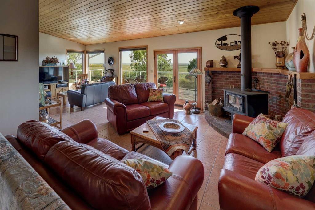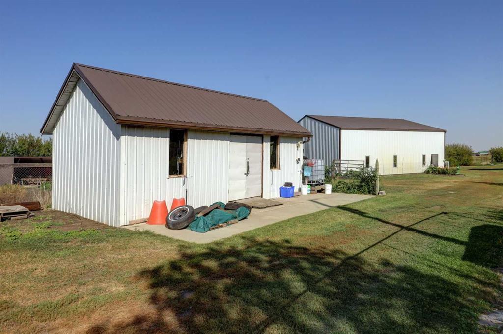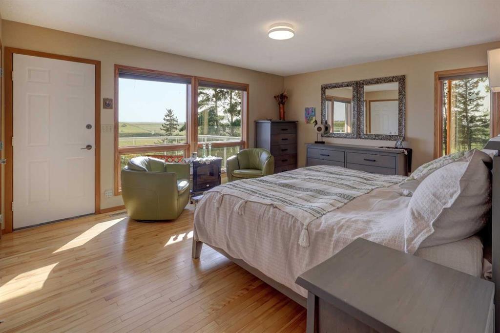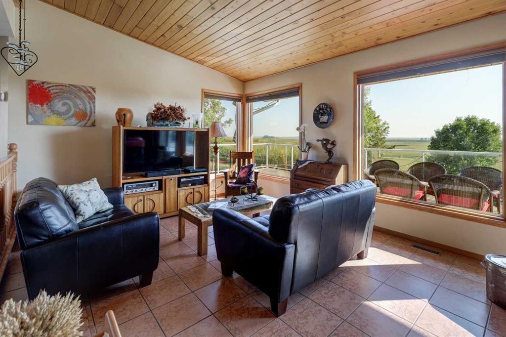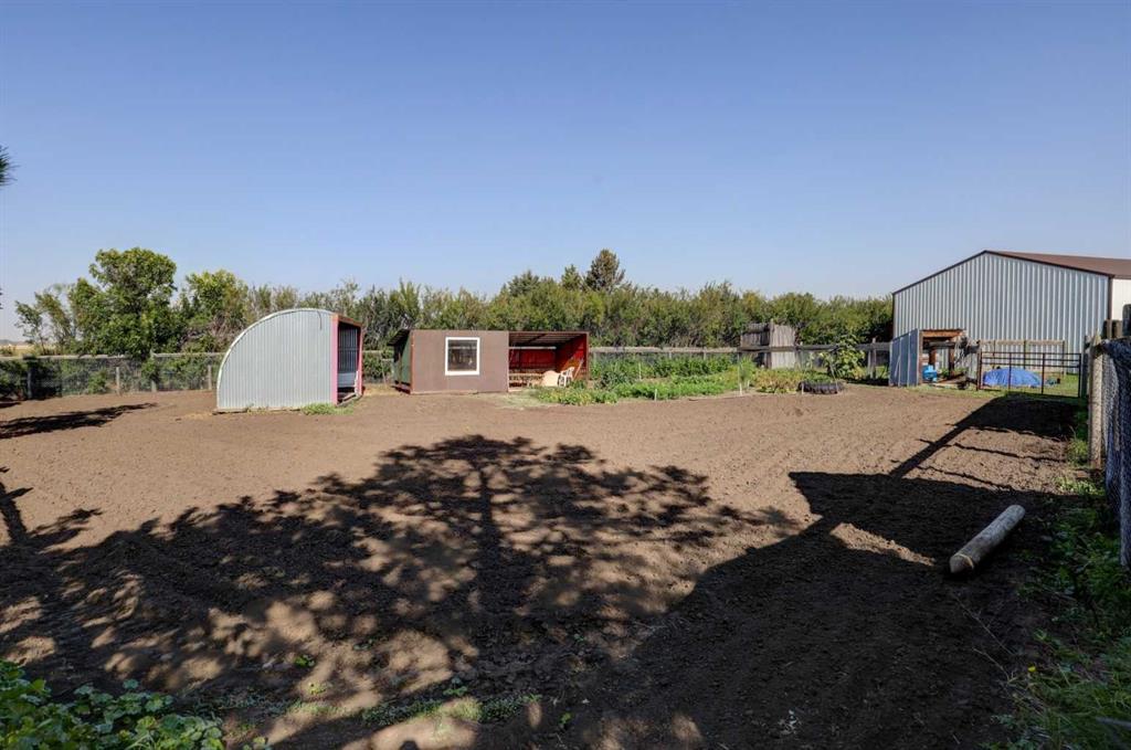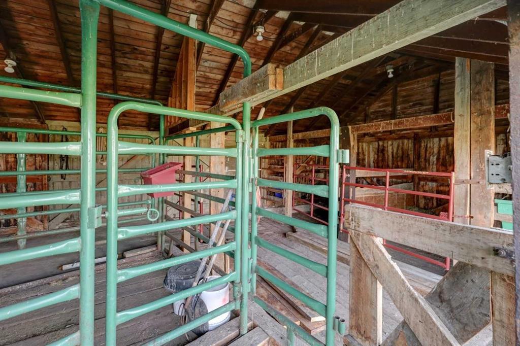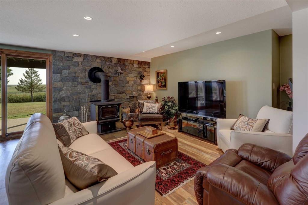 A River Runs Through this 206-acre SHOW PLACE farm in the Beiseker area, 38 minutes from Airdrie or Cross iron Mall. The land is ORGANIC (not certified) as no chemicals have been used for over 30 years. There are basically two sites. The Farm Site is supported by its own 15 GPM well, has its own Electrical Transformer, corrals with Cattle handling chutes, two waterers, a 24' x 48' metal clad Cow/Hay shelter, small Barn with Maternity Pen and a Pump House. Privacy provided by a Command Security Gate. Down the long tree lined lane towards the river sits the PRINCIPAL RESIDENCE, which is a scenic gem, landscaped with extensive lawns and TREES, overlooking the Rosebud River westward to the Rockies (yes, you can see them on a clear day) To the south the Rosebud meanders diagonally throughout the quarter (no parcel out). The main floor of the beautifully upgraded 2,268 sq. ft. WALKOUT BUNGALOW with wraparound deck features a large country kitchen and a sunny kitchen nook with access to the deck and charming, landscaped PATIO. A warm and inviting OPEN BEAM living room featuring large view windows and a feature wood stove adjoin a formal dining room. The primary ensuite is upgraded, as is the main bath. Two additional bedrooms and the laundry complete the main floor. An attached oversized two car garage is accessed from the laundry via a huge mudroom. The large, finished basement living room area features large view windows. The ambiance is enhanced by a natural rock wall and second wood burning stove. Two additional bedrooms, a four-piece bath, ample storage room and a large games room with access to the covered patio completes the lower level. The NEW WELL at 10 GPM and natural gas GENERAC GENERATOR give security to the Residence and outbuildings. A large GARDEN, pens for dogs, chickens and goats. There is a spacious Workshop and the 36' x 48' metal FARM EQUIPMENT STORAGE BUILDING with 20' x 14' door and man door, featuring a pony wall and roof trusses at 2' spacing. Behind the hedge is a round pen, an outdoor riding arena and one of the two waterers. This listing has two land titles. The home and buildings are on 49.42 acres. The unsubdivided QUARTER section consists of 157.7 acres. Each property can be purchased SEPERATELY.