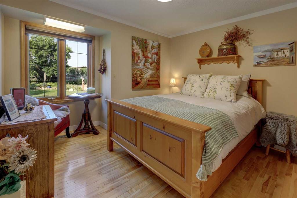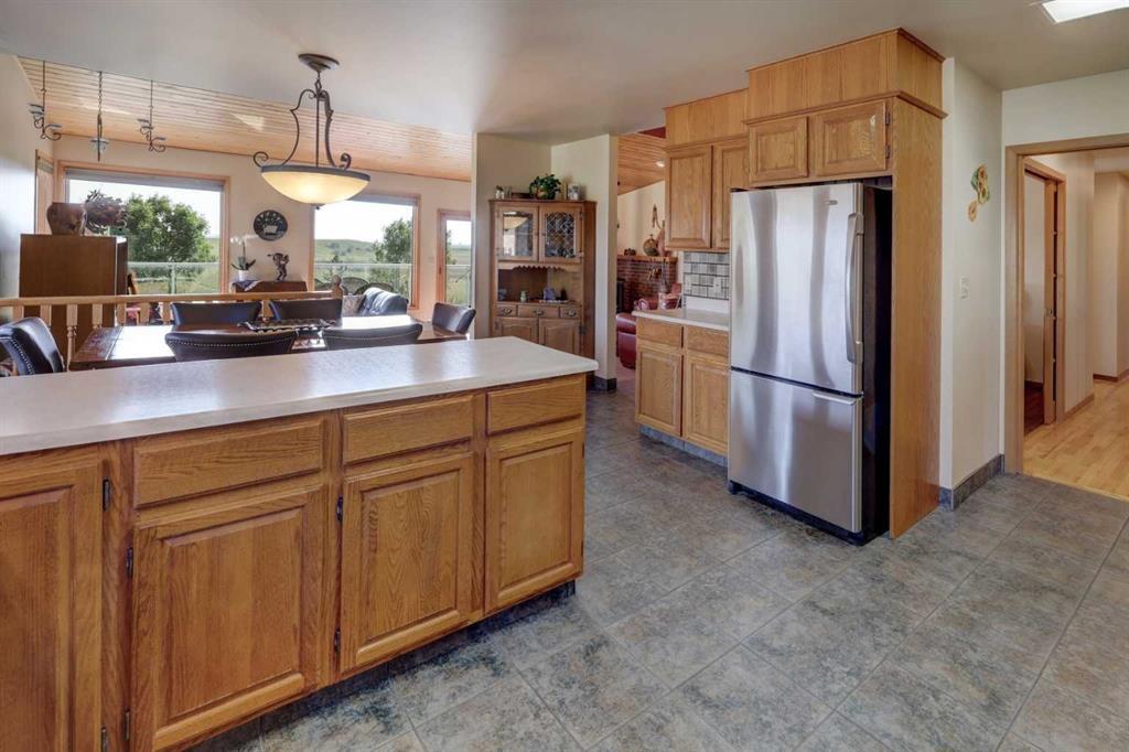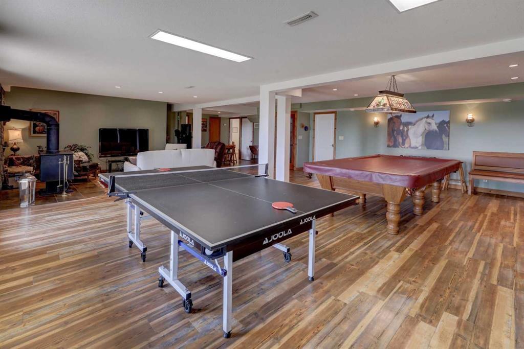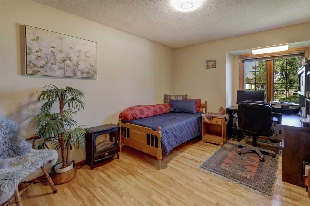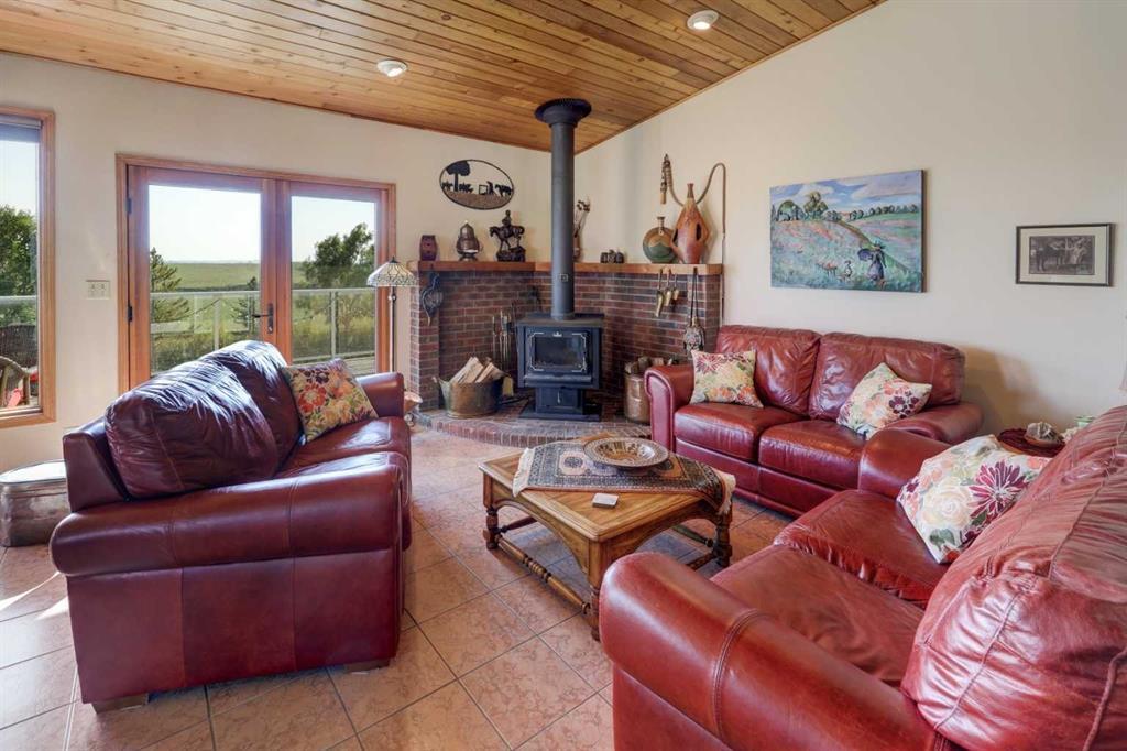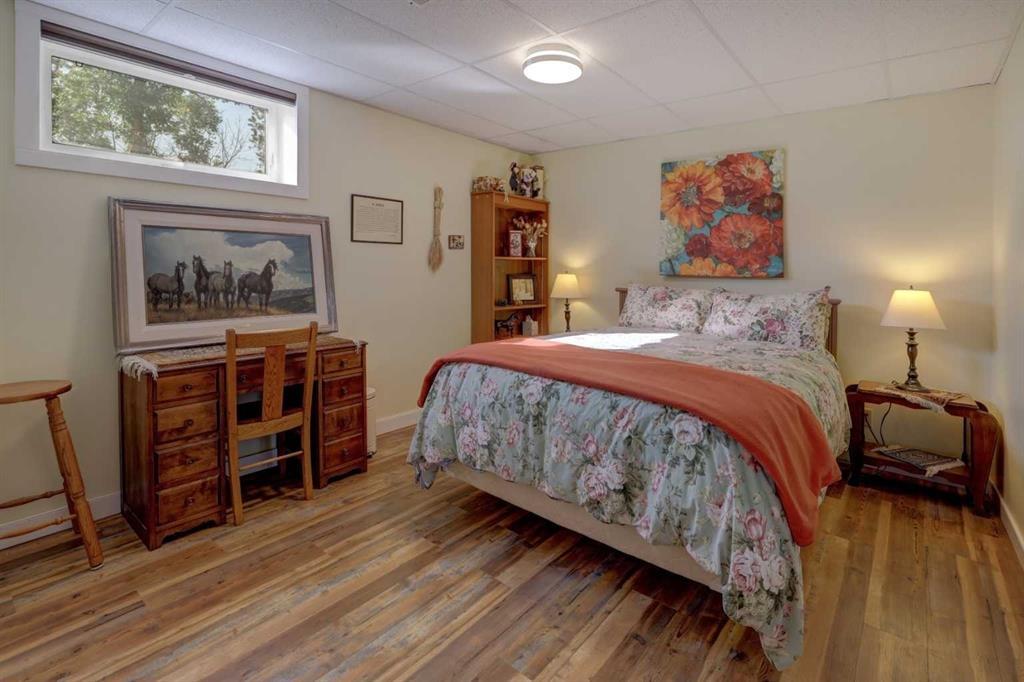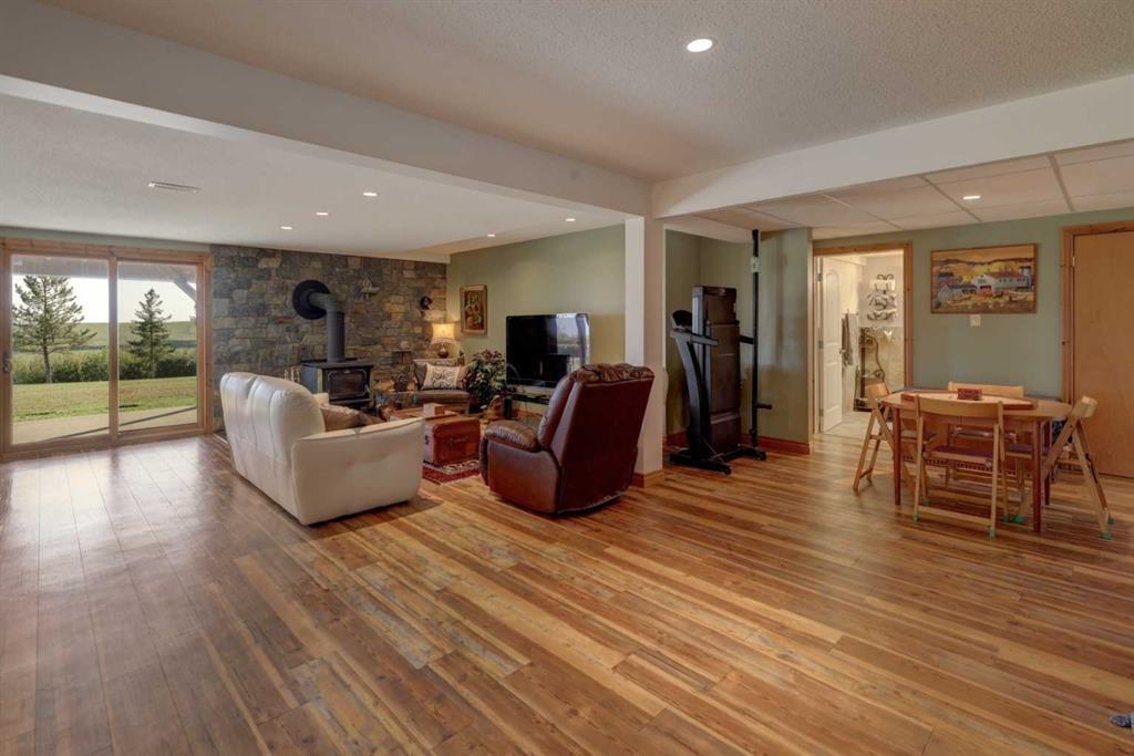 A River Runs Through this 206-acre SHOW PLACE farm in the Beiseker area, 38 minutes from Airdrie or Cross iron Mall. The land is ORGANIC (not certified) as no chemicals have been used for over 30 years. There are basically two sites. The Farm Site is supported by its own 15 GPM well, has its own Electrical Transformer, corrals with Cattle handling chutes, two waterers, a 24' x 48' metal clad Cow/Hay shelter, small Barn with Maternity Pen and a Pump House. Privacy provided by a Command Security Gate. Down the long tree lined lane towards the river sits the PRINCIPAL RESIDENCE, which is a scenic gem, landscaped with extensive lawns and TREES, overlooking the Rosebud River westward to the Rockies (yes, you can see them on a clear day) To the south the Rosebud meanders diagonally throughout the quarter (no parcel out). The main floor of the beautifully upgraded 2,268 sq. ft. WALKOUT BUNGALOW with wraparound deck features a large country kitchen and a sunny kitchen nook with access to the deck and charming, landscaped PATIO. A warm and inviting OPEN BEAM living room featuring large view windows and a feature wood stove adjoin a formal dining room. The primary ensuite is upgraded, as is the main bath. Two additional bedrooms and the laundry complete the main floor. An attached oversized two car garage is accessed from the laundry via a huge mudroom. The large, finished basement living room area features large view windows. The ambiance is enhanced by a natural rock wall and second wood burning stove. Two additional bedrooms, a four-piece bath, ample storage room and a large games room with access to the covered patio completes the lower level. The NEW WELL at 10 GPM and natural gas GENERAC GENERATOR give security to the Residence and outbuildings. A large GARDEN, pens for dogs, chickens and goats. There is a spacious Workshop and the 36' x 48' metal FARM EQUIPMENT STORAGE BUILDING with 20' x 14' door and man door, featuring a pony wall and roof trusses at 2' spacing. Behind the hedge is a round pen, an outdoor riding arena and one of the two waterers. This listing has two land titles. The home and buildings are on 49.42 acres. The unsubdivided QUARTER section consists of 157.7 acres. Each property can be purchased SEPERATELY.