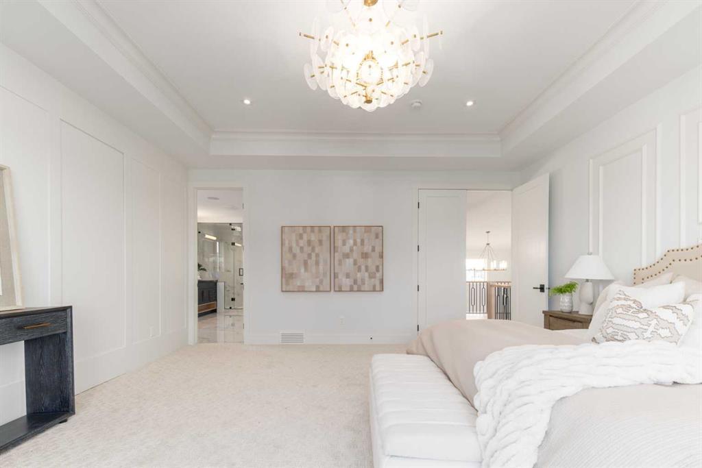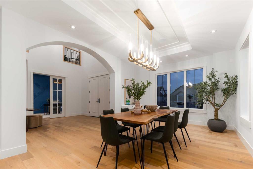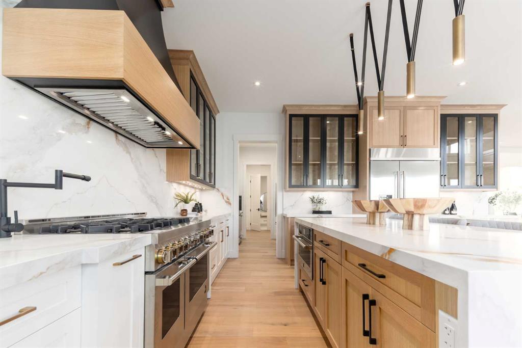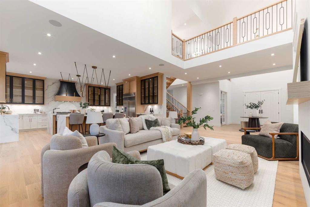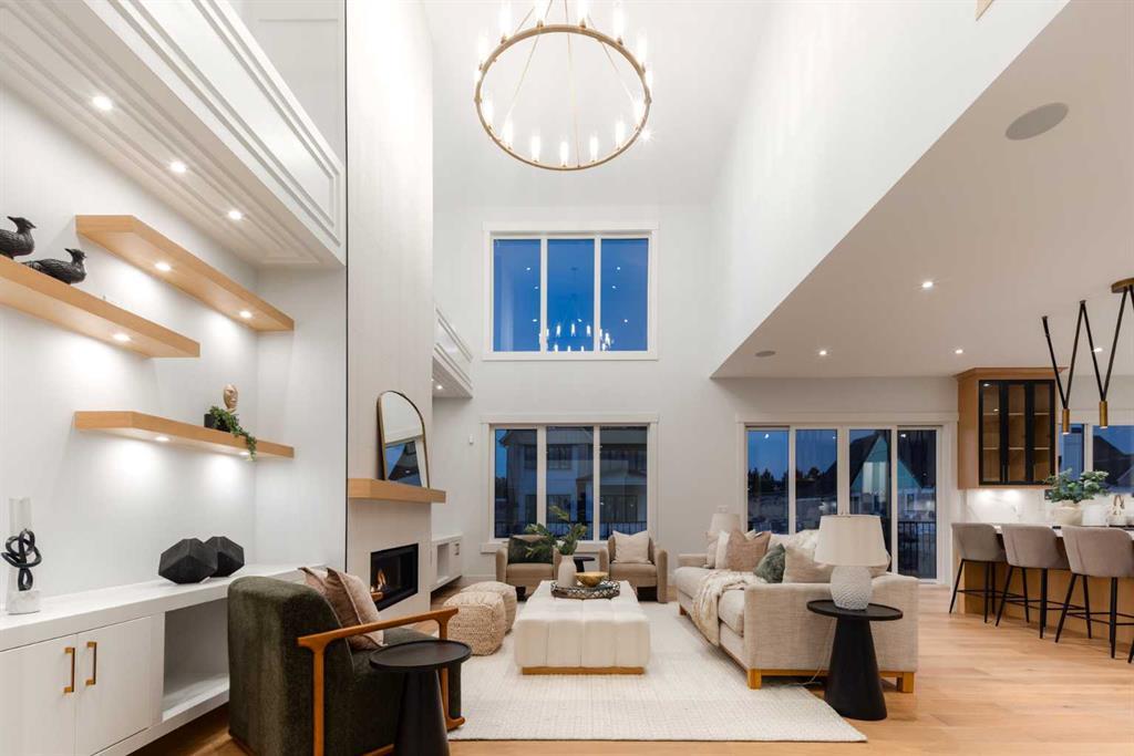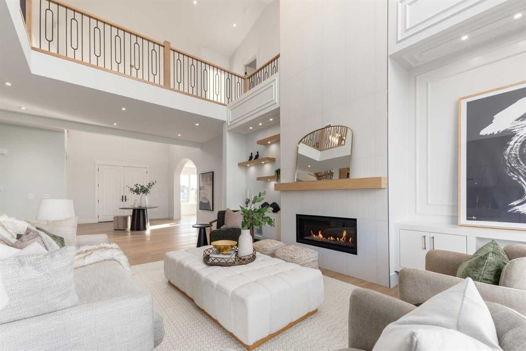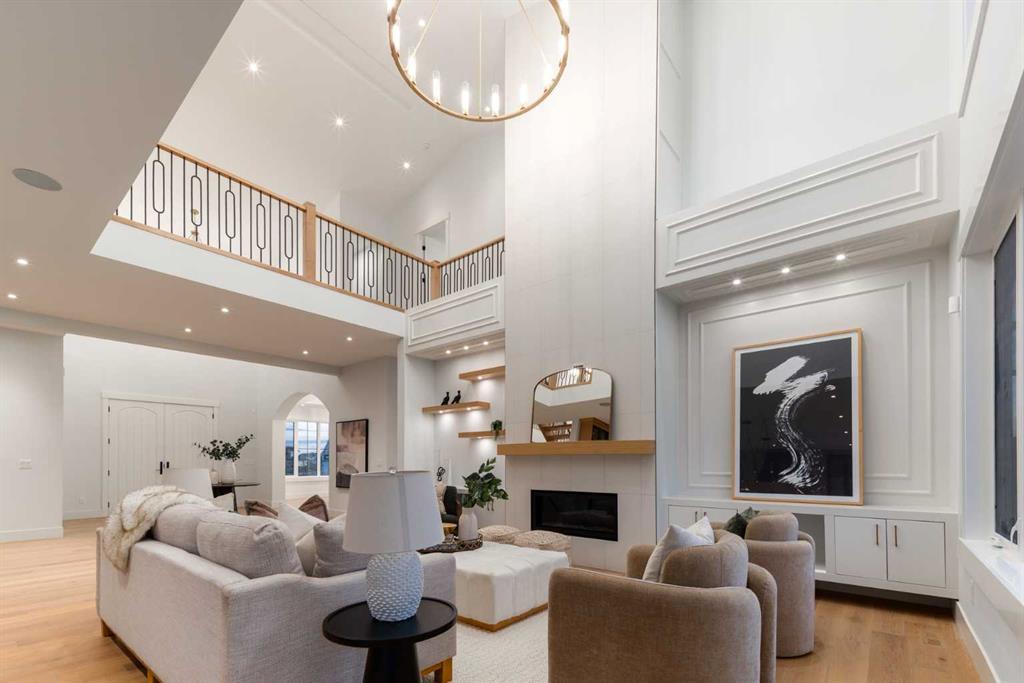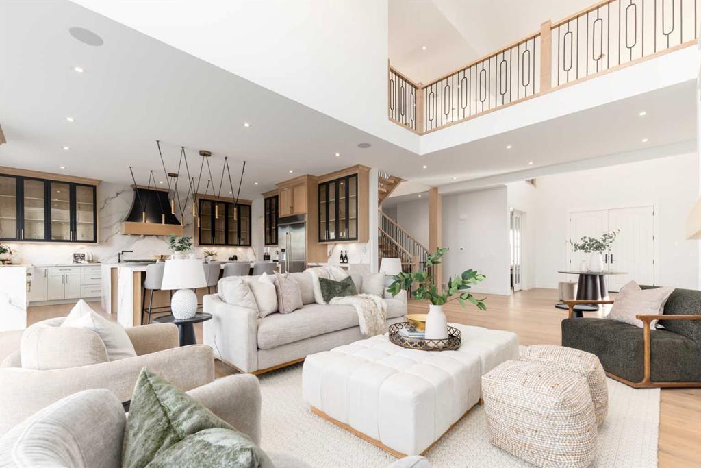 Discover the epitome of luxury living at 200 Pondside Place, an extraordinary 7-bedroom, 6.5-bath estate in the prestigious community of Watermark at Bearspaw. Designed with families in mind, this home combines architectural elegance with modern functionality across nearly 6,800 sq ft of developed space. A striking façade of smooth stucco, black wood accents, and stone detailing sets the tone, while a four-car garage and exposed aggregate driveway provide both practicality and curb appeal. Inside, soaring ceilings, wide-plank oak floors, and expansive windows create a light-filled atmosphere that is as welcoming as it is refined. The gourmet chef’s kitchen is a true showpiece, featuring dual waterfall quartz islands, professional-grade Jenn-Air appliances, integrated wine storage, and a fully equipped spice/prep kitchen. The adjoining great room showcases a soaring fireplace wall and custom built-ins, perfect for both family gatherings and elegant entertaining. Formal dining is elevated with a glass-encased wine display and coffered ceiling, while a private main-floor office, guest suite, and stylish powder room add everyday convenience. Upstairs, the primary suite is a serene retreat with a boutique-style walk-in closet, spa-inspired ensuite with soaking tub and rainfall shower, and space for private lounging. Three additional bedrooms each feature their own ensuite and walk-in closet, while a flex loft/media space and a fully outfitted laundry room complete the level. The lower level is designed for recreation and relaxation, offering a spacious rec room with wet bar, fitness studio, plush theater room, and two additional bedrooms. Radiant in-floor heating throughout the lower level ensures year-round comfort. Set on a beautifully landscaped 0.28-acre lot, this home includes speaker zones, central vac, gas BBQ hookup, gas garage heater and smart-home rough-ins for modern living. Beyond the property, Watermark is one of Calgary’s most sought-after family communities, renowned for its strong sense of community, scenic pathways, and access to top schools and amenities. With nearby shopping, dining, recreation centers, and a quick drive into the city, it is the perfect balance of tranquility and convenience.