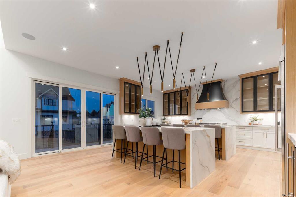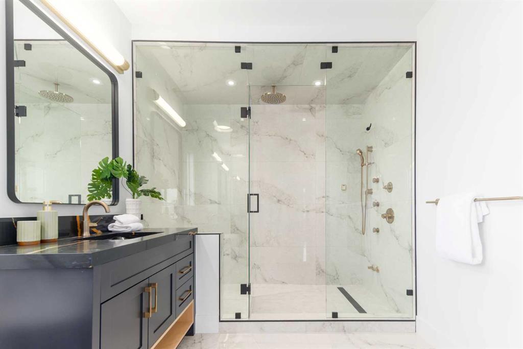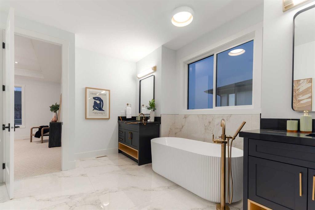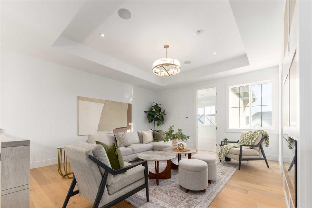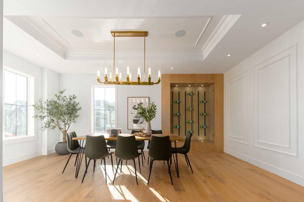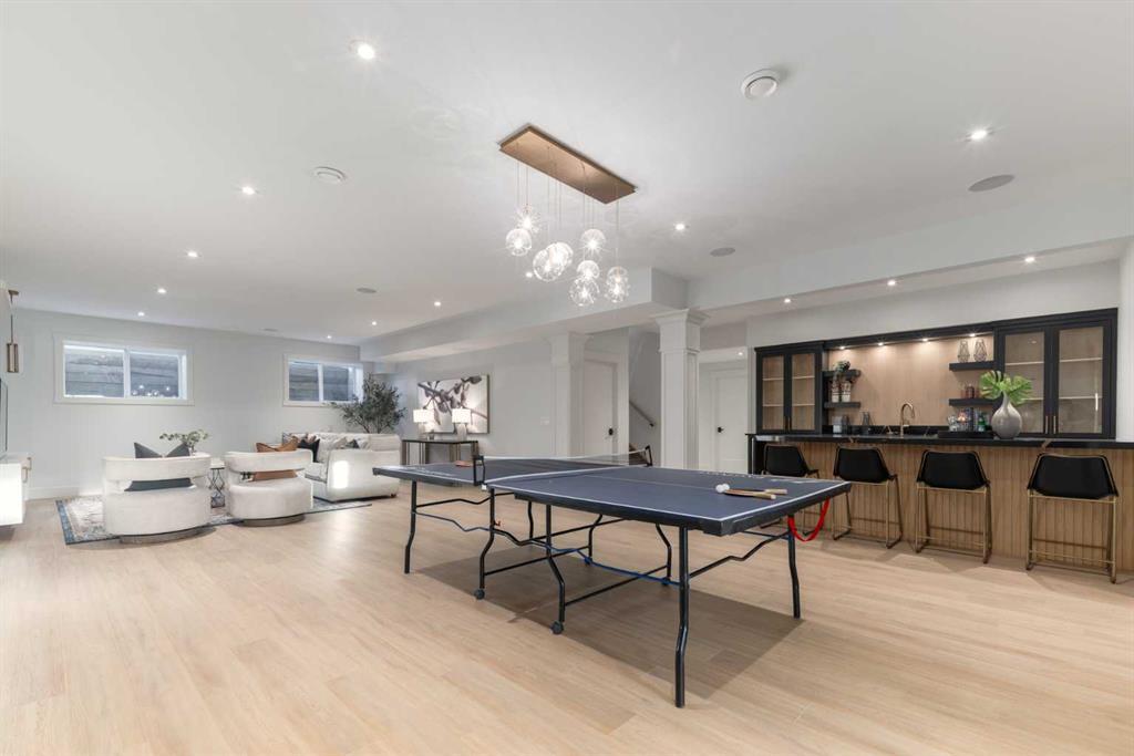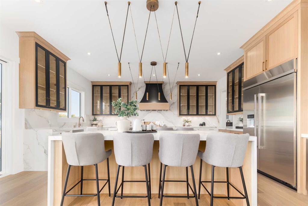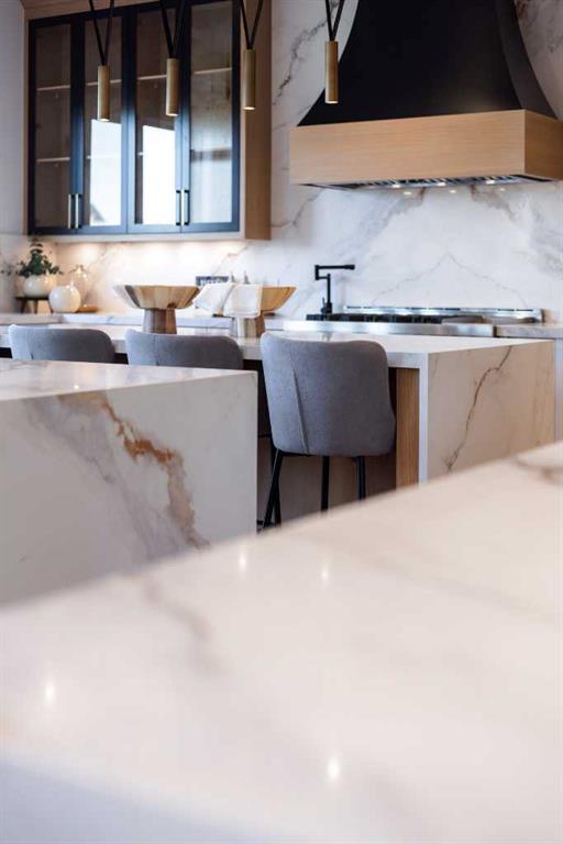 Discover the epitome of luxury living at 200 Pondside Place, an extraordinary 7-bedroom, 6.5-bath estate in the prestigious community of Watermark at Bearspaw. Designed with families in mind, this home combines architectural elegance with modern functionality across nearly 6,800 sq ft of developed space. A striking façade of smooth stucco, black wood accents, and stone detailing sets the tone, while a four-car garage and exposed aggregate driveway provide both practicality and curb appeal. Inside, soaring ceilings, wide-plank oak floors, and expansive windows create a light-filled atmosphere that is as welcoming as it is refined. The gourmet chef’s kitchen is a true showpiece, featuring dual waterfall quartz islands, professional-grade Jenn-Air appliances, integrated wine storage, and a fully equipped spice/prep kitchen. The adjoining great room showcases a soaring fireplace wall and custom built-ins, perfect for both family gatherings and elegant entertaining. Formal dining is elevated with a glass-encased wine display and coffered ceiling, while a private main-floor office, guest suite, and stylish powder room add everyday convenience. Upstairs, the primary suite is a serene retreat with a boutique-style walk-in closet, spa-inspired ensuite with soaking tub and rainfall shower, and space for private lounging. Three additional bedrooms each feature their own ensuite and walk-in closet, while a flex loft/media space and a fully outfitted laundry room complete the level. The lower level is designed for recreation and relaxation, offering a spacious rec room with wet bar, fitness studio, plush theater room, and two additional bedrooms. Radiant in-floor heating throughout the lower level ensures year-round comfort. Set on a beautifully landscaped 0.28-acre lot, this home includes speaker zones, central vac, gas BBQ hookup, gas garage heater and smart-home rough-ins for modern living. Beyond the property, Watermark is one of Calgary’s most sought-after family communities, renowned for its strong sense of community, scenic pathways, and access to top schools and amenities. With nearby shopping, dining, recreation centers, and a quick drive into the city, it is the perfect balance of tranquility and convenience.