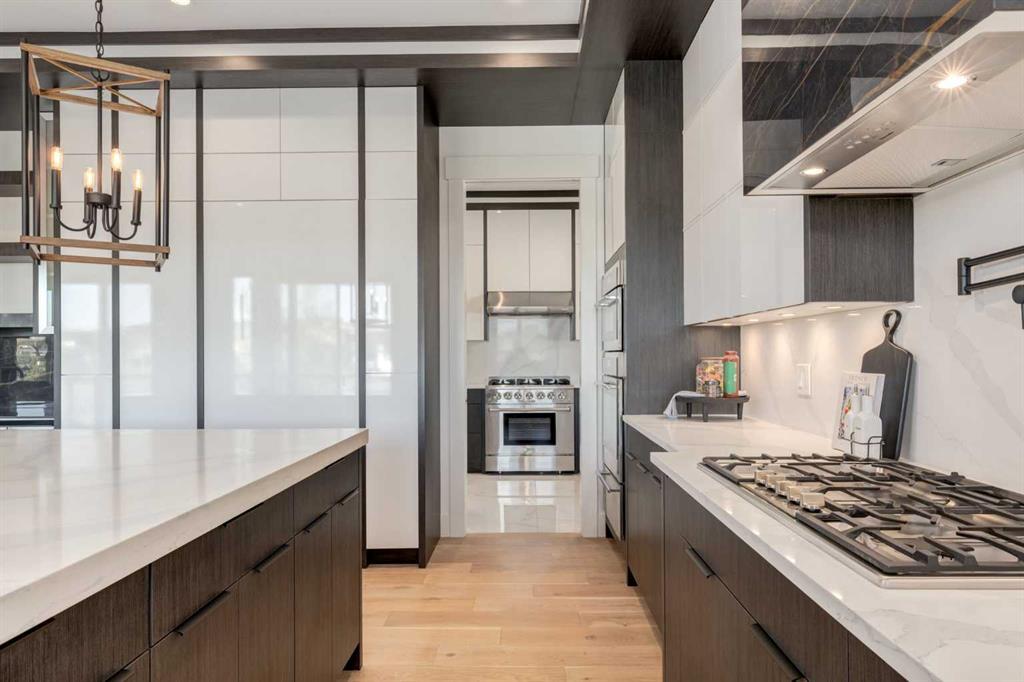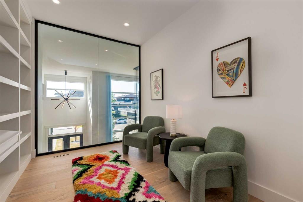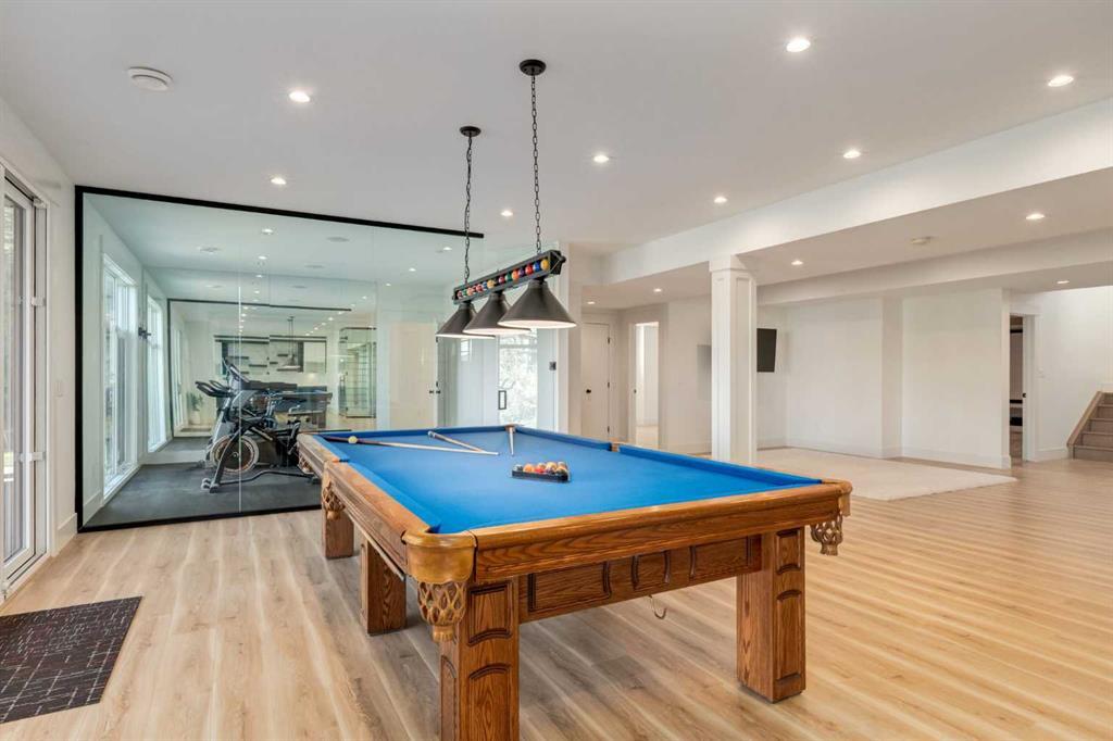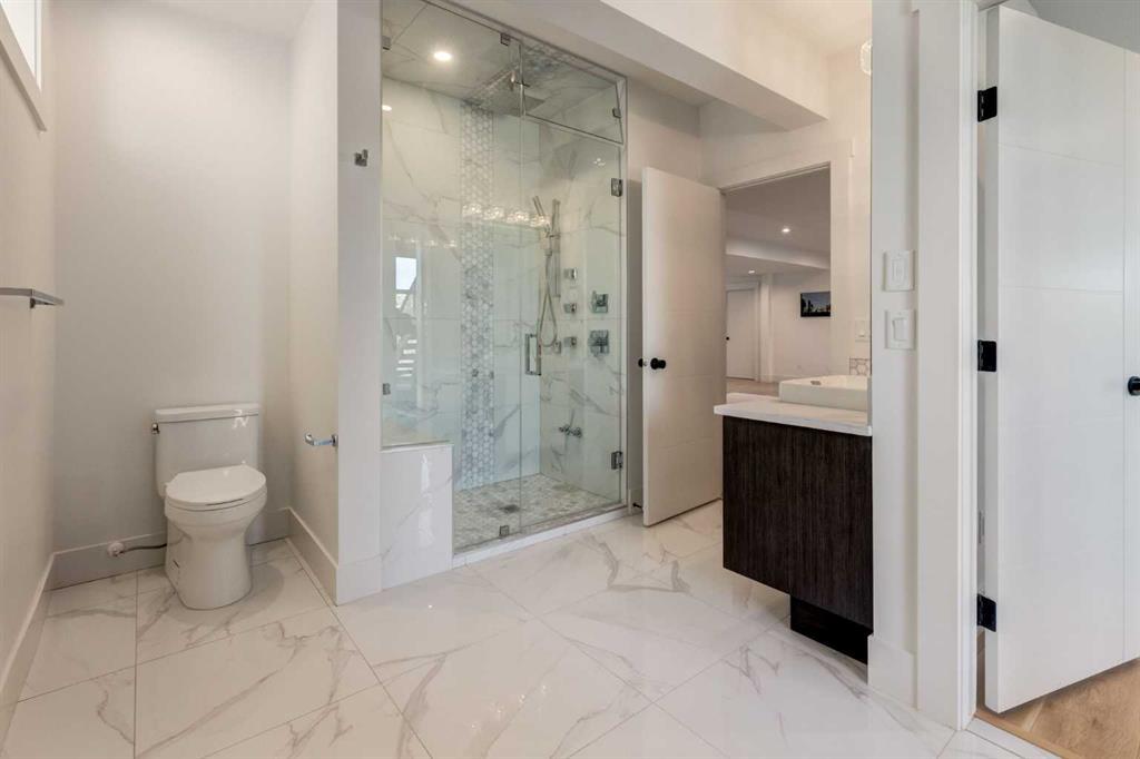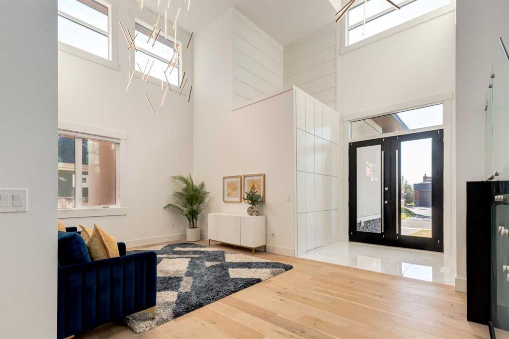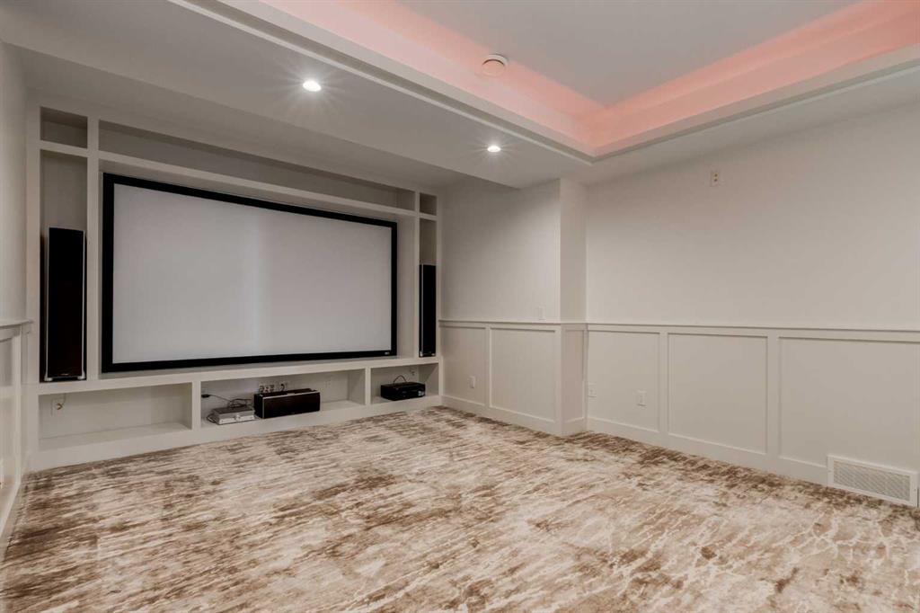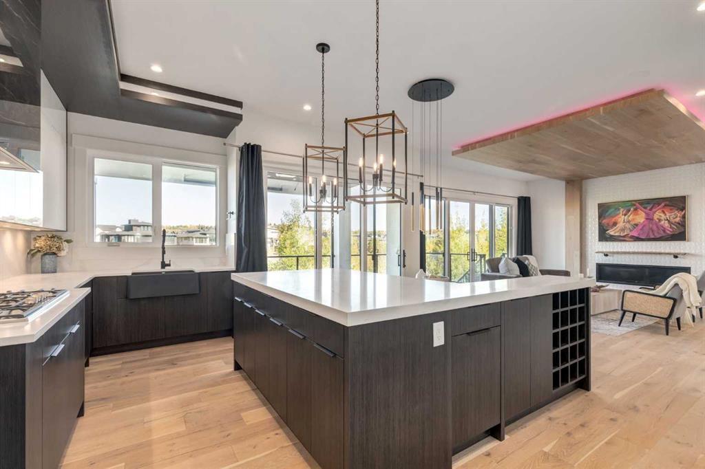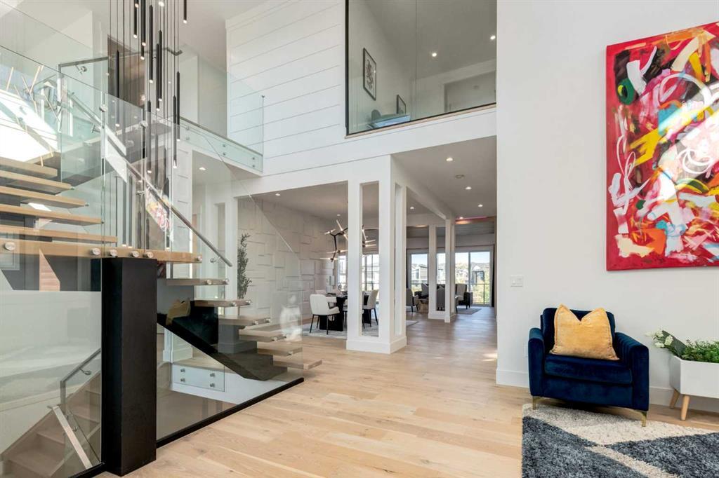 Welcome to this extraordinary WATERFRONT ESTATE in the prestigious community of WATERMARK AT BEARSPAW. Situated on a premium 0.29-acre lot backing onto a serene pond, this residence offers over 7,000 sq ft of luxurious living space with 7 bedrooms, 6.5 bathrooms, and two master suites, including one on the main floor. Designed with elegance and functionality in mind, the home features soaring 10-foot ceilings, 8-foot doors, an open-to-above foyer, and extra-wide hallways, all contributing to a grand and airy ambiance. A neutral color palette is paired with refined finishes such as engineered hardwood flooring, built-in speakers, heated flooring, and 12mm glass features throughout. The heart of the home is a stunning chef’s kitchen equipped with premium Thermador stainless steel appliances, a gas cooktop, quartz countertops, a spacious central island with a built-in banquette, and a separate spice kitchen or butler’s pantry. Adjacent to the kitchen is a formal dining room with a custom feature wall, a large family room with an upgraded linear gas fireplace, and a dedicated home office. The main-floor master suite includes a luxurious 5-piece ensuite, a generous walk-in closet, and private access to a serene outdoor patio. Upstairs, the primary suite offers a true retreat with a double-sided gas fireplace, an opulent 5-piece ensuite, an oversized shower, a walk-in closet with a custom island, and its own private patio with waterfront views. Three additional bedrooms, two with ensuite access & walk-in closets, while the upper floor also includes a bonus room with tray ceilings, a sleek glass-enclosed library, and a full laundry room with a sink. The walk-out basement is an entertainer’s dream, featuring a spacious recreation and games area, a wet bar, an elegant wine cellar, and a beautifully designed home theatre with a second wet bar. This level also includes a glass-walled gym, two large bedrooms, a full bathroom with a steam shower, and access to a future hot tub area. Outdoor living spaces include an upper deck with an outdoor theatre (wired for heaters & Motorized screens), and a lower concrete patio, all with spectacular water views. Additional highlights include a fully finished quad garage with extra storage and heater rough-ins, walk-in closets in all bedrooms with custom MDF shelving, dedicated laundry on each floor, double furnace, tankless water heater, water softener, and central vacuum system with multiple vac pans. Located on a quiet, central street in Watermark—an award-winning estate community—this impeccable home combines thoughtful design with premium features and finishes. One of the premier homes on one of the most desirable lots in the community makes this property a must-see if you're looking for luxury living at its finest!!! OPEN HOUSE SAT. OCT 18TH 2:00-5:00 & SUN OCT 19TH 1:00-4:00!!