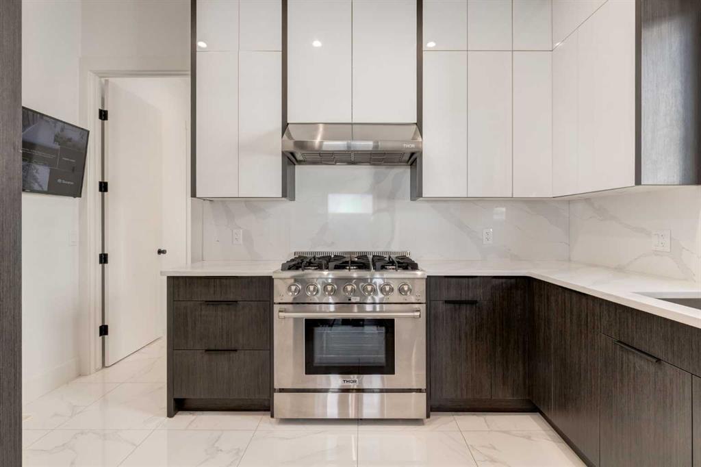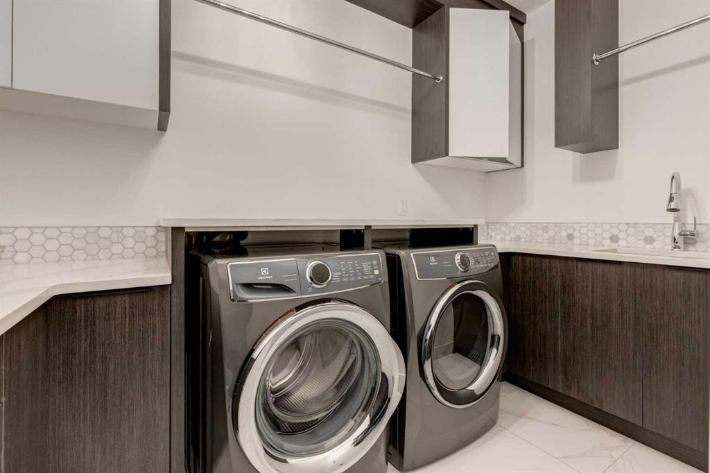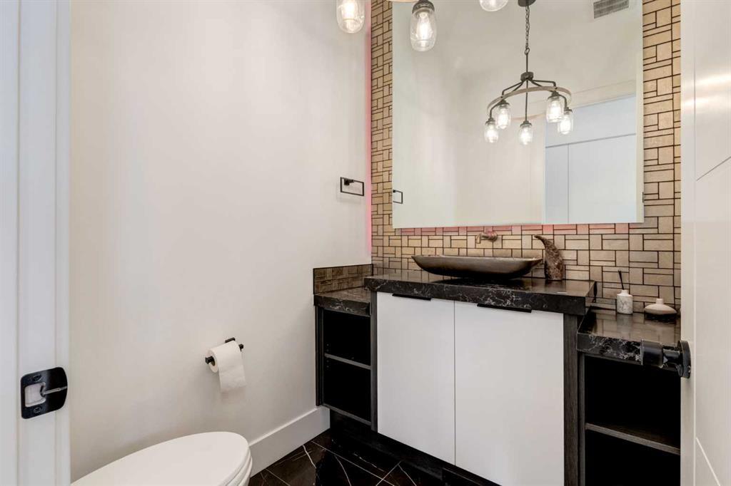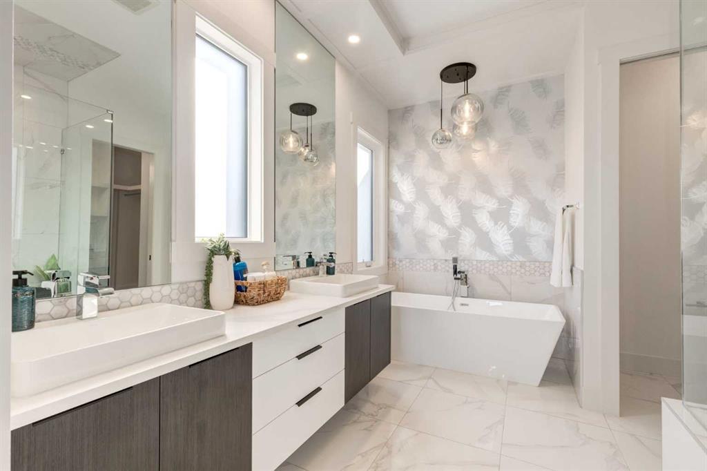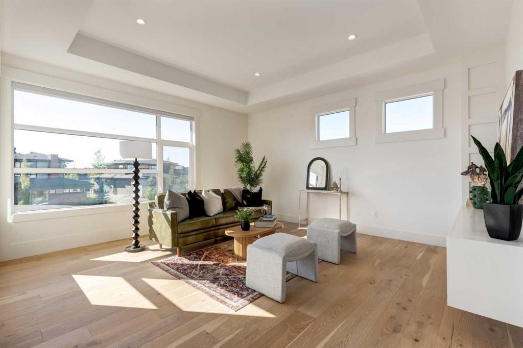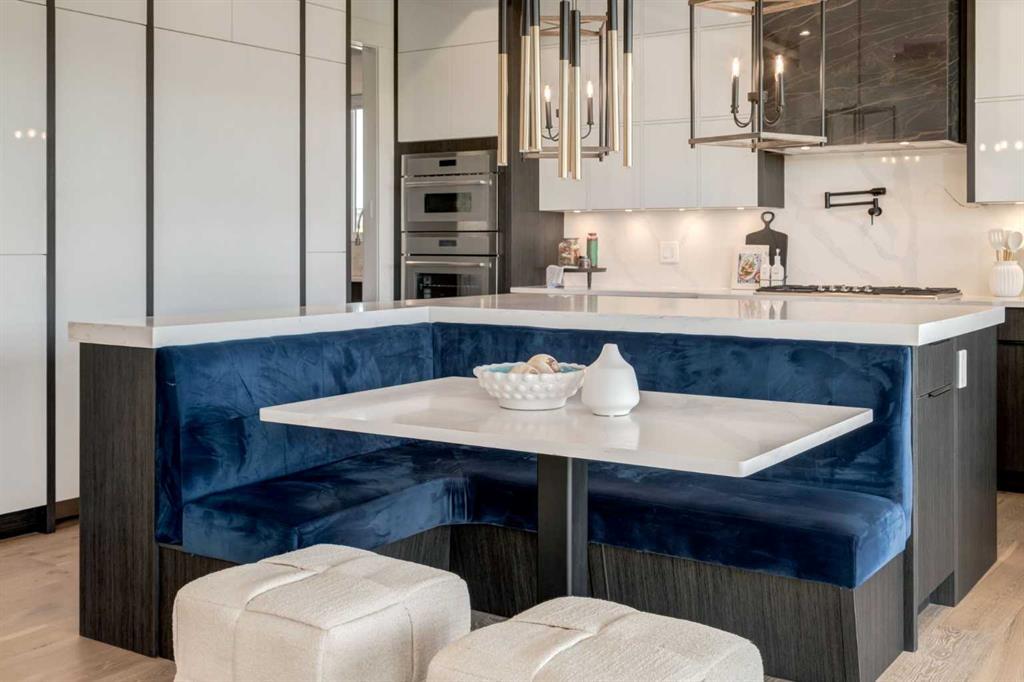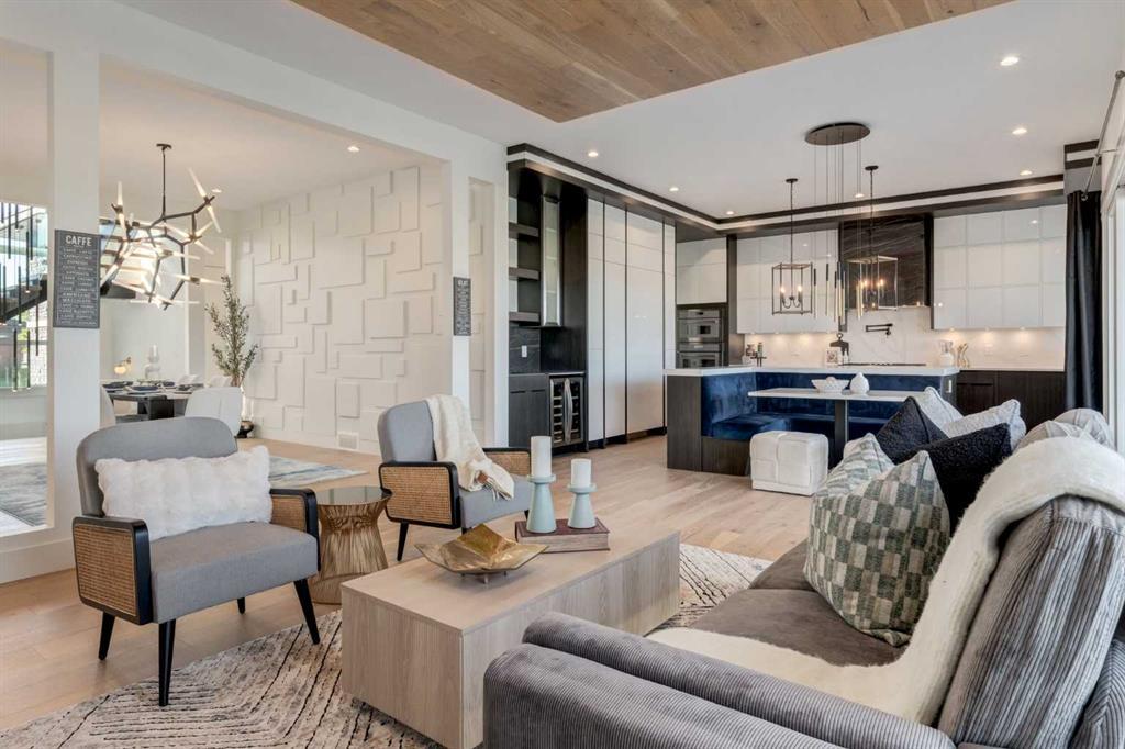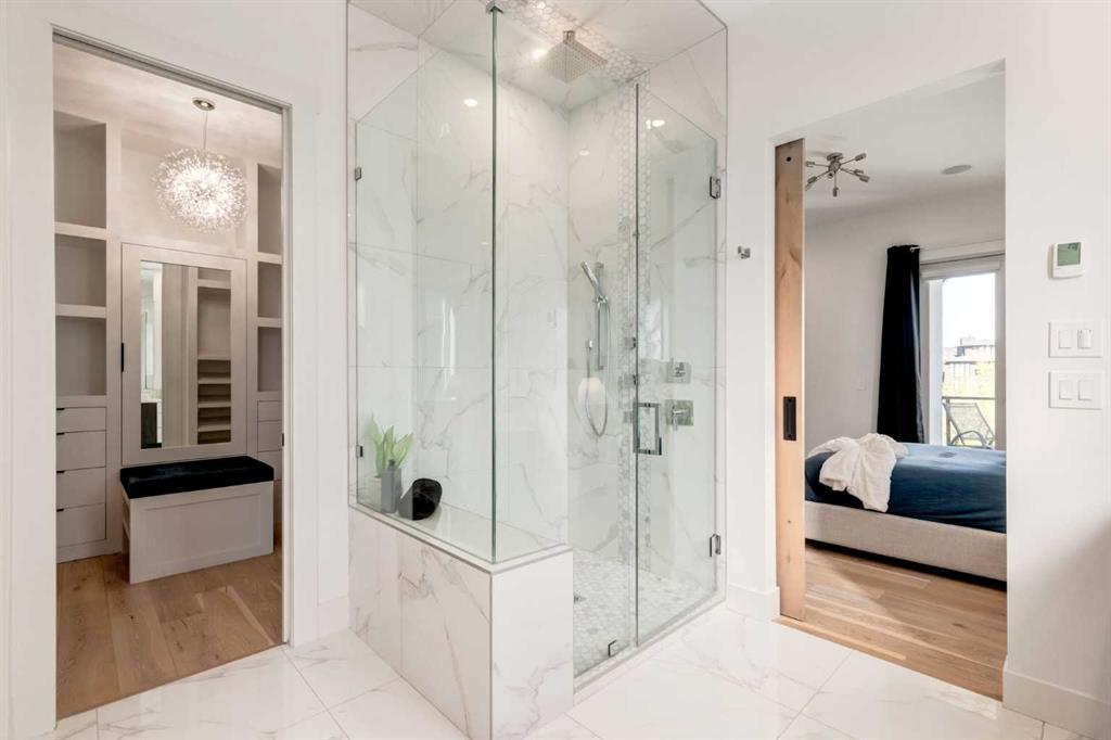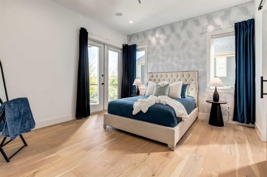 Welcome to this extraordinary WATERFRONT ESTATE in the prestigious community of WATERMARK AT BEARSPAW. Situated on a premium 0.29-acre lot backing onto a serene pond, this residence offers over 7,000 sq ft of luxurious living space with 7 bedrooms, 6.5 bathrooms, and two master suites, including one on the main floor. Designed with elegance and functionality in mind, the home features soaring 10-foot ceilings, 8-foot doors, an open-to-above foyer, and extra-wide hallways, all contributing to a grand and airy ambiance. A neutral color palette is paired with refined finishes such as engineered hardwood flooring, built-in speakers, heated flooring, and 12mm glass features throughout. The heart of the home is a stunning chef’s kitchen equipped with premium Thermador stainless steel appliances, a gas cooktop, quartz countertops, a spacious central island with a built-in banquette, and a separate spice kitchen or butler’s pantry. Adjacent to the kitchen is a formal dining room with a custom feature wall, a large family room with an upgraded linear gas fireplace, and a dedicated home office. The main-floor master suite includes a luxurious 5-piece ensuite, a generous walk-in closet, and private access to a serene outdoor patio. Upstairs, the primary suite offers a true retreat with a double-sided gas fireplace, an opulent 5-piece ensuite, an oversized shower, a walk-in closet with a custom island, and its own private patio with waterfront views. Three additional bedrooms, two with ensuite access & walk-in closets, while the upper floor also includes a bonus room with tray ceilings, a sleek glass-enclosed library, and a full laundry room with a sink. The walk-out basement is an entertainer’s dream, featuring a spacious recreation and games area, a wet bar, an elegant wine cellar, and a beautifully designed home theatre with a second wet bar. This level also includes a glass-walled gym, two large bedrooms, a full bathroom with a steam shower, and access to a future hot tub area. Outdoor living spaces include an upper deck with an outdoor theatre (wired for heaters & Motorized screens), and a lower concrete patio, all with spectacular water views. Additional highlights include a fully finished quad garage with extra storage and heater rough-ins, walk-in closets in all bedrooms with custom MDF shelving, dedicated laundry on each floor, double furnace, tankless water heater, water softener, and central vacuum system with multiple vac pans. Located on a quiet, central street in Watermark—an award-winning estate community—this impeccable home combines thoughtful design with premium features and finishes. One of the premier homes on one of the most desirable lots in the community makes this property a must-see if you're looking for luxury living at its finest!!! OPEN HOUSE SAT. OCT 18TH 2:00-5:00 & SUN OCT 19TH 1:00-4:00!!