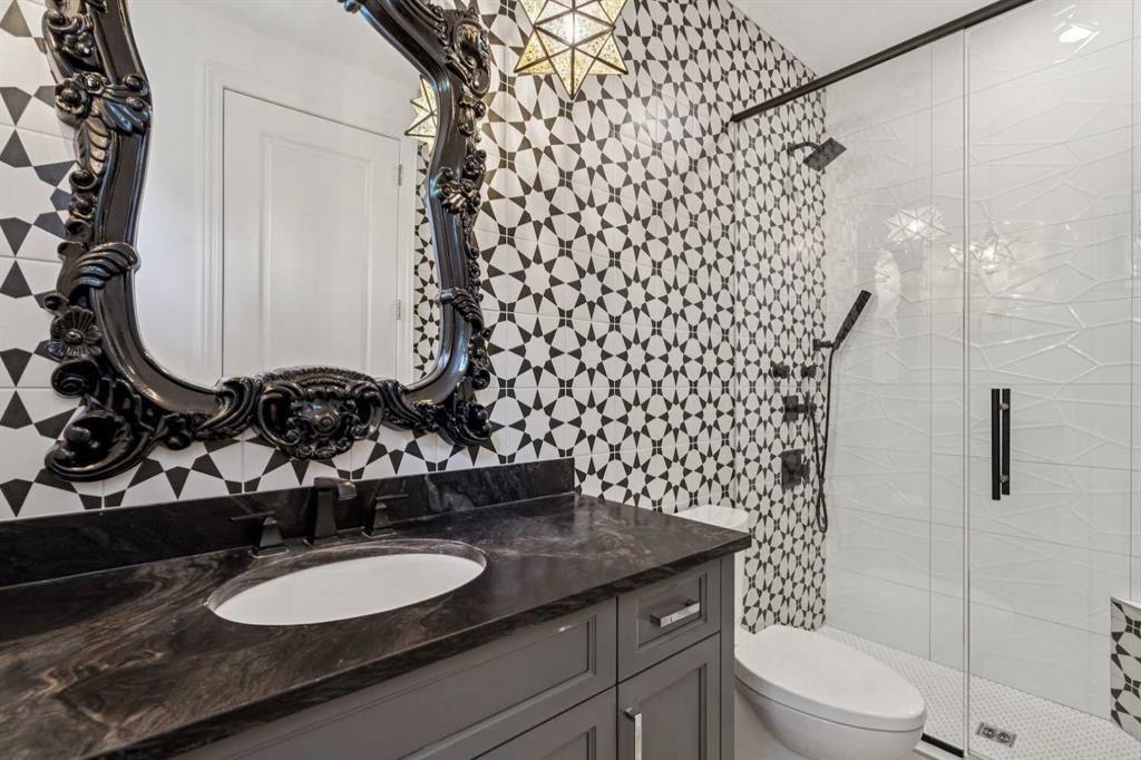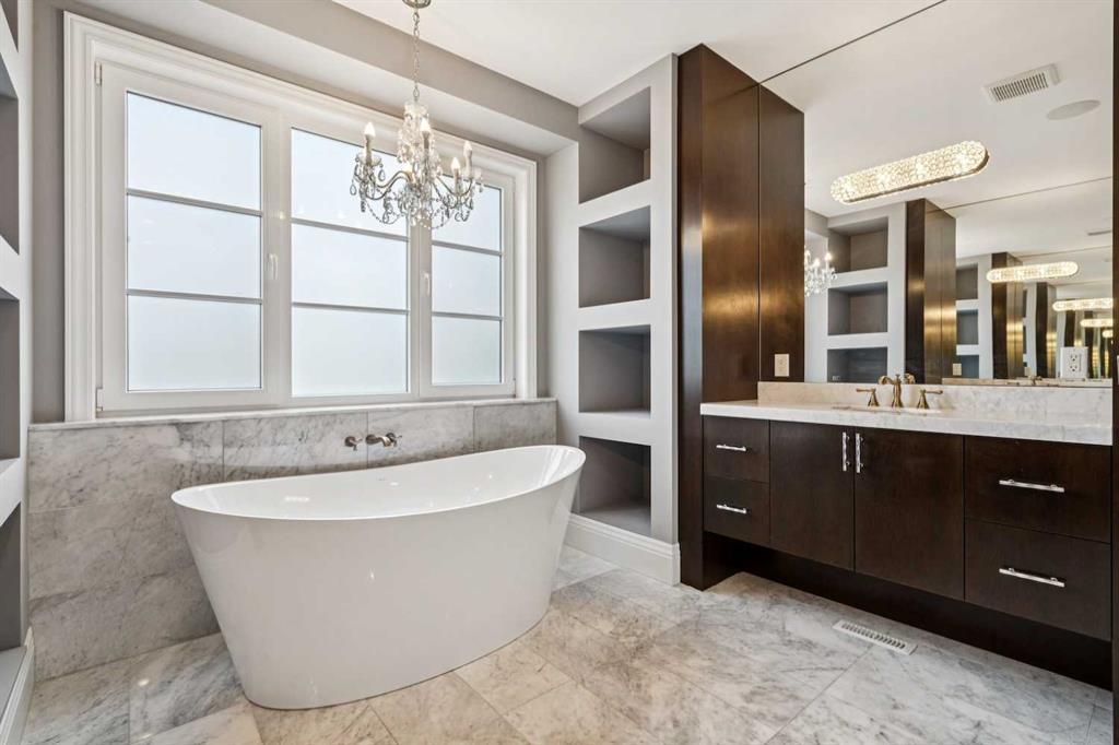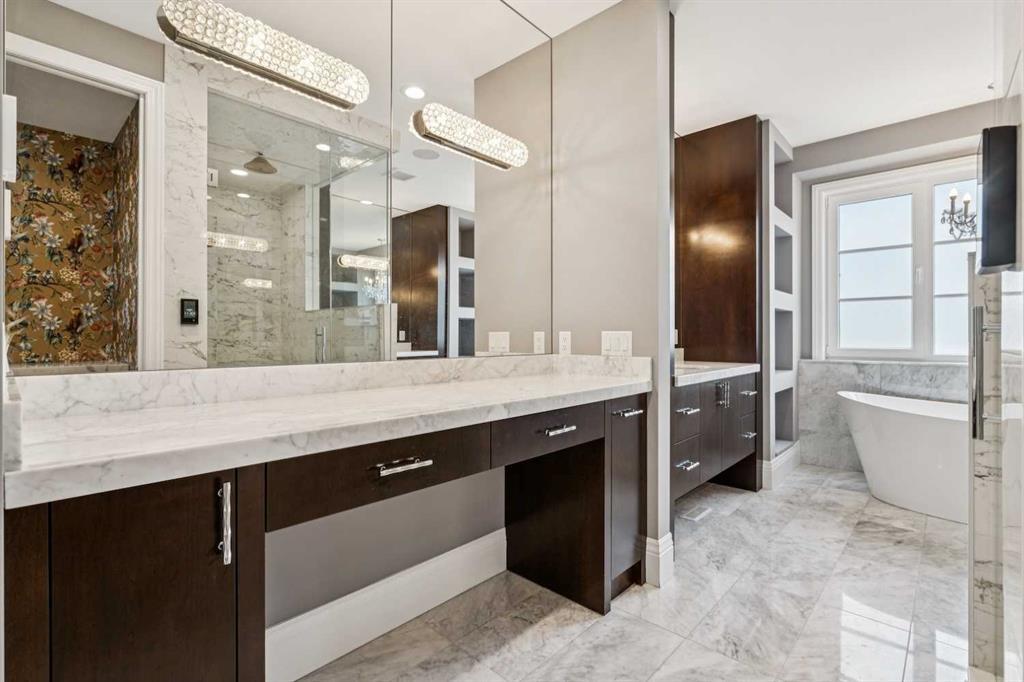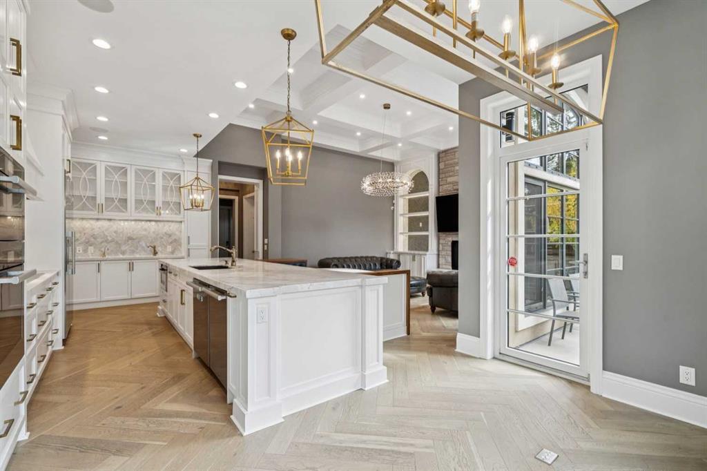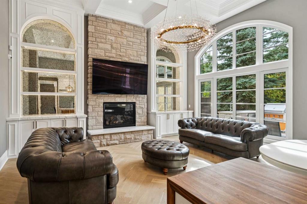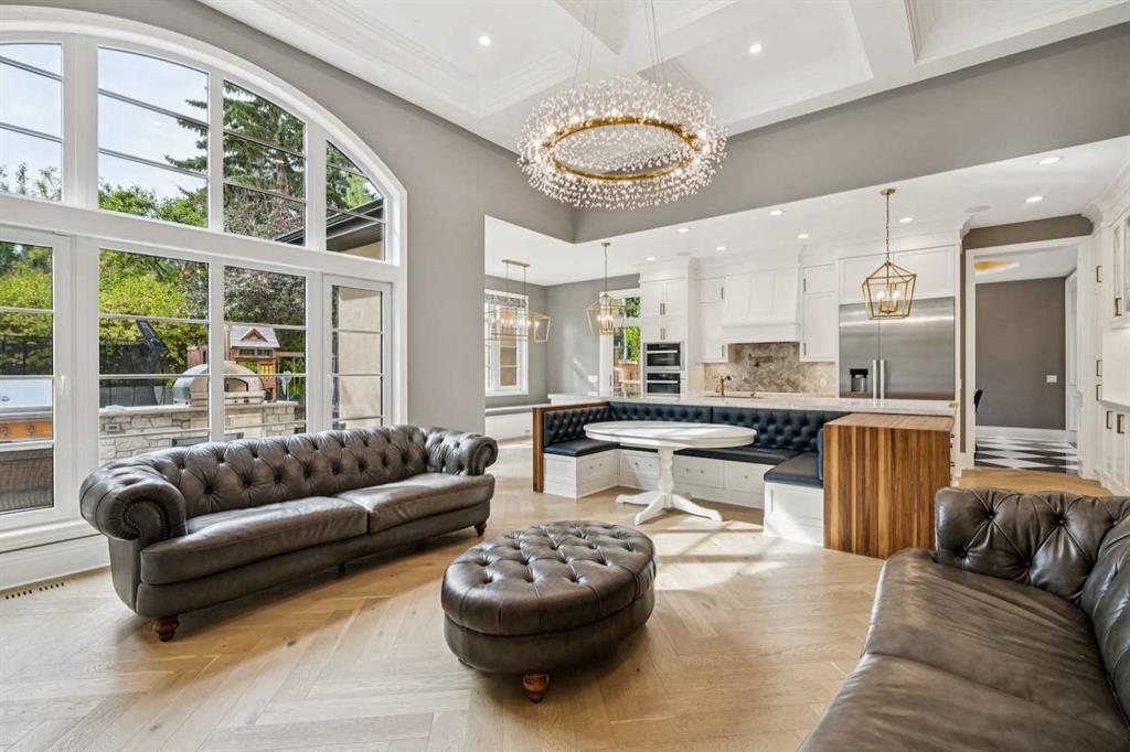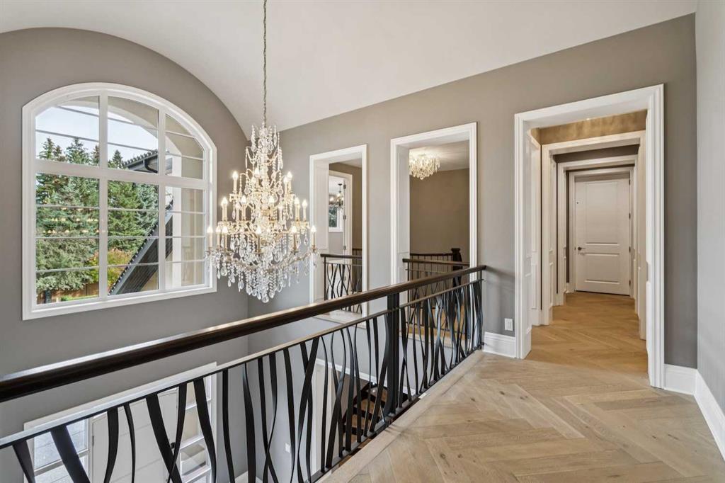 Nestled in the highly sought-after community of Bel -Aire, this John Haddon designed expansive estate offers unparalleled luxury, meticulous design, and effortless family or multi-generational living. The home & grounds underwent an extensive renovation and addition in the past few years both inside and out. A circular drive with a water feature sets the tone for a home where every detail has been thoughtfully crafted—from showpiece chandeliers, herringbone patterned hardwood, marble floors to spaces perfectly suited for family, & guests. This home features 6 bedrooms up plus 1 in the basement, each with its own ensuite. The layout is ideal for nanny or mother – in law living, with private spaces designed for comfort, privacy and independence. A dramatic front foyer with a spiral staircase makes a striking first impression, opening to a formal dining area and a main-floor office equipped with built-ins, TV, fireplace, and a wet bar with a wine fridge. The living room is flooded with natural light from the floor-to-ceiling windows and centers around a fireplace, offering a welcoming hub for daily living and entertaining. The chef’s kitchen is a true standout, featuring an abundance of cabinetry, a large island, built-in dining nook, built- in dining room hutch wall with prep sink,2 wall ovens, 2 dishwashers all seamlessly open to the family room where built-ins flank the fireplace and TV. Off the garage is a Mudroom with built in cabinets and a walk-in pantry with a sink, fridge and plenty of cabinets. Up the grand spiral staircase the primary bedroom is a true retreat with its own fireplace and TV, a vast walk-in closet with custom hanging systems, built-in dressers and a washer and dryer for convenience. The spa-like ensuite offers his-and-hers vanities, a makeup station, a jetted tub, a steam shower with smart controls all ensuring a luxurious daily routine. A few additional stairs lead to 2 upper bedrooms with a full bathroom, ideally suited for a nanny or mother-in-law suite, while the remaining four bedrooms on the upper level all feature their own ensuites and walk-in closets for ample private space. The fully finished lower level expands living areas further with a large family room, a theatre, a glass-enclosed wine room, a sixth bedroom and bathroom, Gym with a TV, extra closet and lots of storage. Out back in the yard is the ultimate of living spaces. The family is sure to enjoy evening movies gathered under cover around the Outdoor TV and fireplace. Never a shortage of activities for the family with an amazing sport court, trampoline, play structure and hot tub. While the kids are busy the adults will enjoy the outdoor kitchen featuring a wine fridge, sink, Built in BBQ and Pizza Oven. Bel-Aire is a centrally located community next to the Calgary Golf and Country Club, close to schools, shopping, restaurants, transportation and the Glenmore reservoir and pathways. This a truly rare opportunity in Calgary's luxury real estate market.