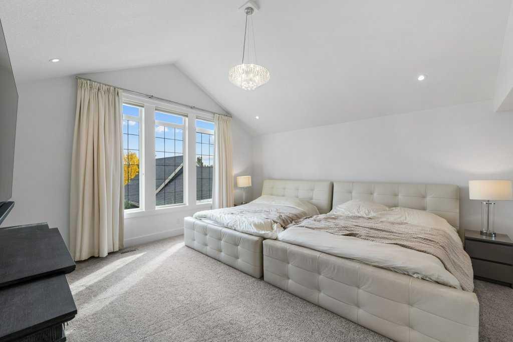 *Welcome to this extraordinary, fully renovated estate home in the prestigious community of Heritage Pointe, offering exclusive lake access and surrounded by natural forest beauty! Situated on a prime lot & backing onto a treed forest, the home has undergone a major renovation. It now features the addition of a spectacular 800 sq. ft. "entertainer's dream" 4 season sunroom (with new foundation and its own furnace/plumbing/air conditioning) - a true showpiece created for both relaxation and entertaining! Outfitted with premium appliances, the chef's kitchen serves large gatherings; a spacious dining room is adjacent, plus a living area for relaxation, where dual large-screen TV's seamlessly rise from the hardwood floors - at the touch of a button! The main home's central kitchen is renovated with new quartz counters/island, new appliances, marble backsplash, plus a newly reconfigured lighted pantry. With a living / dining room that has a new floor-to-ceiling feature "linear" fireplace, perfect ambience is createde. A stylish great room, also adjacent to the kitchen, provides built-in cabinetry with lighted accents. All new hardwood floors adorn the main level, new lighting, all solid interior doors, new carpets. A main floor office, half bath and mudroom complete the main level. The upper level currently features 4 bedrooms (could be bonus room with 3 bedrooms). The master suite showcases vaulted ceilings, a private sitting area overlooking the forest, spa-like 5 pc ensuite w/air jet tub, steam shower & large walk-in closet, heated floors! The professionally finished lower level features a 4th bedroom, bath, media area, games room w/expansive wine bar, fitness room w/cork flooring & 2nd laundry. Direct Connect networking throughout. Dual central air conditioners, gas generator and extensive solar system - serves entire home! The 4 car garages (two double garages) are separated by a breezeway. The rear yard showcases an 8 person "waterfall" mineral hot tub with an adjacent fire pit gathering area - grounds with underground sprinklers systems. Whether hosting a gathering or hosting a quiet evening, the indoor/outdoor ambience and forested views create a resort-like view year-round! Experience the best of lake living, privacy, and modern sophistication, in one of Alberta's most sought-after communities.