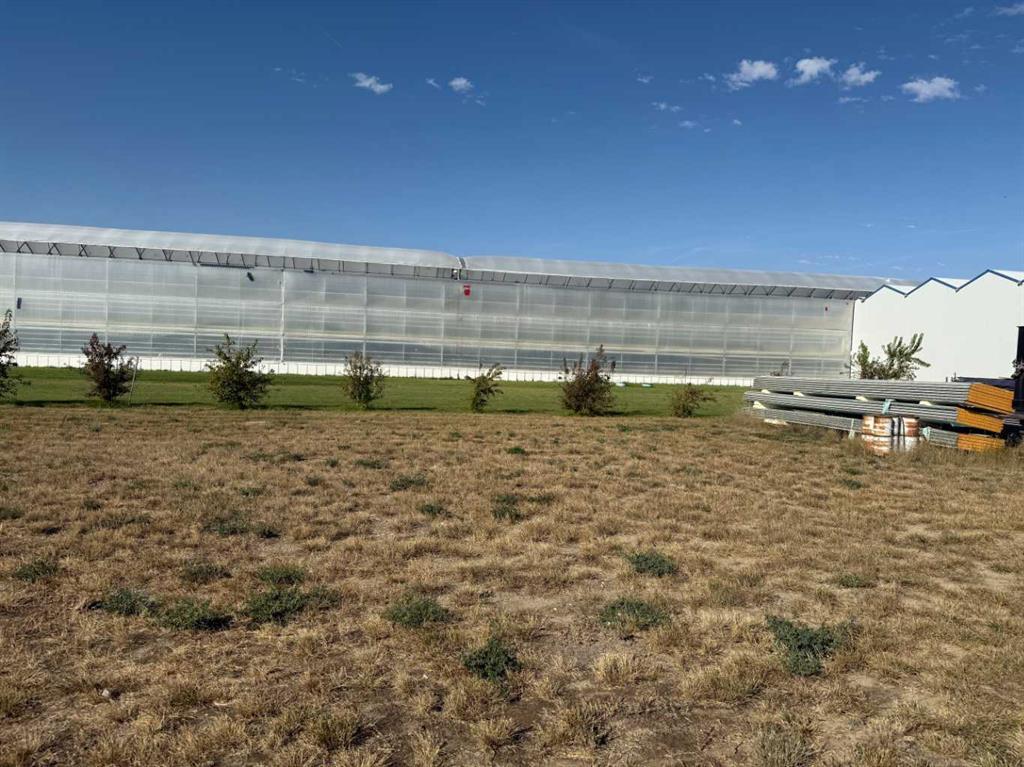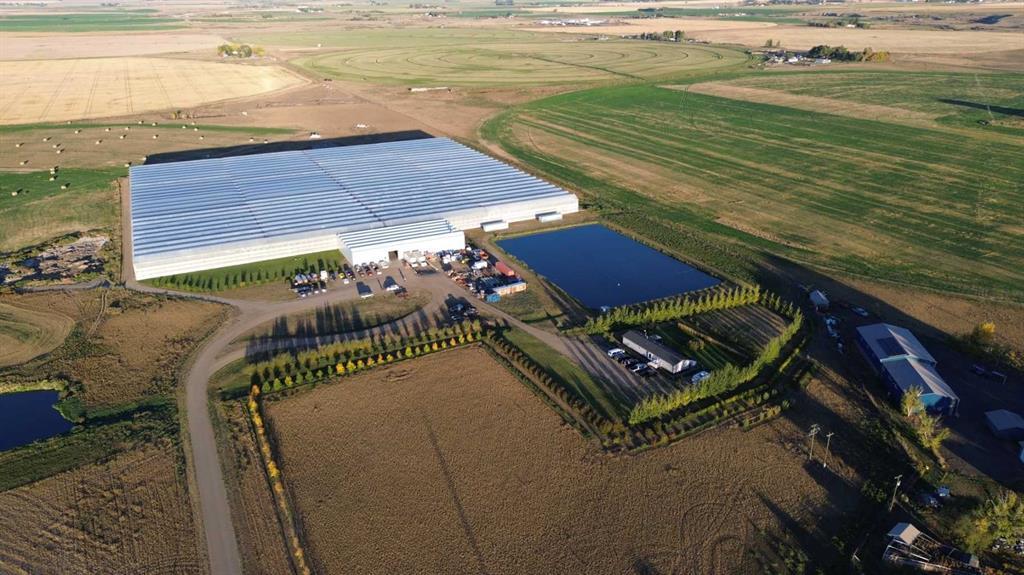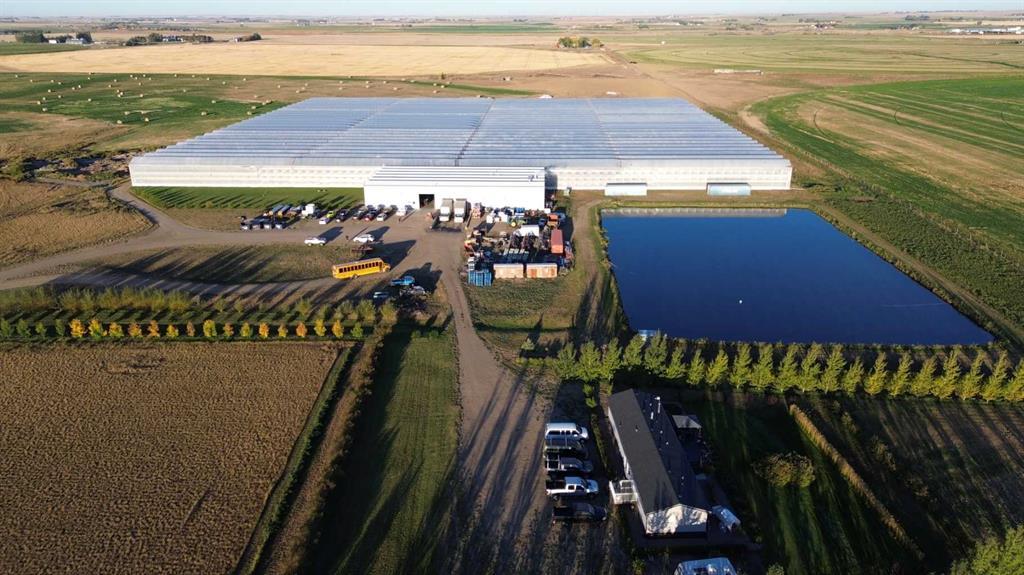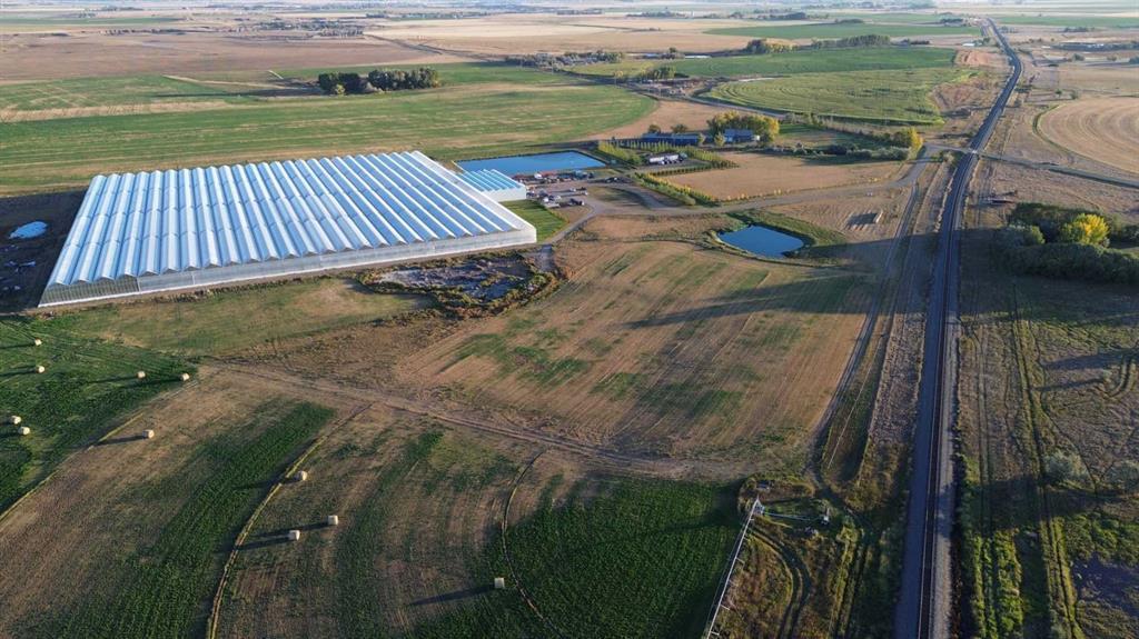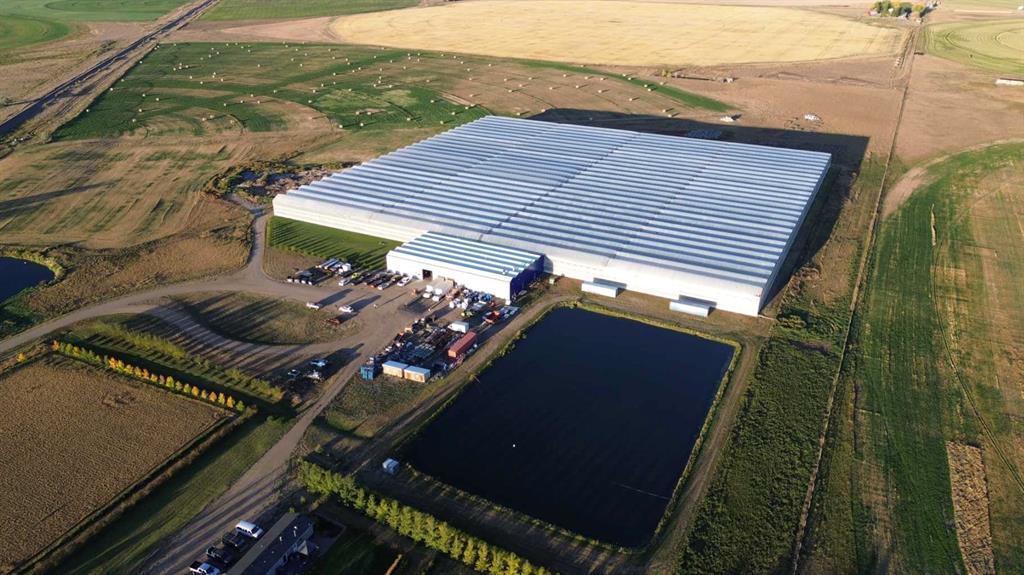 Modern 10-Acre Greenhouse Facility on 93 Irrigated Acres – Near Medicine Hat, Alberta. Outstanding opportunity to acquire a modern, large-scale greenhouse operation located just 15km from Medicine Hat. This 93-acre irrigated property is zoned Horticulture, offering significant room for expansion and future development. The centerpiece of the property is a state-of-the-art 10-acre (419,328 sq. ft.) Venlo-style poly greenhouse featuring 26 bays (24’ x 672’ x 21’ gutter height) designed for efficient, high-output production. The operation is supported by an 84’ x 170’ Venlo shop that houses the boiler and irrigation rooms (separated by glass walls) and includes a fully air-conditioned office, accessible washrooms, lunchroom, and mezzanine—all built to commercial code standards. A 17’ x 11’ walk-in cooler provides additional storage capacity. The water management system is designed for sustainability and efficiency. Rainwater is collected from the greenhouse roof and directed to a 5,000,000-gallon dugout, which is replenished via the SMRID system during summer months to ensure ample supply through the winter. Heating is provided by two 800 HP Crone boilers with Zantingh burners, distributing heat through an integrated pipe and rail system that doubles as transport for electric and hand carts. Key operational highlights include: -CO2 capture system improving plant growth and heat efficiency-Central inflation system for optimal insulation-Argus Titan climate and irrigation control software with 24-hour support-Backup diesel generator with automatic switchover-Fog cooling system for summer operation-Two 41,000-gallon water silos (fresh and recirculated) with advanced filtration -Electric, hand, and maintenance carts included. The property also features a modern Valley pivot with pumping unit irrigating approximately 40 acres of hayland, and a wheel line with PTO pump servicing an additional 10 acres. A 2007 mobile home (20’ x 76’, 1,520 sq. ft.) provides comfortable on-site accommodation with 3 bedrooms, 2 bathrooms, central air conditioning, and a 14’ x 24’ deck—ideal for staff housing or management use. Currently employing approximately 35 workers through the Foreign Worker Program, the operation packages its produce through Redhat Co-op in Redcliff, located just 22 km away. The property is easily accessible, with a paved road within 800 meters of the entrance. This well-maintained and fully equipped facility represents a rare opportunity to acquire a turnkey commercial horticultural enterprise with modern infrastructure, expansion potential, and excellent logistics in a prime Southern Alberta location.