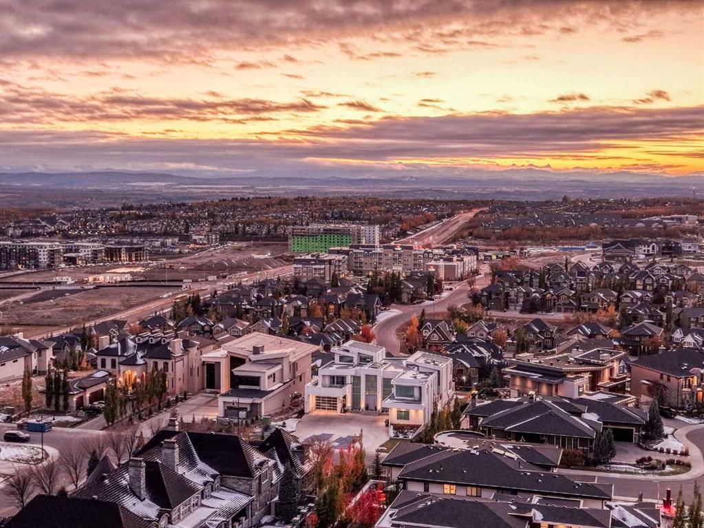 Perched gracefully above one of Calgary’s most coveted communities, this extraordinary modern estate commands an expansive .39 acre (just under 17,000 square feet) lot in the prestigious enclave of Aspen Woods. Perfectly positioned to capture sweeping, panoramic views of the majestic Rocky Mountains, this architectural triumph by Bellaview Luxury Homes, in collaboration with the acclaimed Dean Thomas Design Group, offers a rare opportunity to own a custom residence where elevated design meets timeless sophistication. This extraordinary estate is designed for those who demand the very best in design, craftsmanship, and location. The gated driveway and striking exterior architecture set the tone for a home that is both sculptural and timeless, featuring a harmonious blend of glass, natural stone, and rich wood accents. The interior has been thoughtfully planned for both entertaining and everyday comfort, beginning with a grand entry veranda and impressive foyer that flows into a private office and an expansive great room enveloped by glass and connected to multiple covered terraces. The chef-inspired kitchen is the heart of the home, anchored by a dramatic island with seating for seven, a dining space for elaborate gatherings, a full walk-in pantry, and a discreet spice kitchen for effortless prep. A custom wet bar transitions seamlessly to the covered outdoor lounge and dining area for year-round al fresco living. The upper-level primary retreat embraces the mountains at every turn, with both the bedroom and its private 29’ x 17’ covered terrace oriented to capture sweeping mountain vistas. A spa-inspired ensuite and expansive walk-in closet. Three additional bedrooms each enjoy their own en-suites, while flowing seamlessly to a spacious family room and second covered deck as well as upper floor laundry room complete this level. Four fireplaces, thoughtfully placed with two on the main level and two on the upper level, enhance both the warmth and allure of this remarkable residence. The walkout lower level is an entertainer’s dream with a theatre room that includes a golf simulator, games room, yoga studio, gym, and a 5th bedroom with two full bathrooms. Step outside to your fenced backyard oasis with a sleek in-ground heated pool and multiple lounging terraces designed for sunset views. A heated triple-car garage, exceptional attention to detail, and the signature modern elegance of Bellaview Homes create a once-in-a-lifetime opportunity in one of Calgary’s best communities. Nearby world-class schools include Rundle College, Webber Academy, and just steps from shopping (BlushLane/Starbucks/Safeway), dining, and endless amenities, this location also offers effortless access to Calgary’s vibrant downtown core and the mountain escapes of Canmore and Banff. Floor plans are available upon request to qualified buyers and their realtors. The builder is pleased to offer a personalized approach, working closely with buyers to bring their dream home to life.