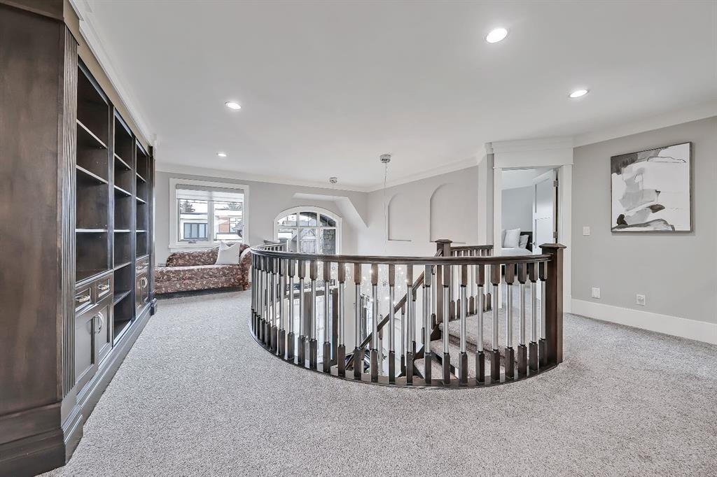 - Bookcases, Built-in Features, Central Vacuum, Chandelier, Closet Organizers, Crown Molding, Double Vanity, Granite Counters, High Ceilings, Kitchen Island, Natural Woodwork, No Animal Home, No Smoking Home, Open Floorplan, Pantry, Recessed Lighting, Separate Entrance, Soaking Tub, Walk-In Closet(s), Wet Bar