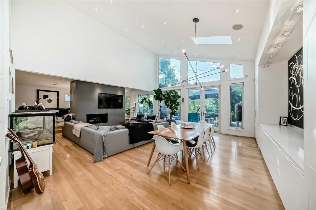 Welcome to Elbow Park! Nestled along the banks of the Elbow River and located on the prestigious Riverdale Avenue—one of Calgary’s most desirable streets—this stunning 3,795 sq ft home offers breathtaking river views, exceptional design, and the ideal spaces your family has been dreaming of. Designed with openness and elegance in mind, the home features soaring vaulted ceilings, floor-to-ceiling windows, and two cozy fireplaces that enhance the inviting atmosphere. The open-concept main level boasts a bright living room, a quiet home office, a formal dining room, and a spacious family room. The gourmet kitchen is a chef’s dream with granite countertops, a breakfast nook, and a casual eating area. Upstairs, the luxurious primary suite overlooks the river and includes a private retreat, two generous walk-in closets, and a spa-like 6-piece ensuite. Two additional bedrooms share a 4-piece bathroom, and a bright loft area offers views over the family room below. The fully developed lower level includes a media/family room, two more bedrooms, an exercise room, and a 3-piece bathroom. Step outside to enjoy the peaceful setting featuring river views, a large concrete patio, and a professionally landscaped yard perfect for relaxation and entertaining.