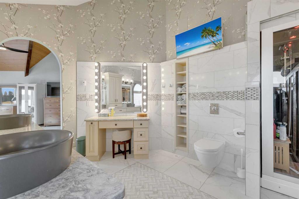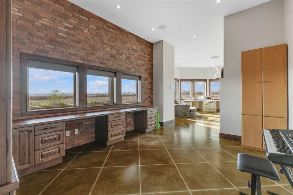 This estate presents the rare combination every buyer hopes to find: an architecturally stunning home, a fully equipped commercial grade shop, and nearly 100 acres of productive farmland, all crafted to exceptional standards. Construction began in 2014, with the home progressing through a meticulous multi year build and receiving full compliance and occupancy approval in 2017. Offering over 6,850 sq ft of refined living space (3,687 sq ft above grade + 3,163 sq ft below), this custom Linwood Homes estate provides privacy, accessibility, and rural serenity just minutes from Red Deer, Lacombe, Sylvan Lake, and the QE2. Inside, rich cherrywood cabinetry, beams, intricate tilework, and 27 foot vaulted ceilings define the warm, luxurious atmosphere. The gourmet kitchen offers quartz counters, built in Miele appliances, LED lighting, and a large walk in pantry. Triple pane windows frame expansive views, while the living room’s stone surrounded woodstove and the family room’s gas fireplace create inviting gathering spaces. The primary suite features a spa inspired ensuite with steam shower, infrared sauna, dual sinks, and a large walk in closet. Additional bedrooms, a den, and a walkout basement with theater room and gym enhanced by fully insulated interior walls offer exceptional versatility. The lower level showcases polished concrete floors and a custom bar with cooled wine storage and beer tap, flowing to a lounge with gas fireplace and a covered patio. Two offices, a luxury laundry room, and a second garage entry laundry add convenience. The newly resurfaced main deck (2025; $23,500) and infinity swim spa maximize outdoor enjoyment. Comfort is ensured with three A/C units, two boilers, forced air, in floor heat, RO water system, spray foam insulation, and full weeping tile. Exterior features include cedar soffits and beams, board and batten siding, and Lindab steel eavestroughs. A 19 kW solar array (47 panels) significantly offsets utility costs. The heated 45'×29' attached garage provides ample space. The 250'×60' industrial grade shop offers 18 ft ceilings, reinforced concrete, a 72 ft heated section with in floor heat, 2 post lift, five 16'×24' doors, an 18'×40' hangar door, full kitchen/staff room, sump, LED lighting, filtration, R60 insulation, and buried air and water lines. Set on 98.28± acres with 86± acres of #2 cropland, the property also includes a 1.42 acre surface lease ($3,900/yr), six 5,000 bushel grain bins, four hydrants, separate septic systems for the house and shop, and a second serviced homesite, an exceptional blend of beauty, function, and long term legacy.
