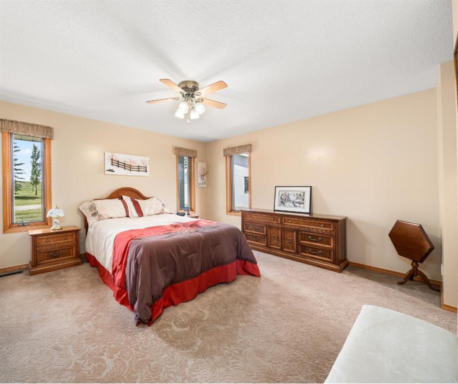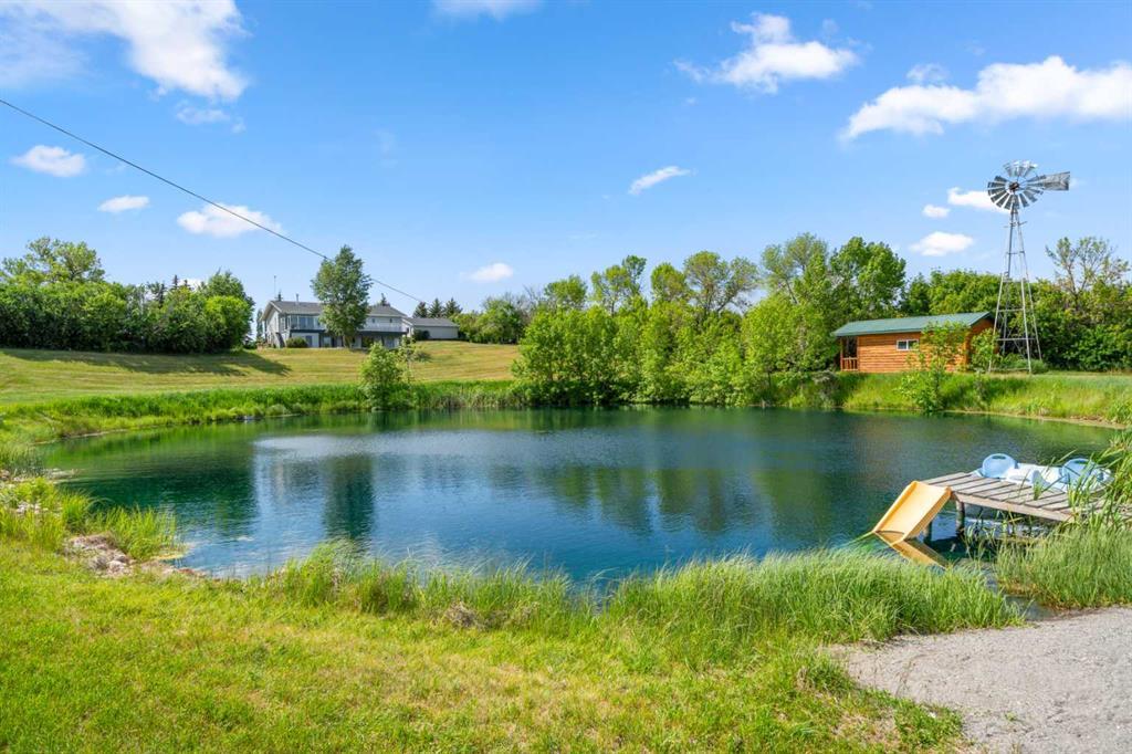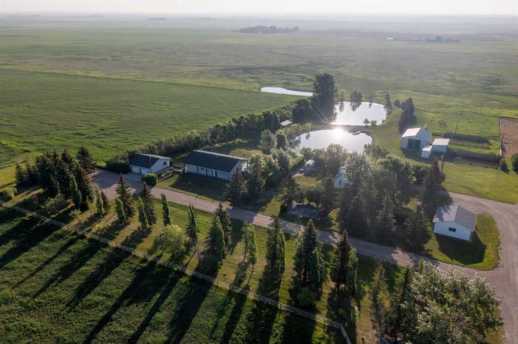 Welcome to this prairie homestead, set beneath the wide-open Alberta sky. This property offers more than a desirable location and impressive views—it reflects thoughtful development, practical design, and quality construction throughout. A gated entrance and solid, tree-lined driveway lead to a private homestead consisting of a 10-acre building site, 5 acres of pasture, and approximately 140 acres of hay land. At the building site, you’ll find two move-in-ready homes, each with its own yard —an excellent layout for multi-generational living, rental or long-term guests. The main residence is a well-maintained 1,549 sq ft bungalow featuring three bedrooms, a fully developed walkout basement, and a detached oversized double garage. The second home is a renovated 1930s two-storey house offering 1,160 sq ft, a covered veranda, two upper-level bedrooms, 1.5 bathrooms, and its own double garage. Additional improvements on the property include a high-end shop with a graveled equipment yard, an additional equipment shed or barn, ample garden space, a greenhouse, and a corral with animal shelter and waterer, with pasture located conveniently nearby. The property also offers several recreational features: a golf driving range, a horseshoe pit, and a small cabin set beside two spring-fed ponds. One pond is stocked with trout, while the second is designed for recreation, featuring a small beach area, dock, and zip line. An RV plug-in is available for additional guests. With reliable water sources, the site is well-equipped for both residential and agricultural uses. The 140 acres of hay land, currently managed by the owner, provide flexibility for the next buyer—whether you wish to farm the land or lease it to local producers. This property is well-suited for horse owners, small business operators needing space for equipment, or anyone seeking a peaceful country lifestyle with room to grow. Situated in Rocky View County, Alberta, it offers convenient access to the amenities of both the cities of Airdrie and Calgary, only a short drive away. A detailed Feature Sheet and additional photos are available upon request. If this property aligns with your search, we invite you to schedule a viewing.