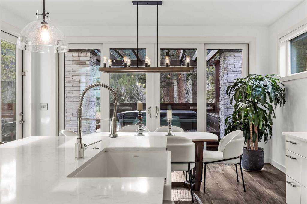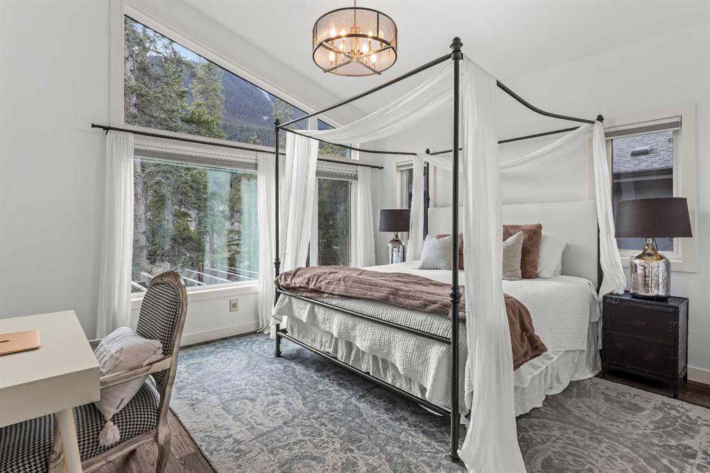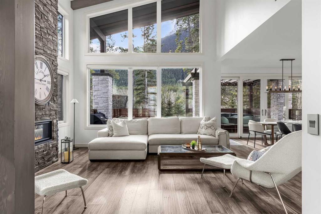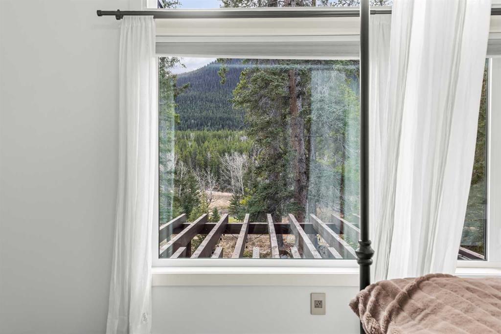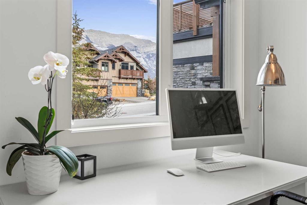 Mountain-Modern Living on the 10th Hole of Stewart Creek Golf Course! Welcome to a rare offering in one of Three Sisters’ most peaceful and private enclaves .A stunning mountain-modern single family home backing directly onto the 10th hole at Stewart Creek Golf Course. Thoughtfully designed with function, style, and environmental consciousness, this 4-bed, 4-bath residence offers over 3,500 sq ft of refined living with beautiful natural light, warm timber accents, and a true connection to the surrounding landscape. Natural timber beams, soaring ceilings, and expansive windows create an inviting alpine aesthetic while framing select views of the golf course and mountains. Enjoy an unobstructed and private backdrop, creating a sense of calm and separation rarely found. A commitment to sustainability and safety elevates this home beyond the ordinary. Featuring solar panels for energy efficiency and Fire-Smart roof sprinklers, the property is designed for both modern living and long-term peace of mind. Inside, the open-concept main level seamlessly blends the chef-inspired kitchen, dining space, and living room, creating a bright and functional hub ideal for gatherings and everyday life. Your private backyard retreat completes the experience. A sunken hot tub, built-in fire pit, underground irrigation system, and thoughtfully landscaped yard offer a peaceful place to unwind after a day on the trails or the golf course. This is true mountain serenity — quiet, sheltered, and designed for year-round enjoyment.