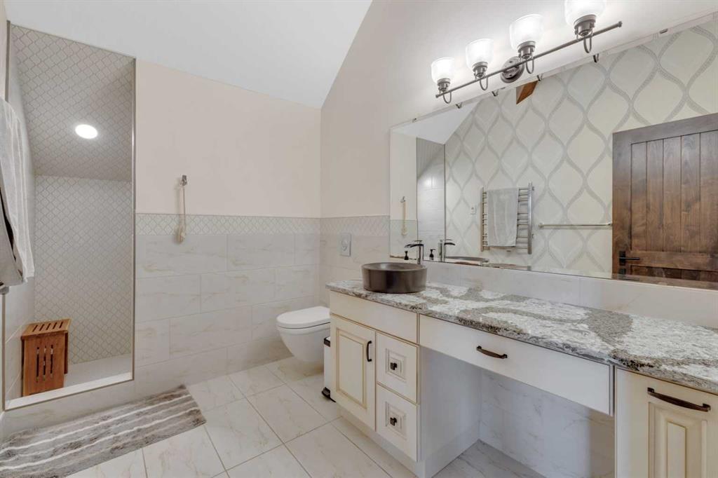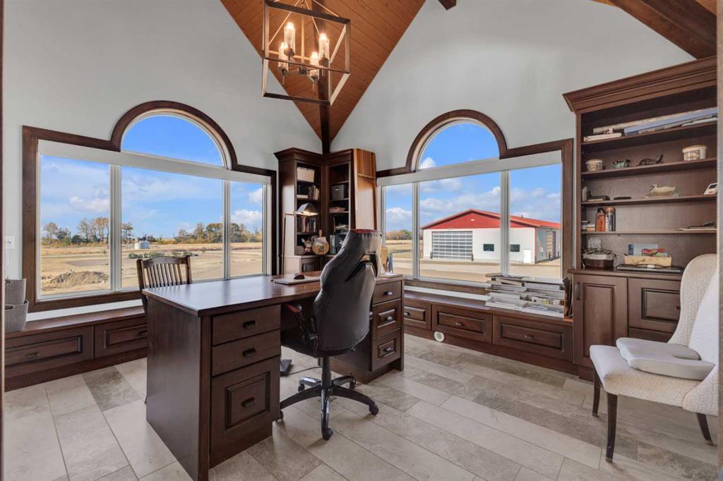 This estate presents the rare combination every buyer hopes to find: an architecturally stunning home, a fully equipped commercial grade shop, and nearly 100 acres of productive farmland, all crafted to exceptional standards. Construction began in 2014, with the home progressing through a meticulous multi year build and receiving full compliance and occupancy approval in 2017. Offering over 6,850 sq ft of refined living space (3,687 sq ft above grade + 3,163 sq ft below), this custom Linwood Homes estate provides privacy, accessibility, and rural serenity just minutes from Red Deer, Lacombe, Sylvan Lake, and the QE2. Inside, rich cherrywood cabinetry, beams, intricate tilework, and 27 foot vaulted ceilings define the warm, luxurious atmosphere. The gourmet kitchen offers quartz counters, built in Miele appliances, LED lighting, and a large walk in pantry. Triple pane windows frame expansive views, while the living room’s stone surrounded woodstove and the family room’s gas fireplace create inviting gathering spaces. The primary suite features a spa inspired ensuite with steam shower, infrared sauna, dual sinks, and a large walk in closet. Additional bedrooms, a den, and a walkout basement with theater room and gym enhanced by fully insulated interior walls offer exceptional versatility. The lower level showcases polished concrete floors and a custom bar with cooled wine storage and beer tap, flowing to a lounge with gas fireplace and a covered patio. Two offices, a luxury laundry room, and a second garage entry laundry add convenience. The newly resurfaced main deck (2025; $23,500) and infinity swim spa maximize outdoor enjoyment. Comfort is ensured with three A/C units, two boilers, forced air, in floor heat, RO water system, spray foam insulation, and full weeping tile. Exterior features include cedar soffits and beams, board and batten siding, and Lindab steel eavestroughs. A 19 kW solar array (47 panels) significantly offsets utility costs. The heated 45'×29' attached garage provides ample space. The 250'×60' industrial grade shop offers 18 ft ceilings, reinforced concrete, a 72 ft heated section with in floor heat, 2 post lift, five 16'×24' doors, an 18'×40' hangar door, full kitchen/staff room, sump, LED lighting, filtration, R60 insulation, and buried air and water lines. Set on 98.28± acres with 86± acres of #2 cropland, the property also includes a 1.42 acre surface lease ($3,900/yr), six 5,000 bushel grain bins, four hydrants, separate septic systems for the house and shop, and a second serviced homesite, an exceptional blend of beauty, function, and long term legacy.