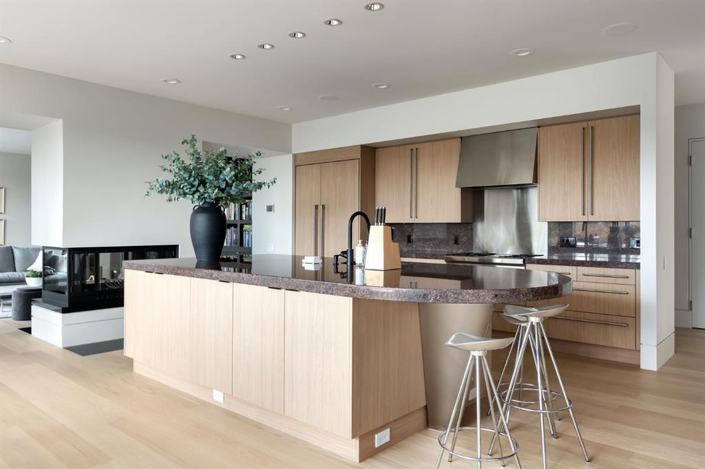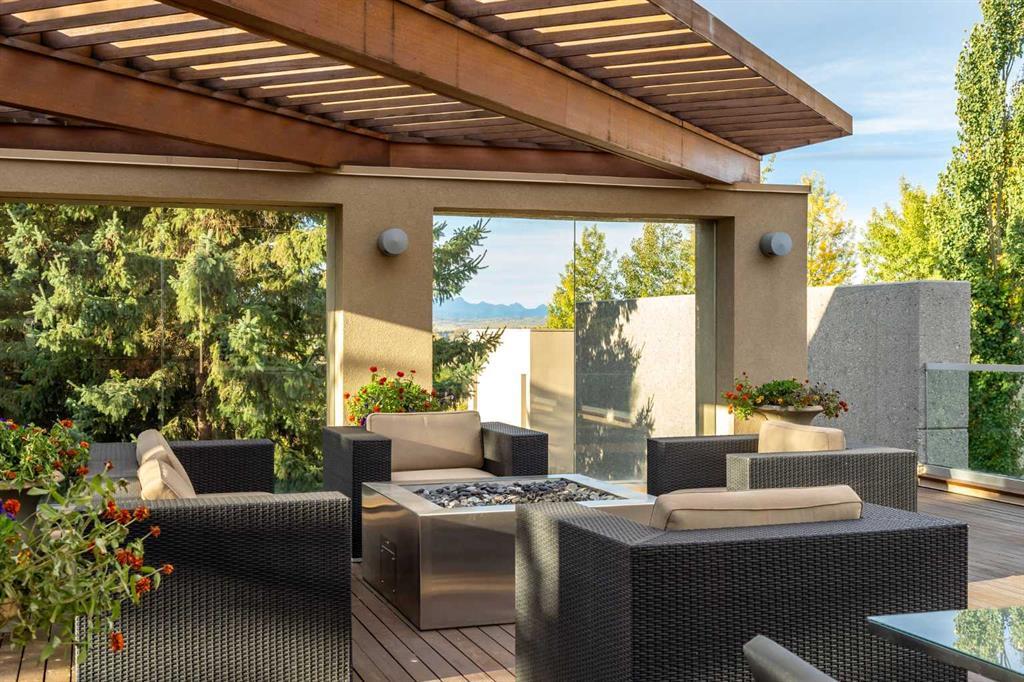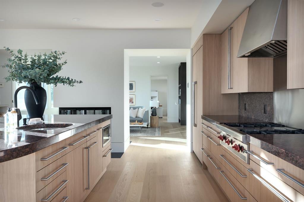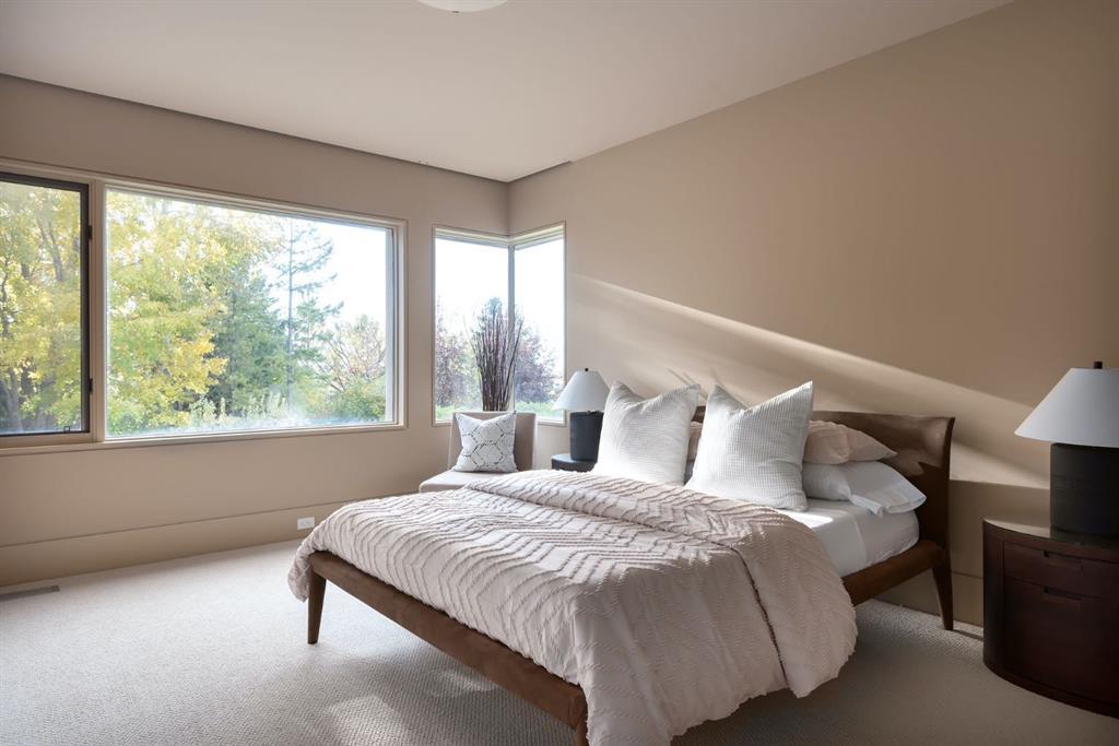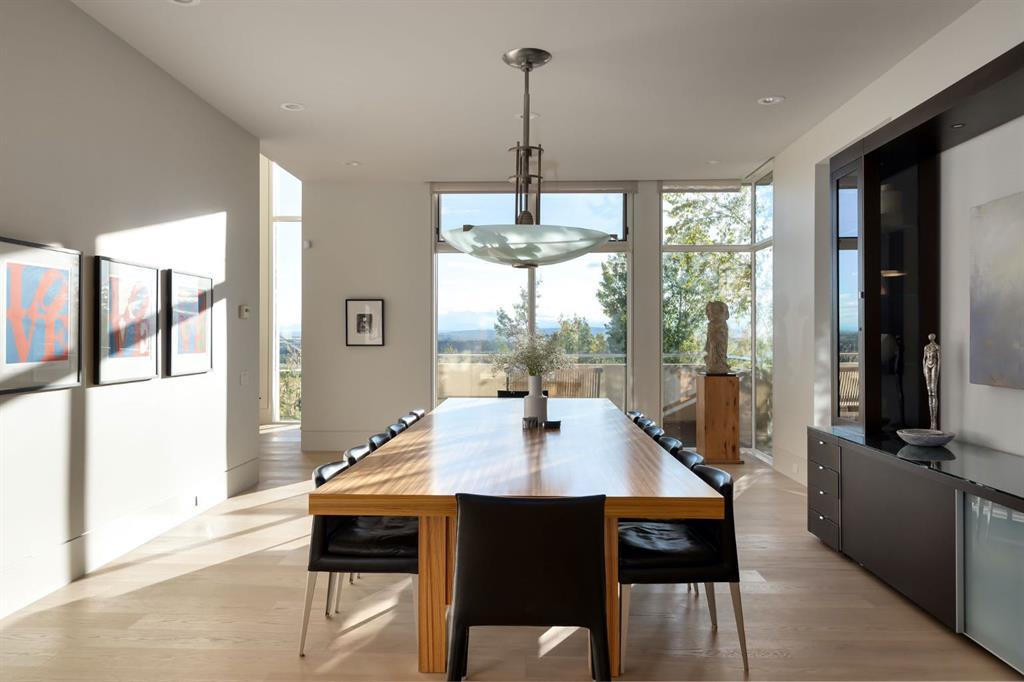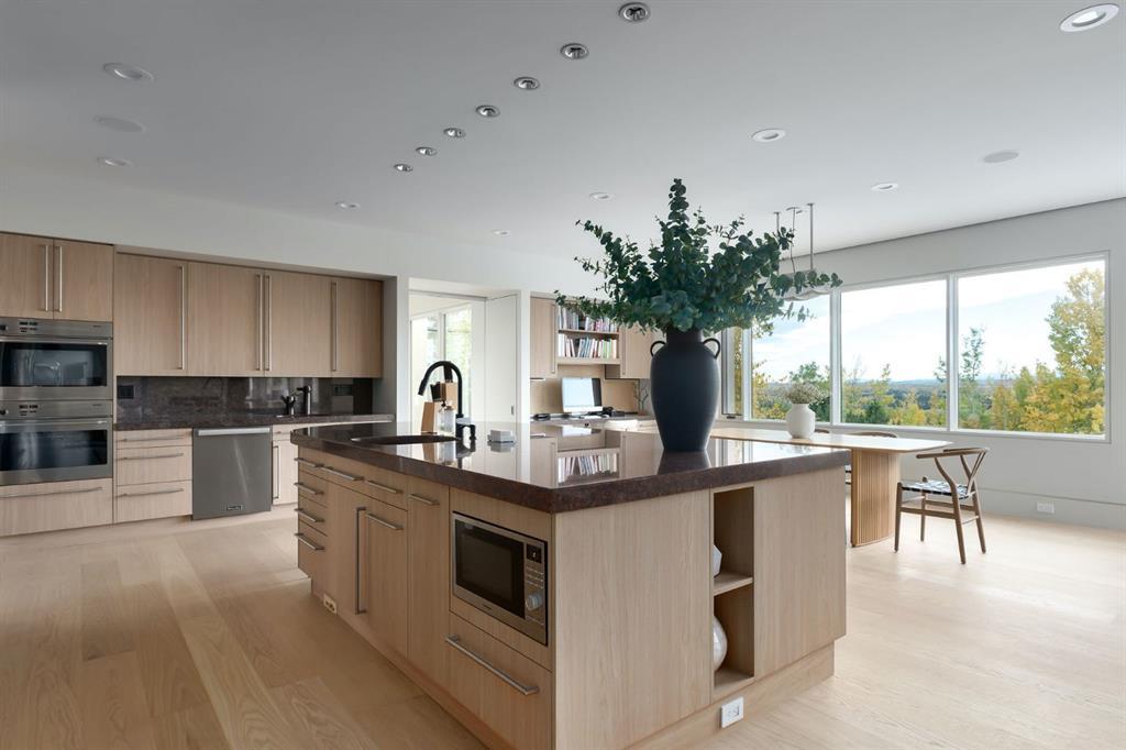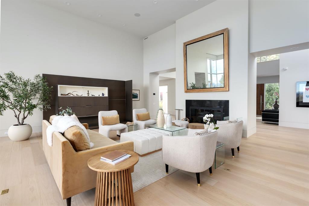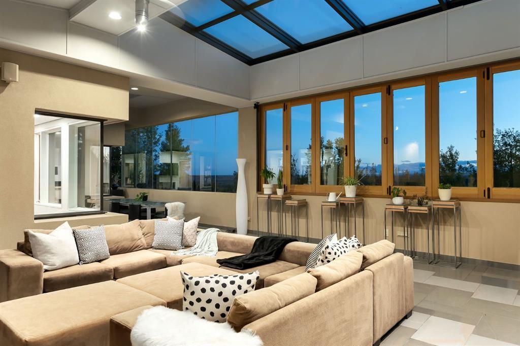 Seize a rare opportunity to own an iconic landmark in the prestigious southwest Springbank area, one of Calgary’s most coveted locations. Set on an expansive 18.62-acre escarpment, this exceptional property offers stunning mountain views and unparalleled privacy. Designed with new-age minimalism, this 20,000+ sq ft estate is a serene retreat for the discerning buyer. Located just minutes from Stoney Trail West, on the edge of Calgary, this secluded paradise offers the ultimate in luxury living. With 6 bedrooms + 10 bathrooms + 2 large offices, the home features stunning architectural design, including soaring flat & vaulted ceilings, a grand two-story great room illuminated by expansive windows. The contemporary living spaces are complemented by a soothing wood fireplace & ZEN garden inspired hallway views. The spacious dining room, perfect for memorable gatherings, overlooks beautifully landscaped grounds and majestic mountain vistas. Ample vehicle storage includes an oversized 3 car garage, a 2 car garage, and an additional oversized auxiliary 3 car garage (all heated). The gourmet kitchen is a chef’s dream, featuring a Wolf gas range with dual ovens, a built-in refrigerator, a walk-in pantry, an oversized granite island and custom white oak cabinetry. The adjacent family room includes a cozy fireplace, while the sunroom with another fireplace is perfect for family game or movie nights. The bedroom wing, secured by fire doors, houses the luxurious primary suite, a tranquil haven with views of mature trees and a lounge area with a fireplace. The ensuite boasts a deep soaker tub, granite dual-sink vanity, dual toilets, a bidet, and 2 oversized showers, along with a spacious walk-in closet. Four additional bedrooms, each with its own ensuite, are located in the bedroom wing, along with a laundry room and extra storage. Heated floors throughout both the main and lower levels provide year-round comfort. The lower level offers an additional bedroom with a full bathroom, a dedicated hot tub room, a spacious exercise room, an office and a large recreation room. A nearby bar and media room add to the entertainment space, while a walk-up entrance leads to the beautifully landscaped backyard, where a large in-ground pool awaits. Outdoor spaces include southwest-facing decks and a patio, a vast yard, and a middle courtyard with a sports court. An auxiliary building offers potential as a future guest house. The property has undergone millions of dollars in recent landscaping, with paved and natural pathways, waterfall features, and hidden sitting areas. Two security gates, fencing, and surveillance cameras ensure your privacy and security. This magnificent estate offers a private oasis with rolling hills, lush gardens, and elaborate landscaping that rivals anything in Aspen Hills—yet is only five minutes away from top-tier private schools. Experience the pinnacle of luxury living in Canada. Schedule your private tour today and discover all that your next home has to offer.